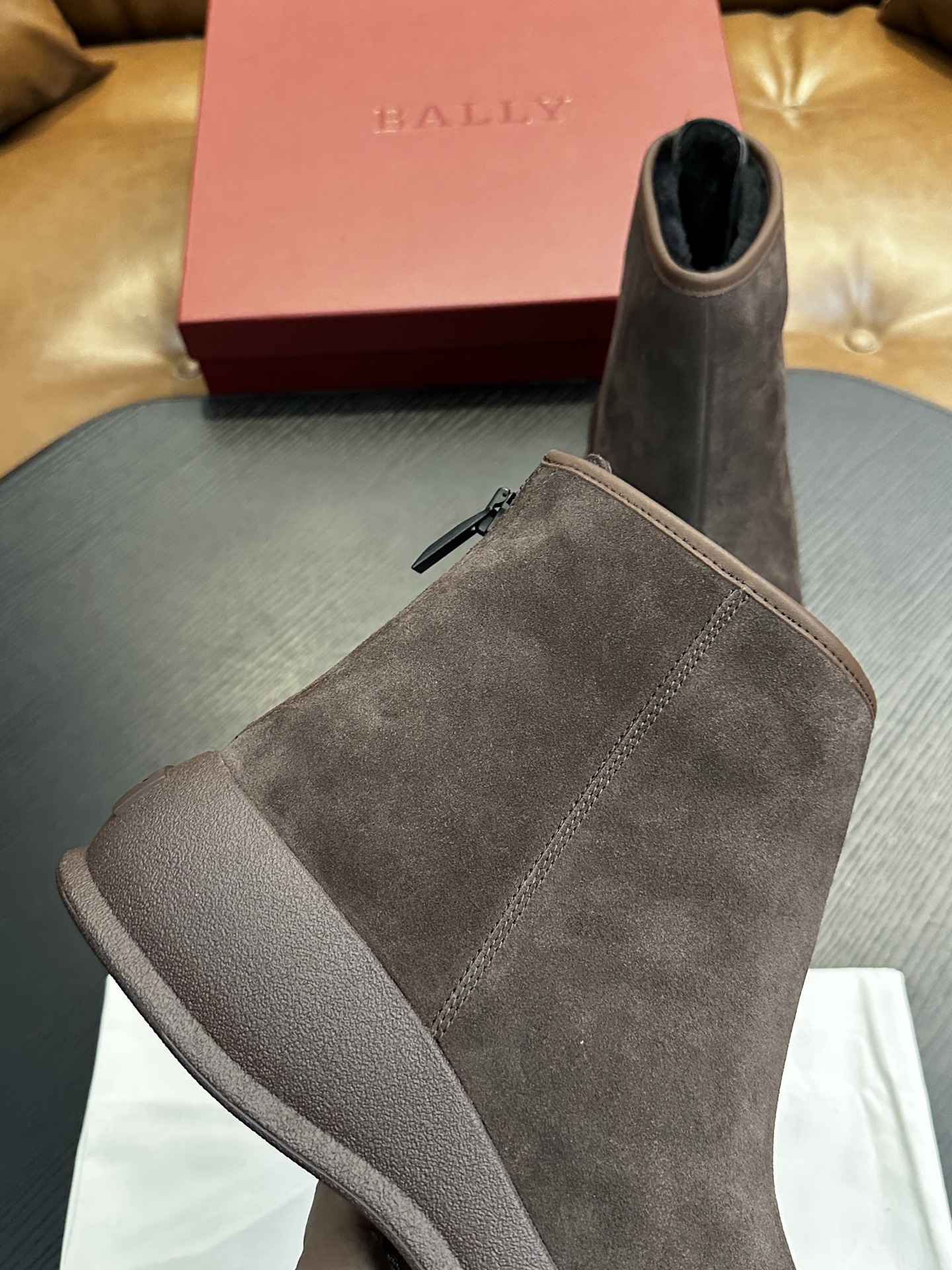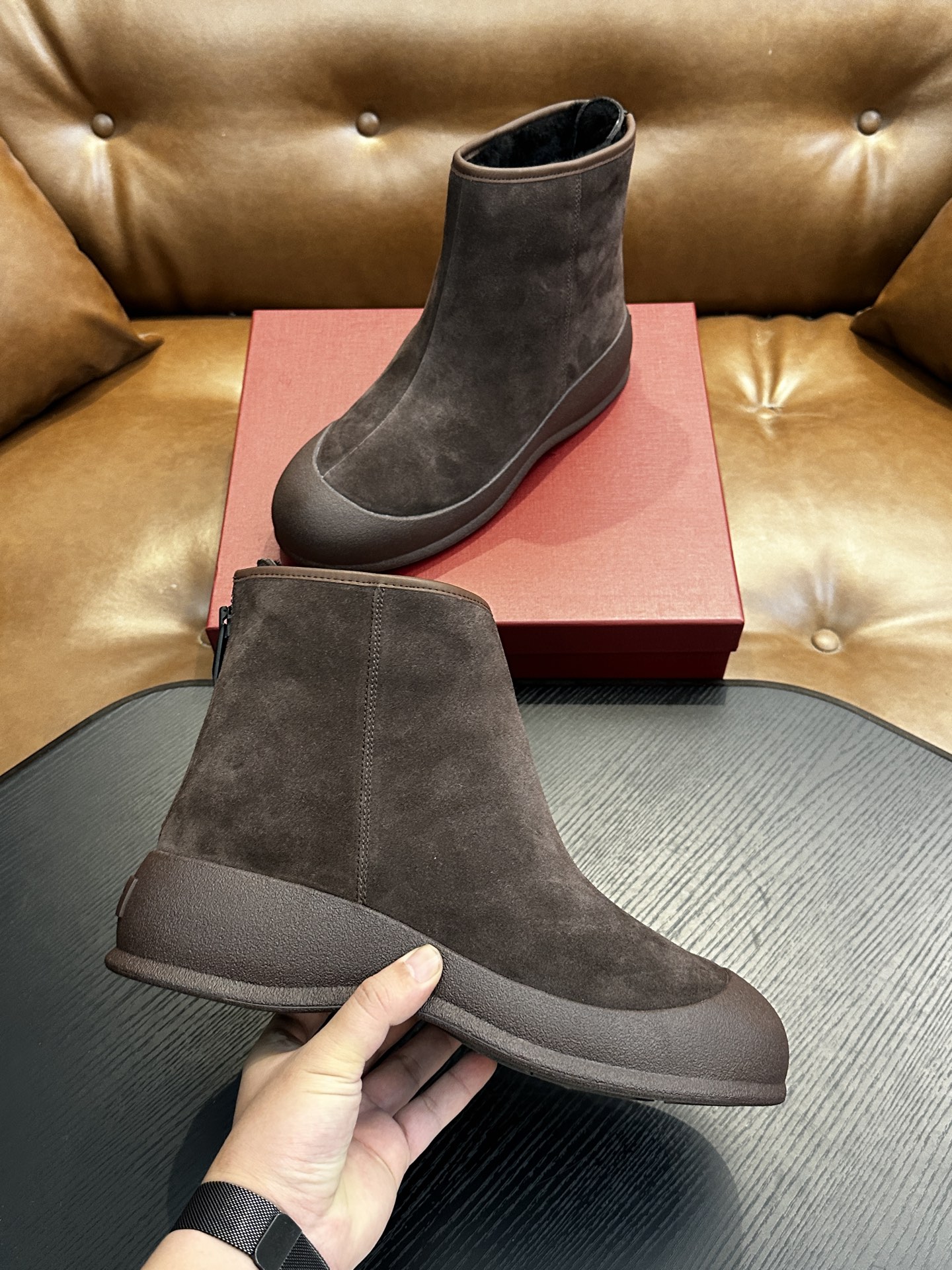 갑피: 고급스러운 스웨이드(융면) 소가죽