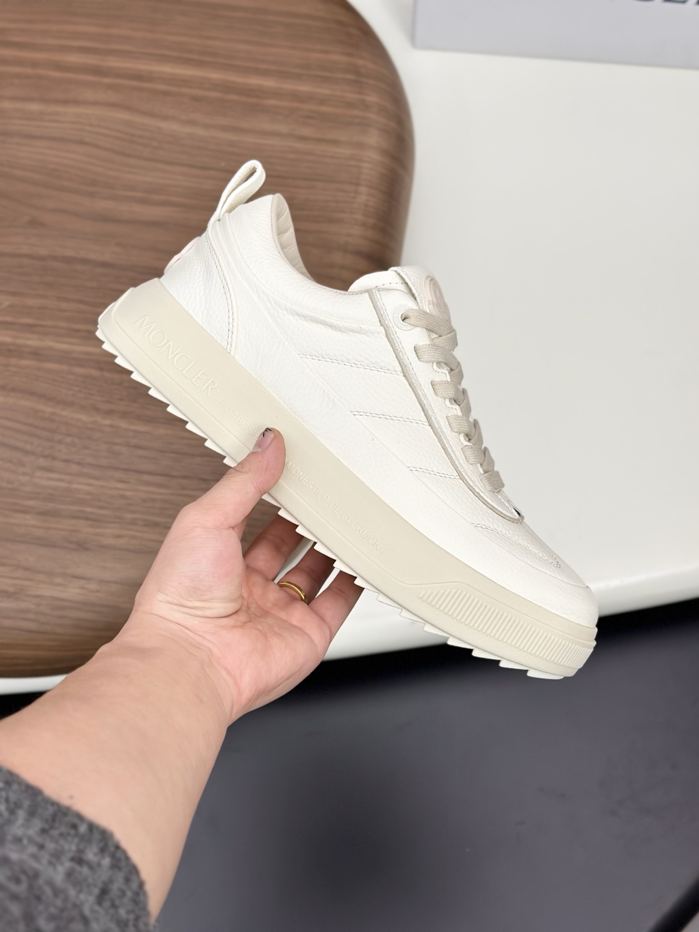 디자인: 견고한 슈레이스 시스템과 뒤축의 몽클레르 로고 포인트