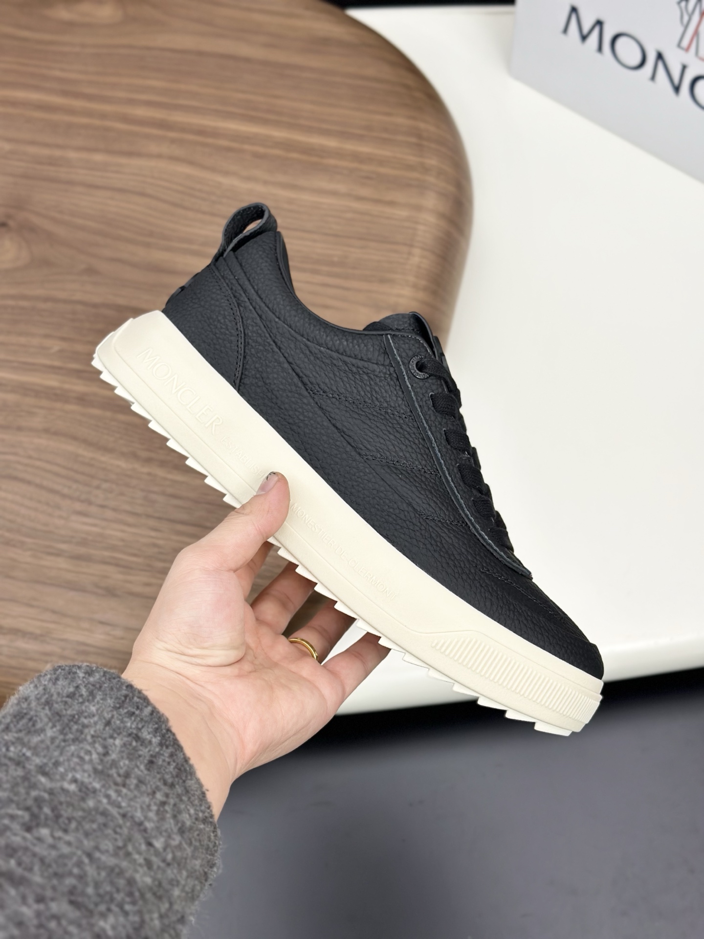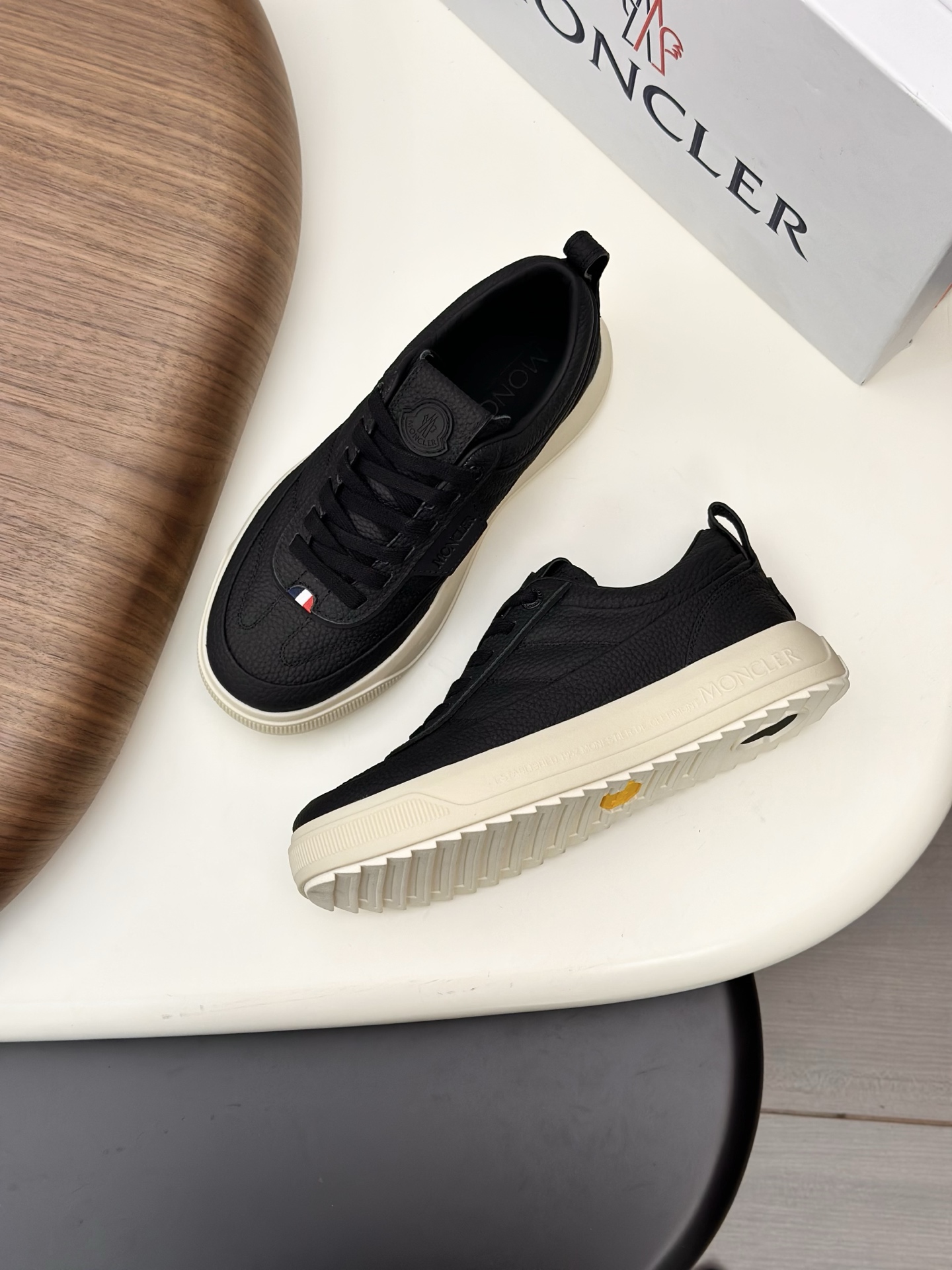디자인: 견고한 슈레이스 시스템과 뒤축의 몽클레르 로고 포인트