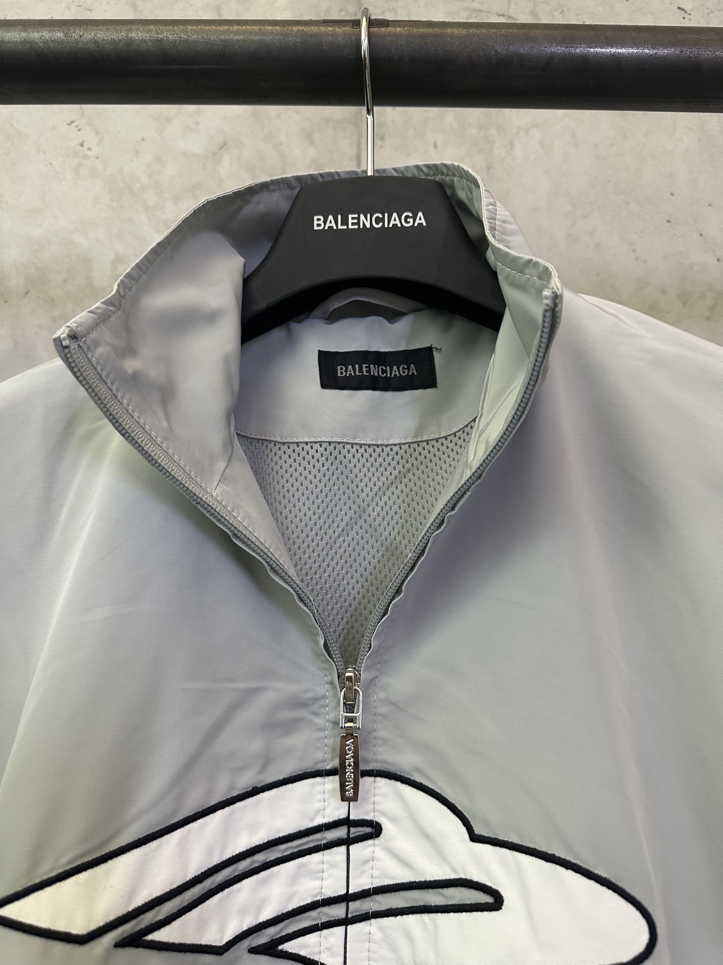 특징: 발렌시아가 고유의 풋볼(Football) 아카이브 디자인에 3M 리플렉티브 자수로 포인트를 준 바람막이 자켓