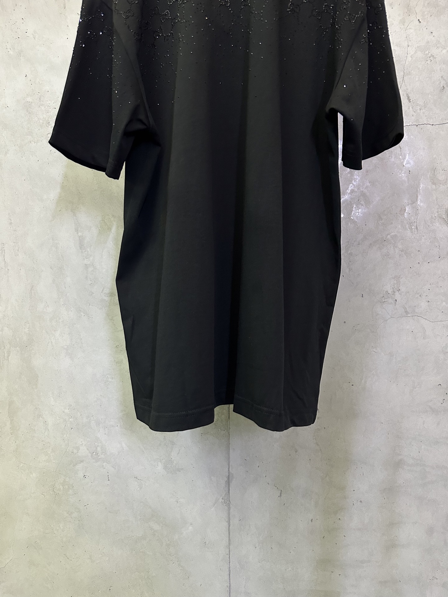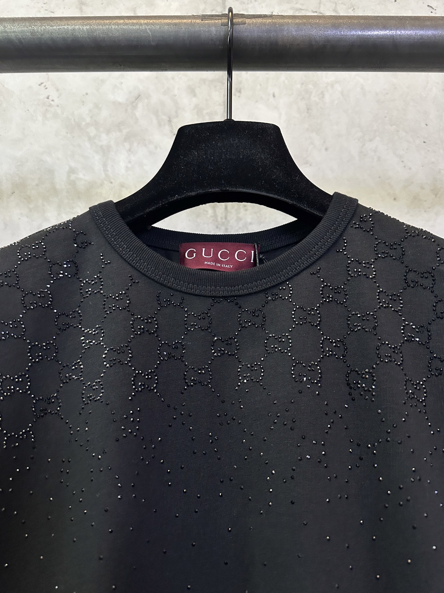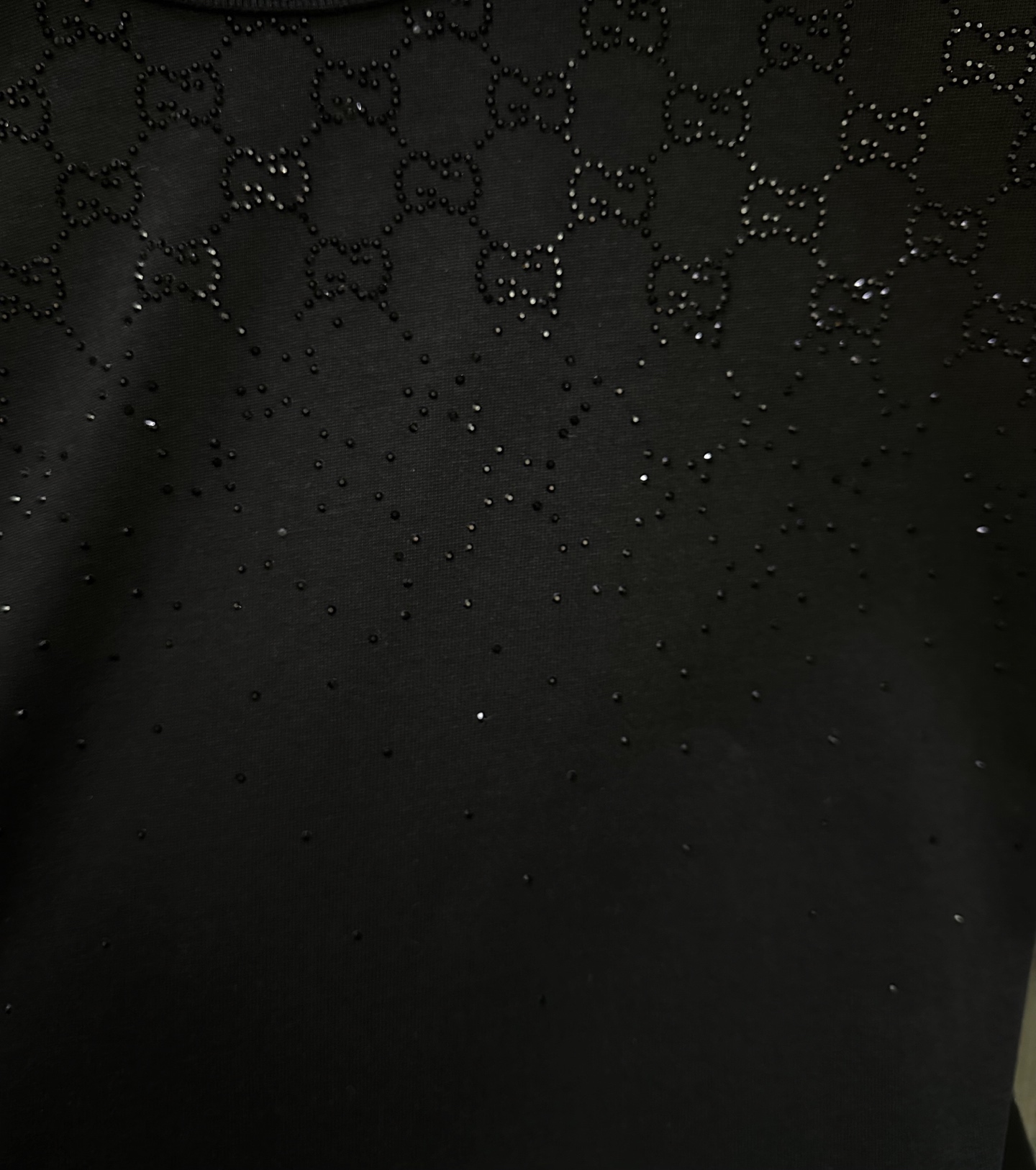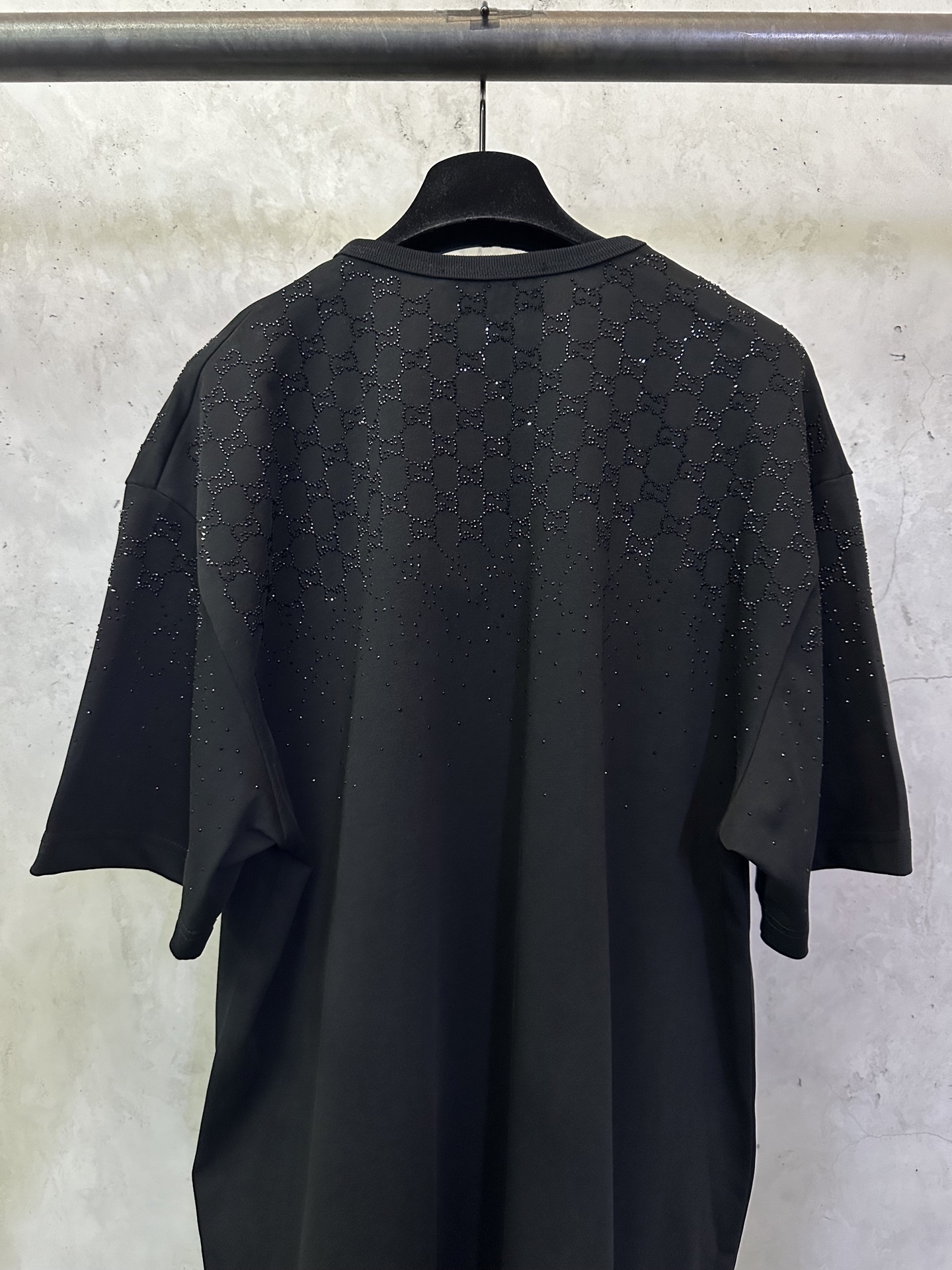 디자인: SS26 신상, 크리스탈급 **핫픽스(스톤)**를 사용한 그라데이션 더블G 로고 디자인