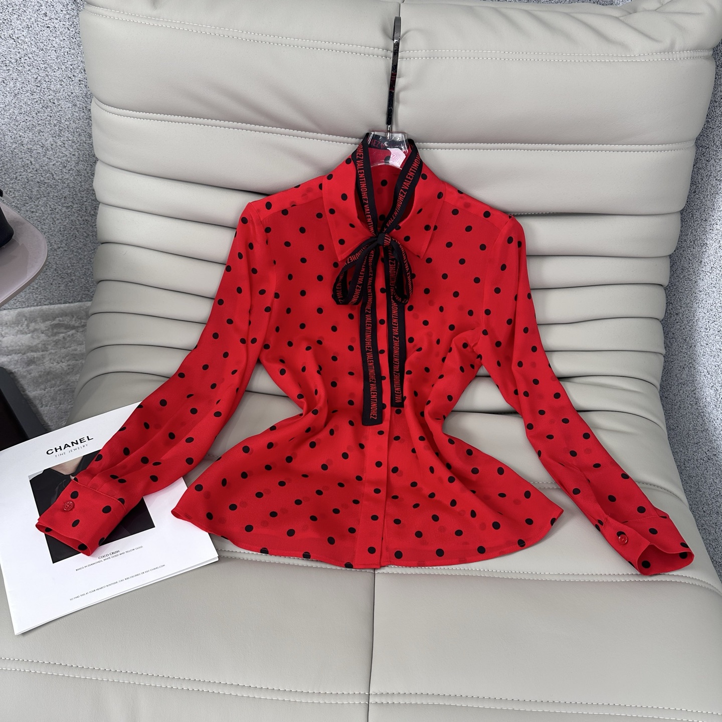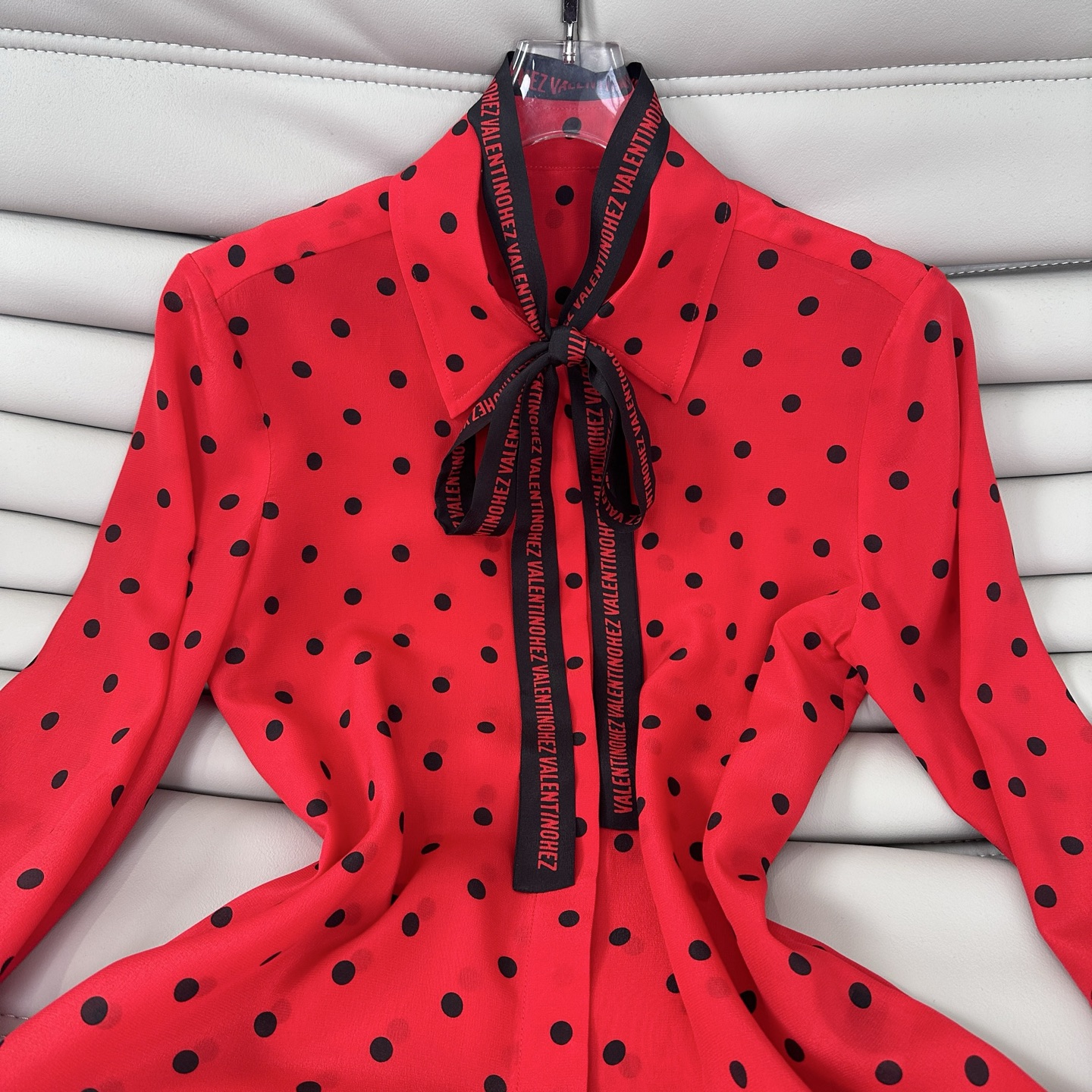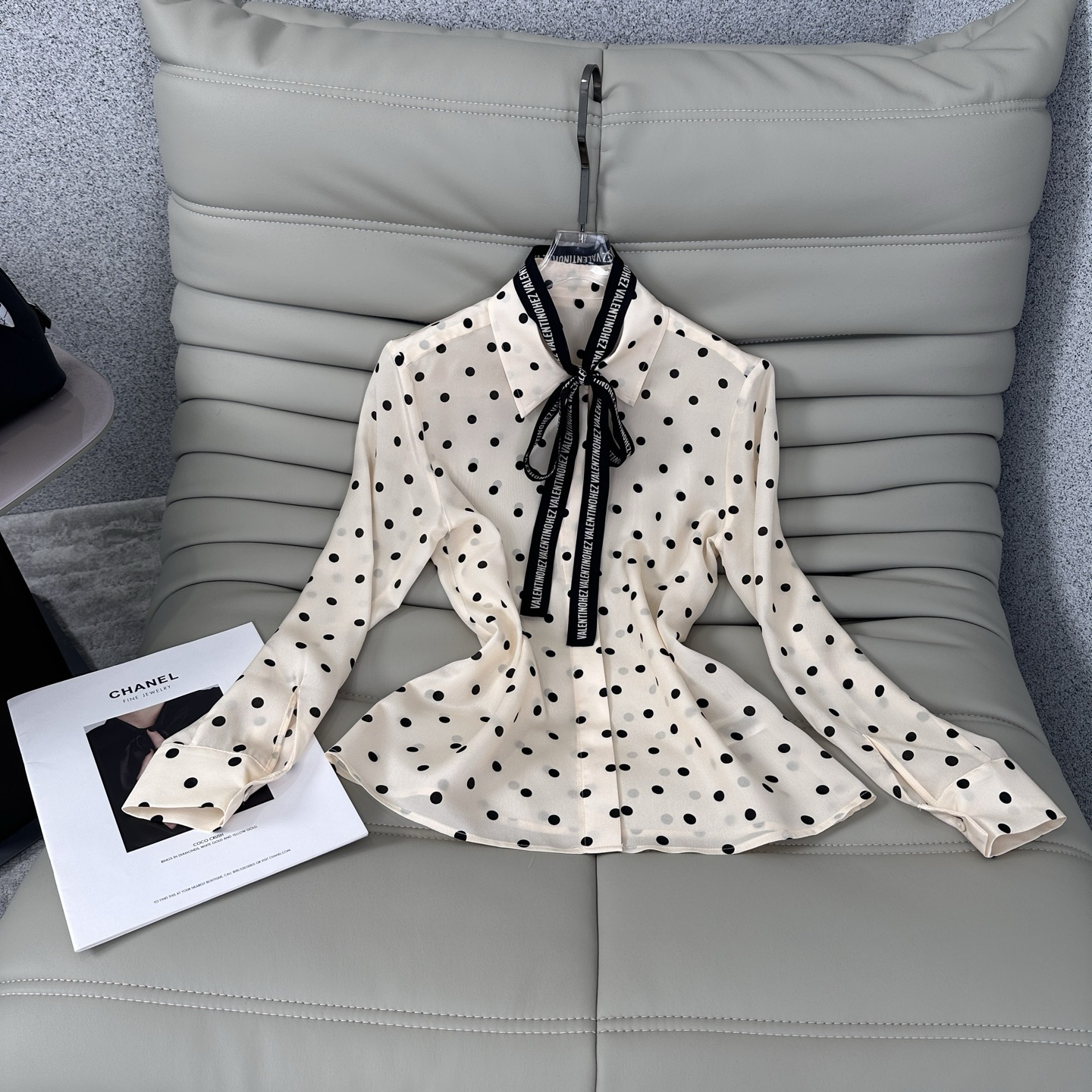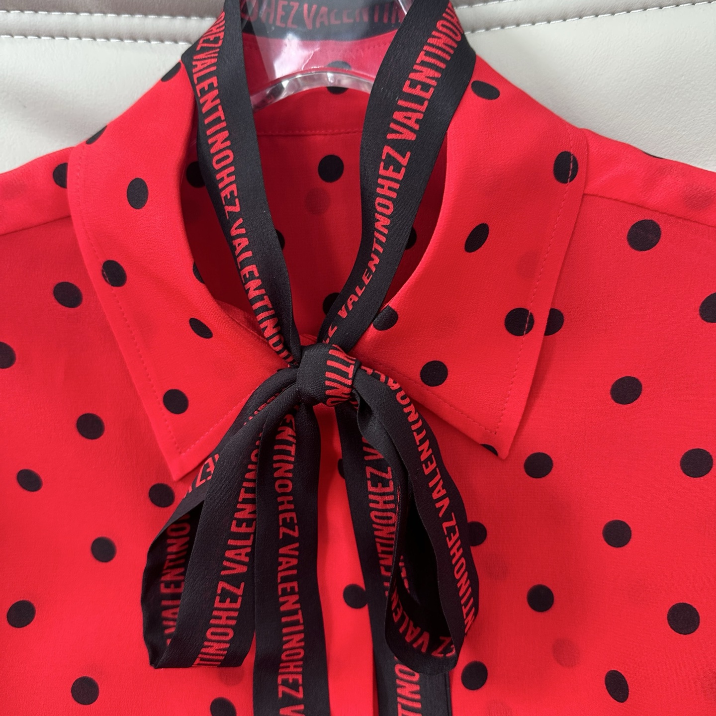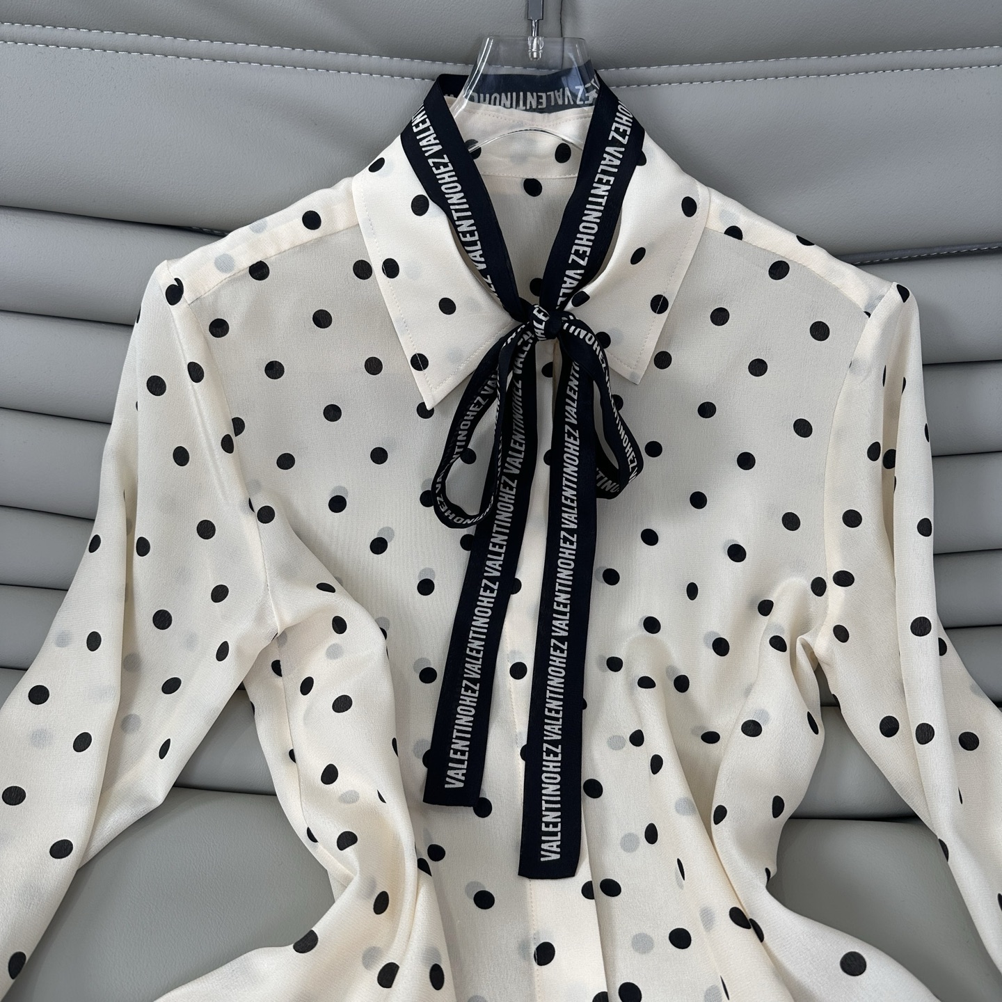 발렌티노(Valentino) 프렌치 카라 도트 스트랩 실크 셔츠 블라우스 의류