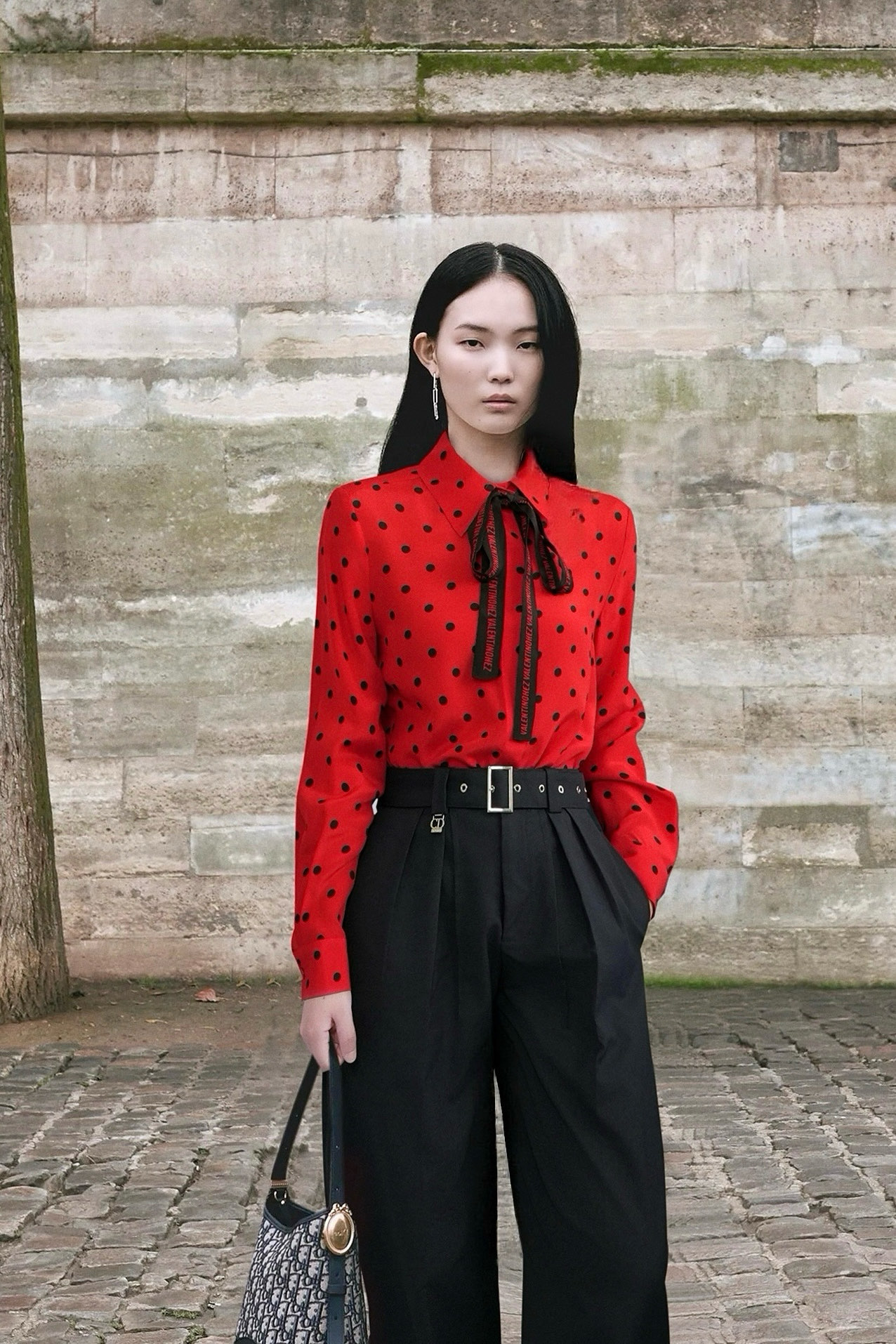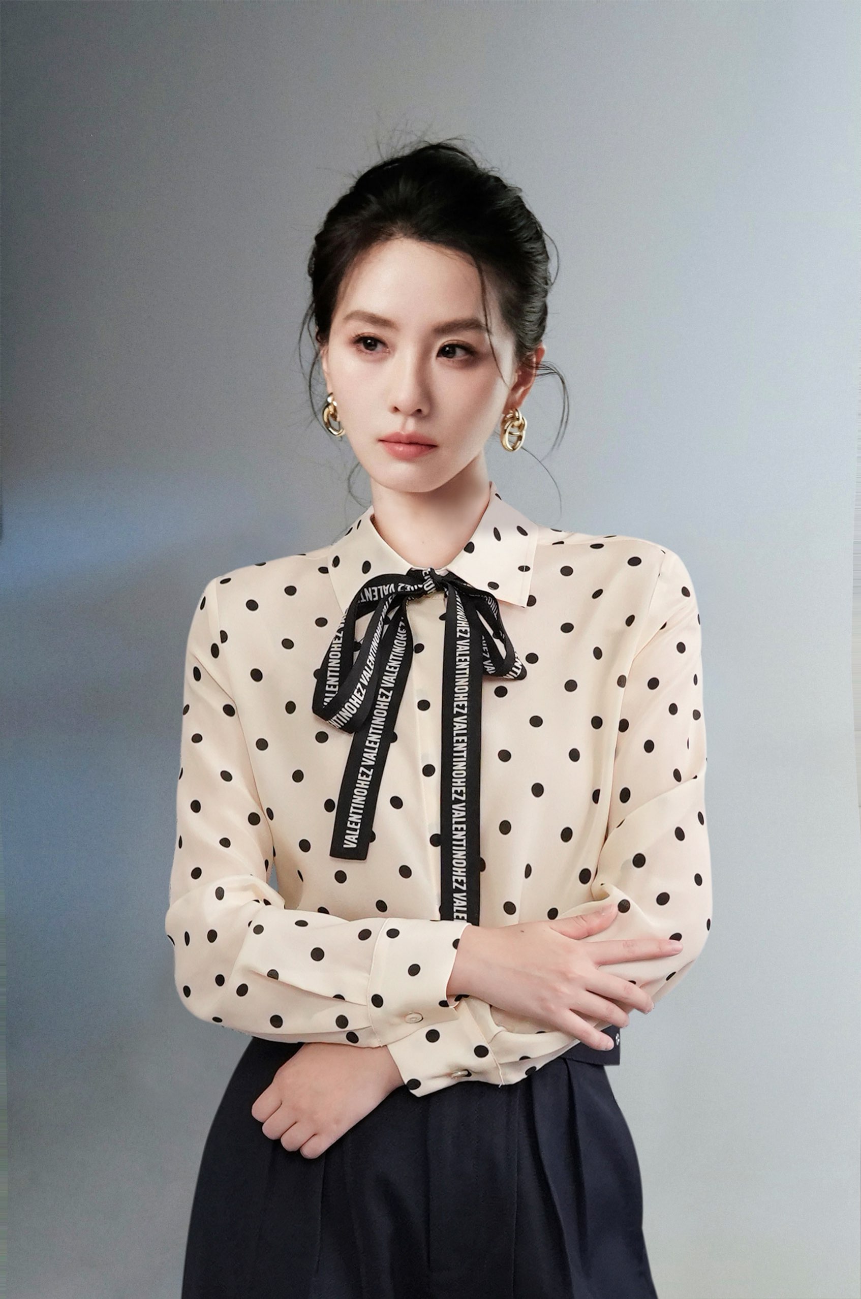 단독 착용은 물론, 재킷이나 코트 안에 이너로 매치했을 때 도트 패턴이 확실한 포인트가 됨