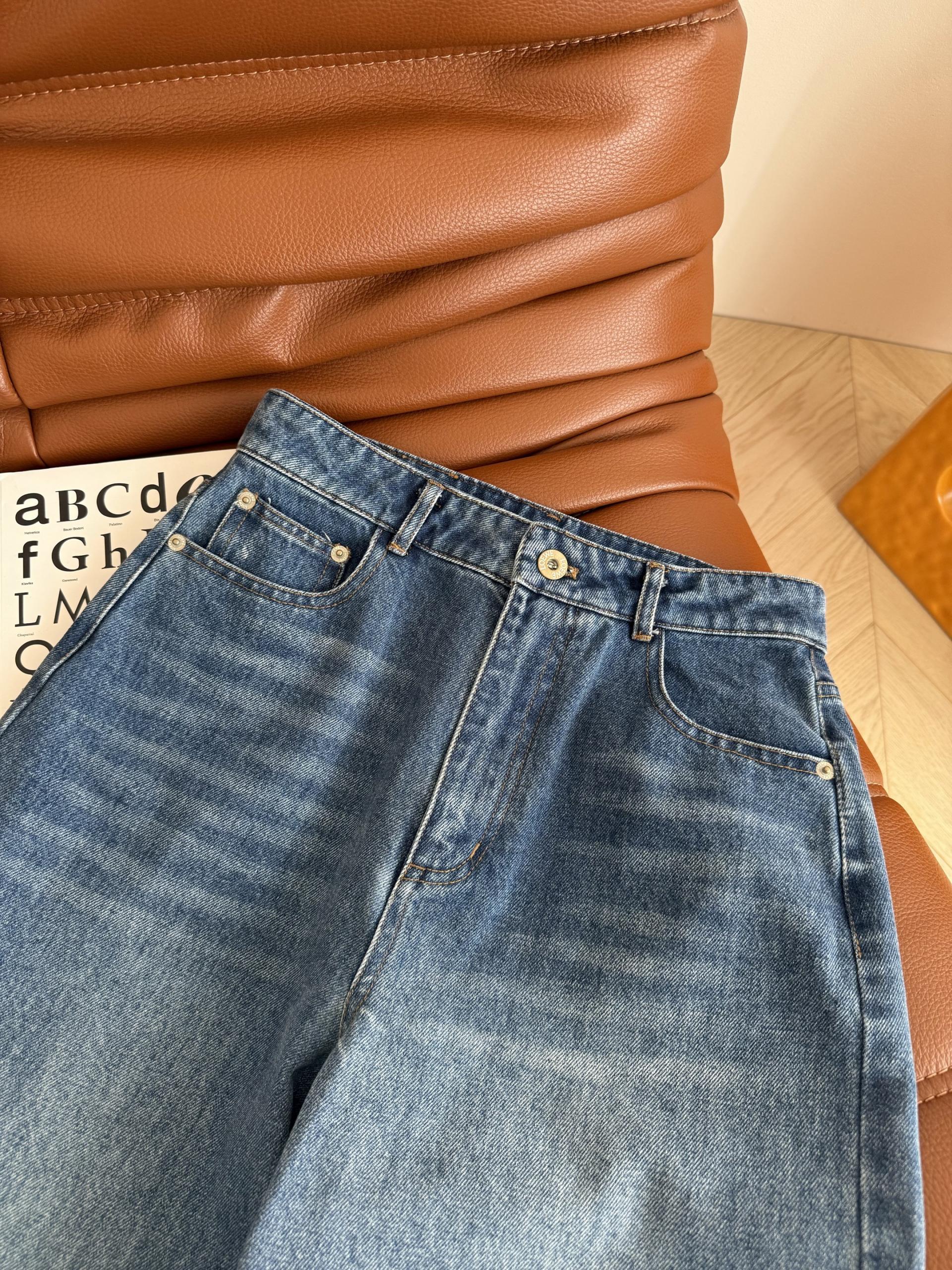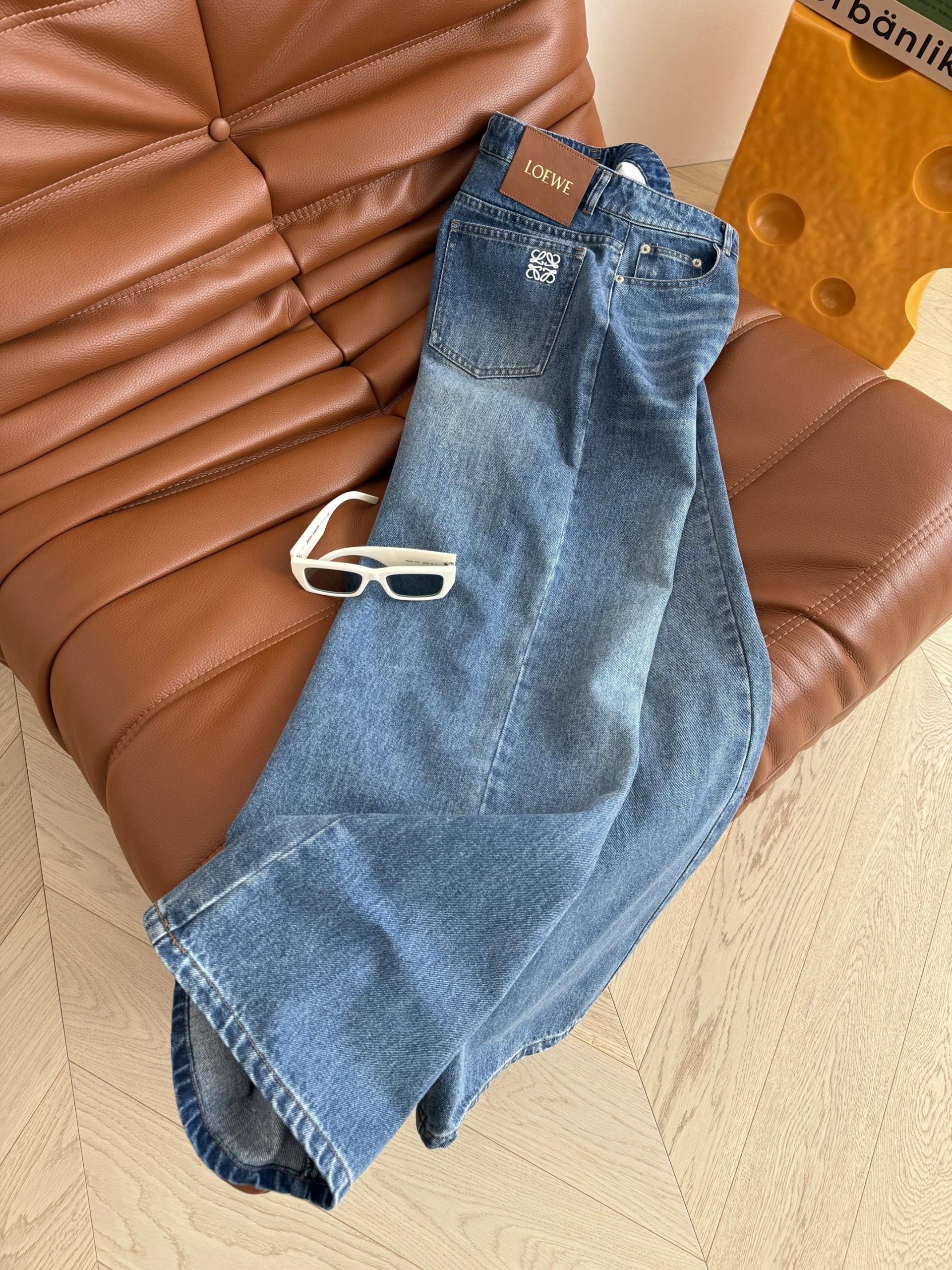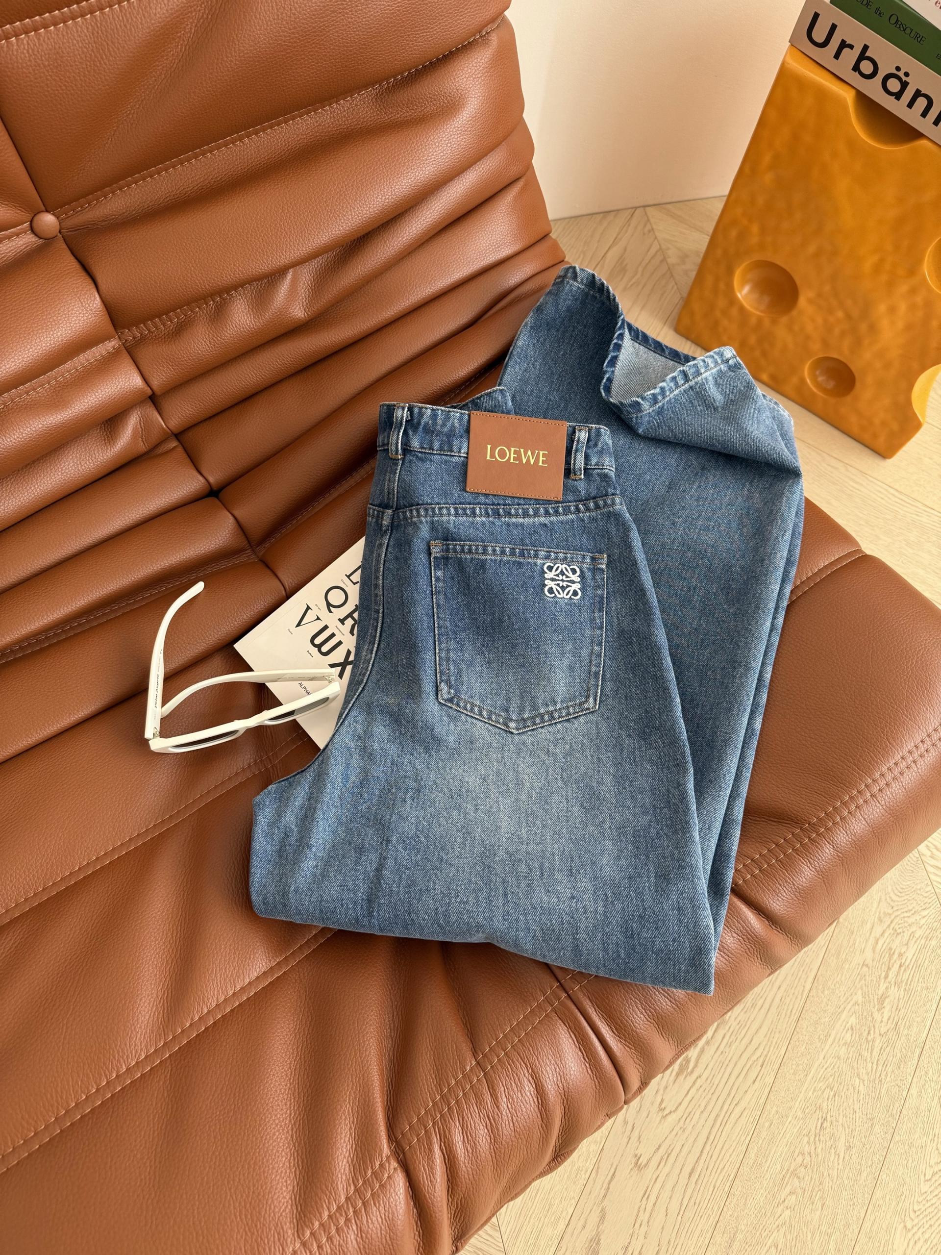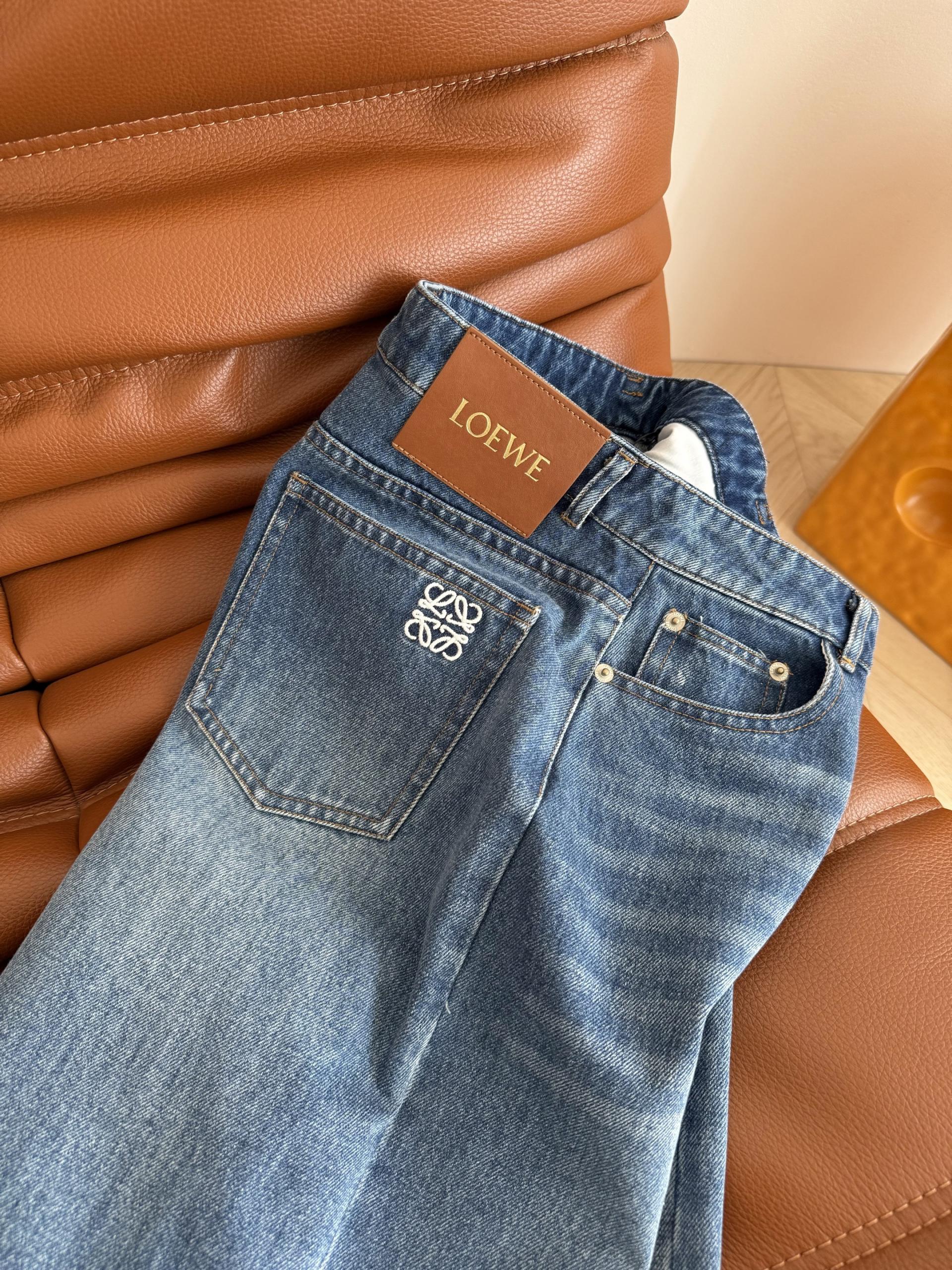 Loewe 로에베 빈티지 블루 로고 자수 스트레이트 데님 팬츠 청바지 의류