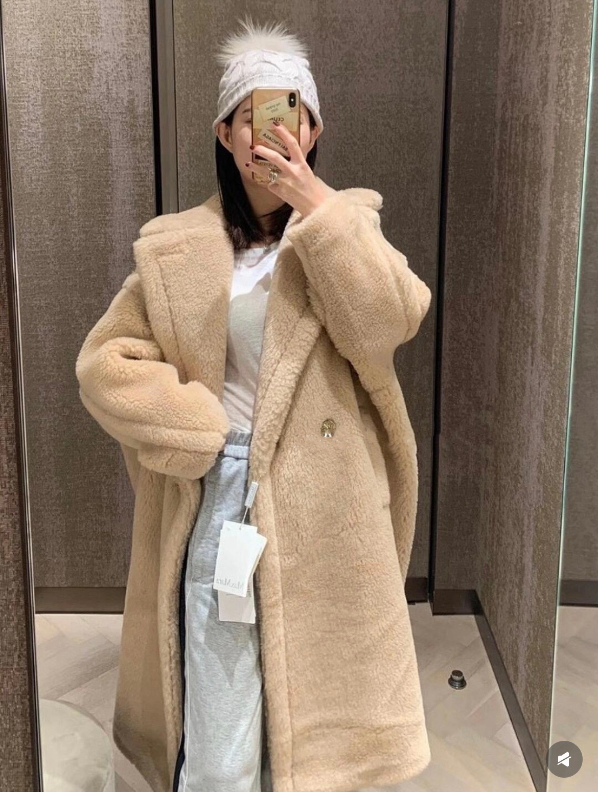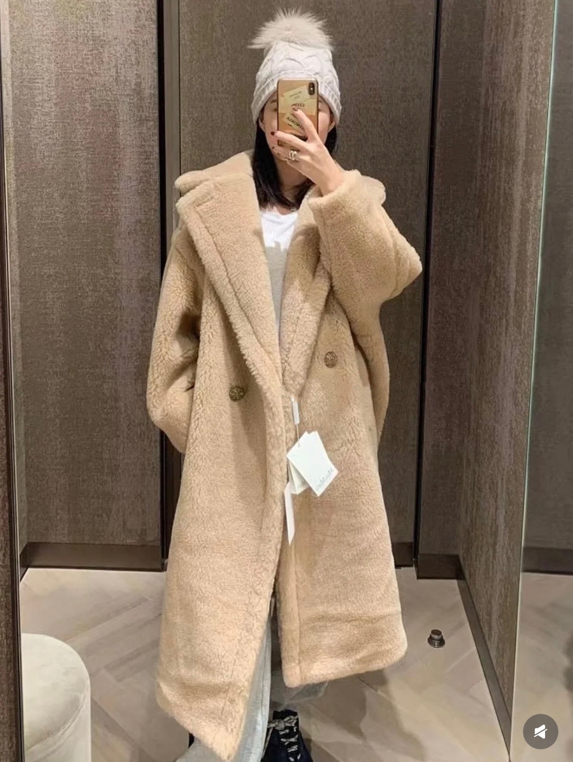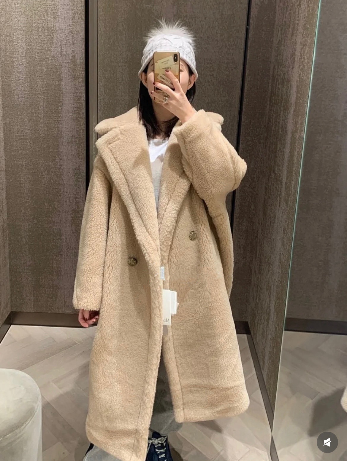 모델: 셀럽 착용 동일 모델, 최신상 샴페인 컬러 테디베어 코트