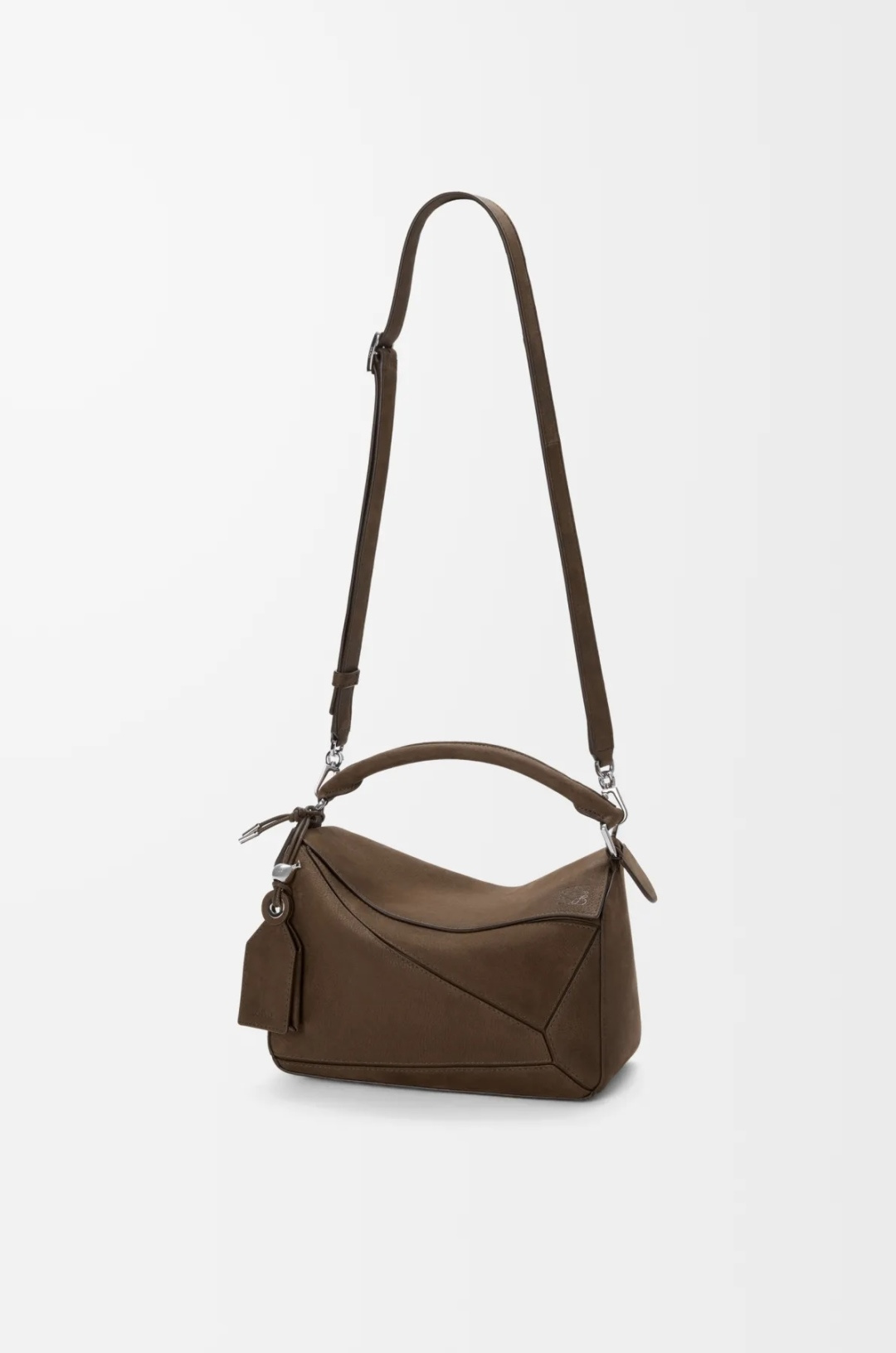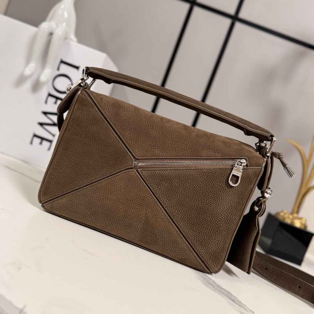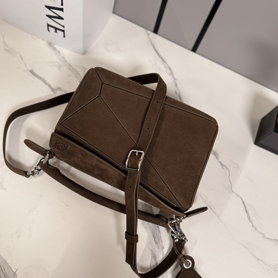 디자인: 로에베의 아이코닉한 기하학적 라인이 돋보이는 직육면체 디자인의 퍼즐백입니다.