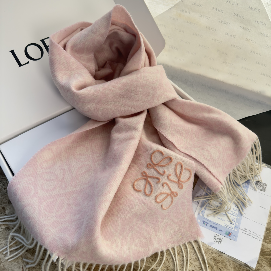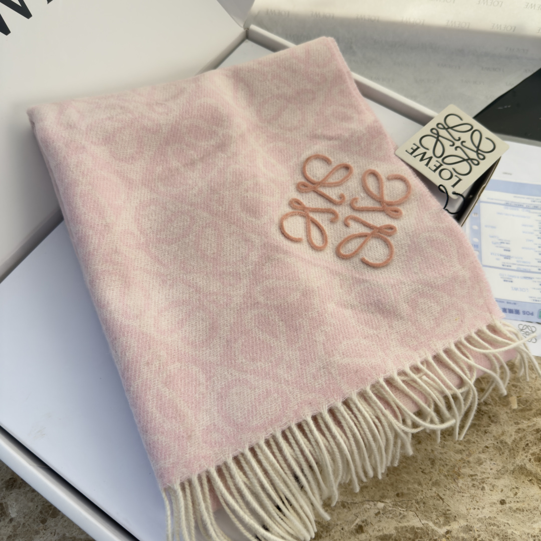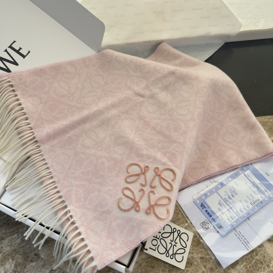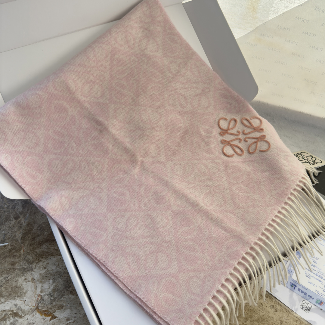 LOEWE 로에베 · 아나그램 플로킹 자수 체크 머플러 목도리 스카프