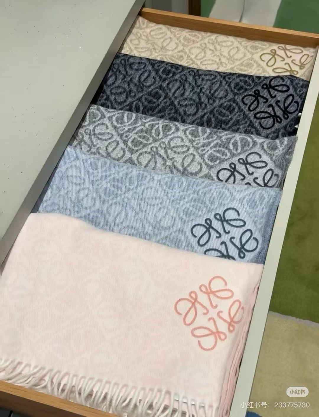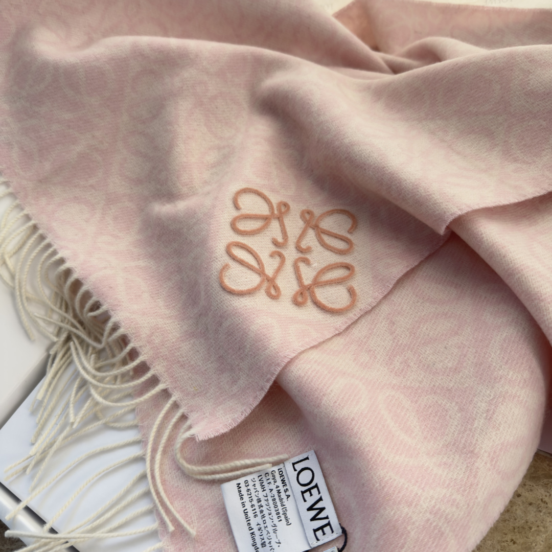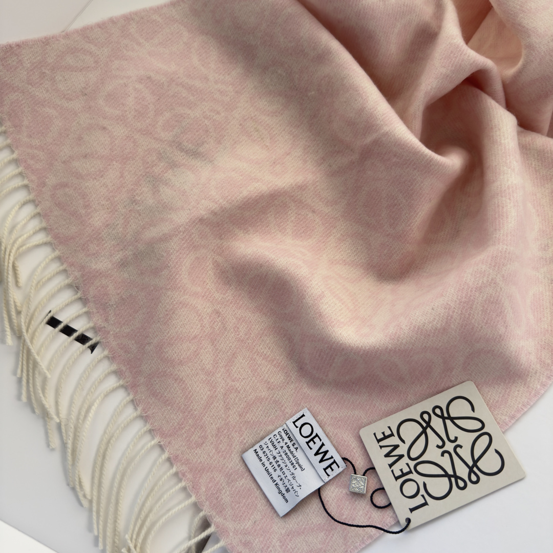 LOEWE 로에베 · 아나그램 플로킹 자수 체크 머플러 목도리 스카프