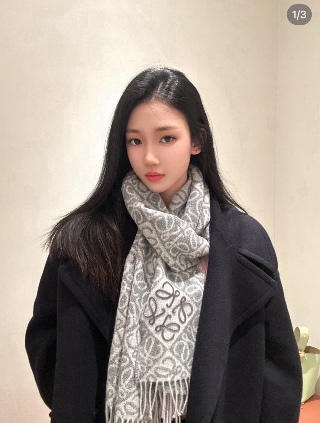 LOEWE 로에베 · 아나그램 플로킹 자수 체크 머플러 목도리 스카프