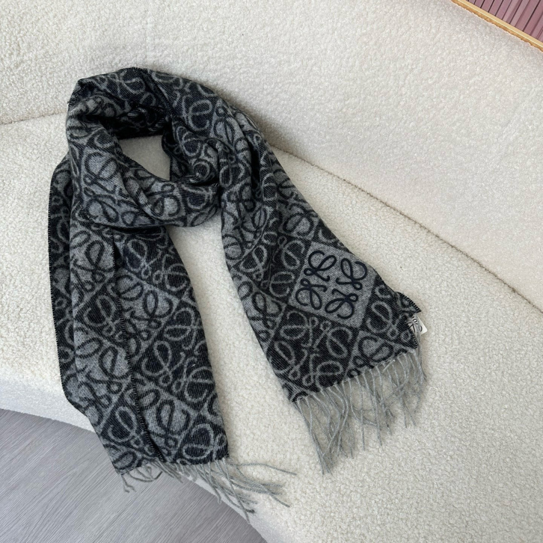 LOEWE 로에베 · 아나그램 플로킹 자수 체크 머플러 목도리 스카프