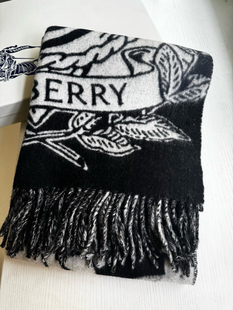럭셔리 디테일: 양 끝단의 정교한 버버리 레터링 로고와 클래식한 프런지(술) 장식
