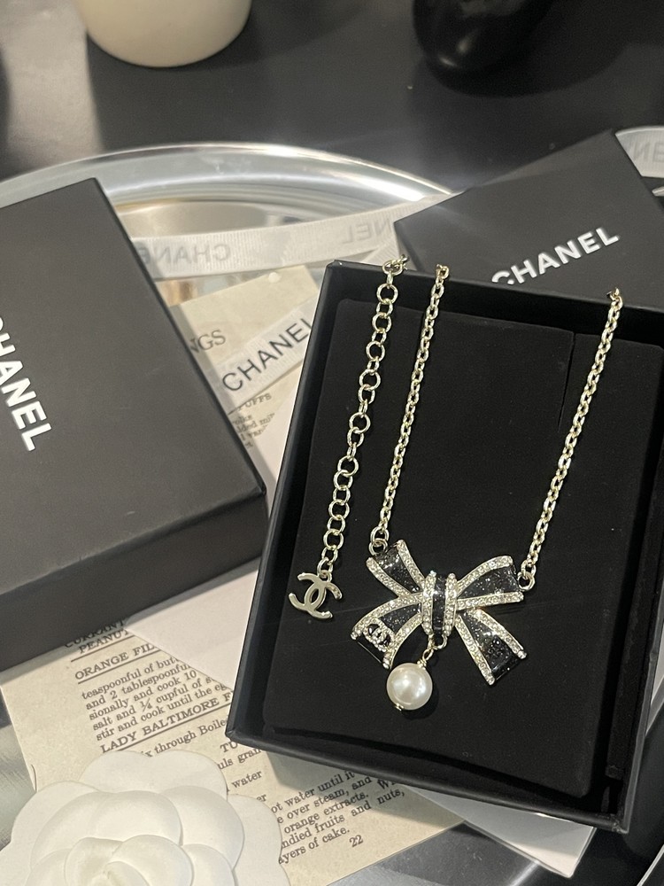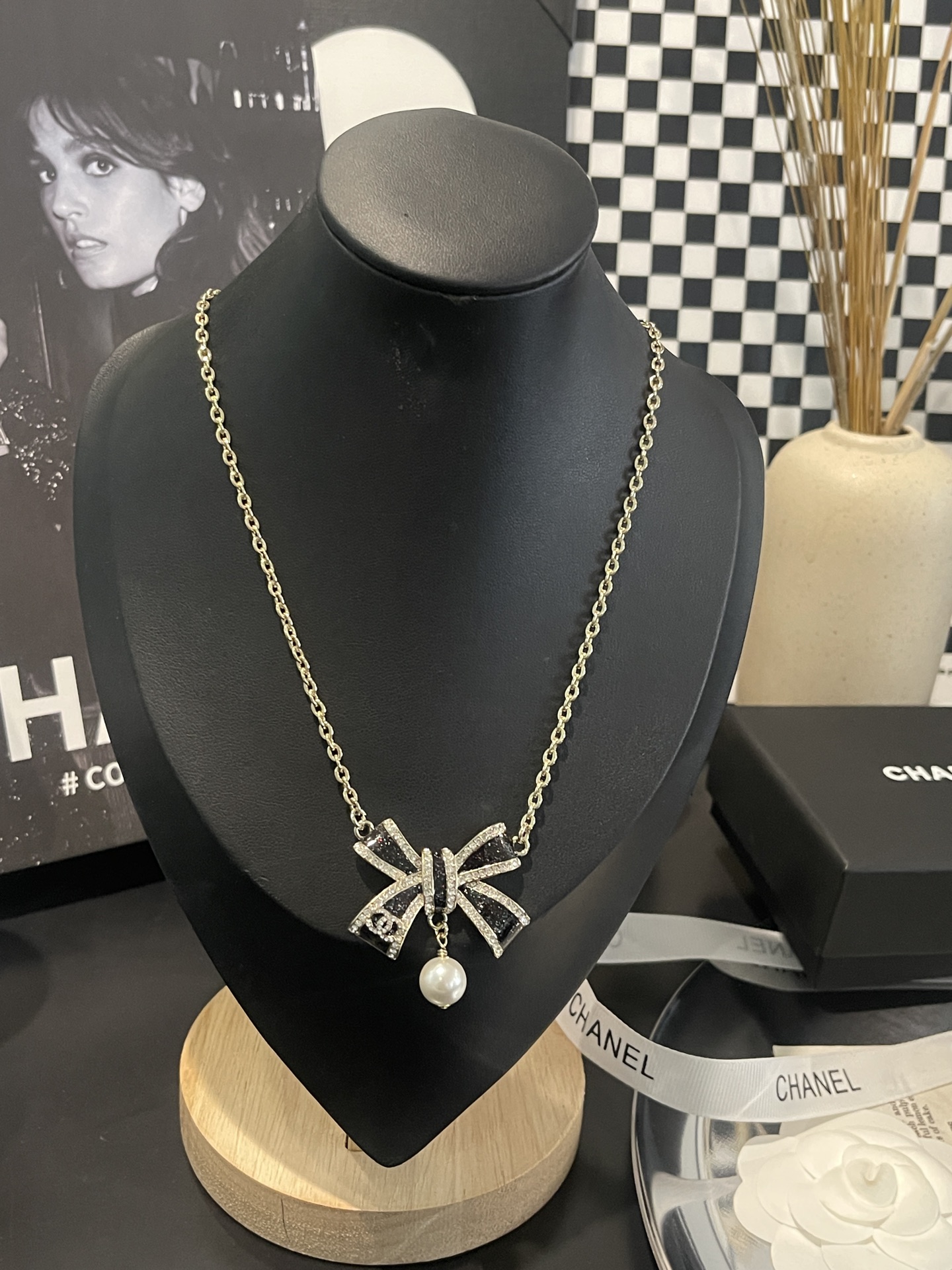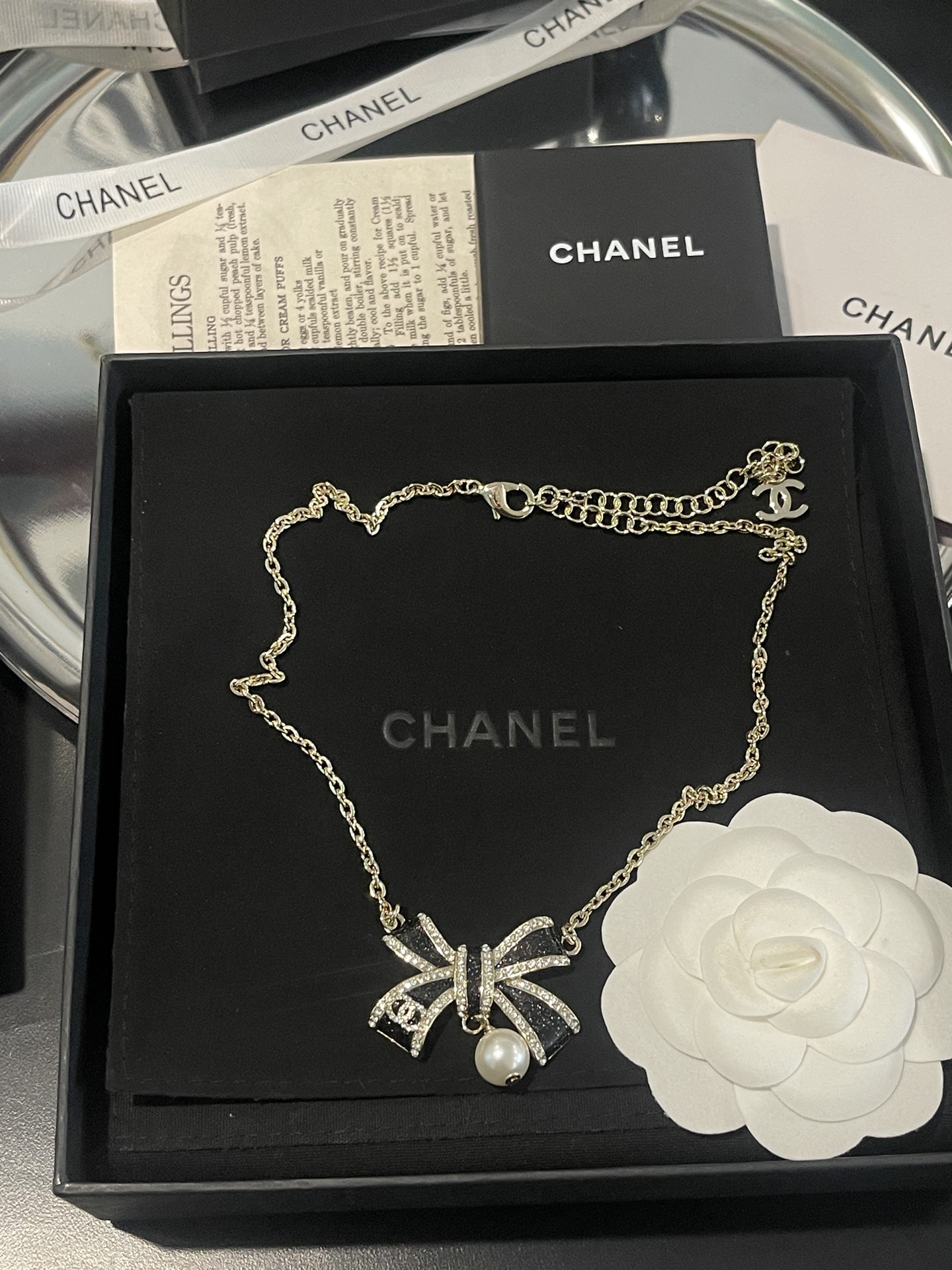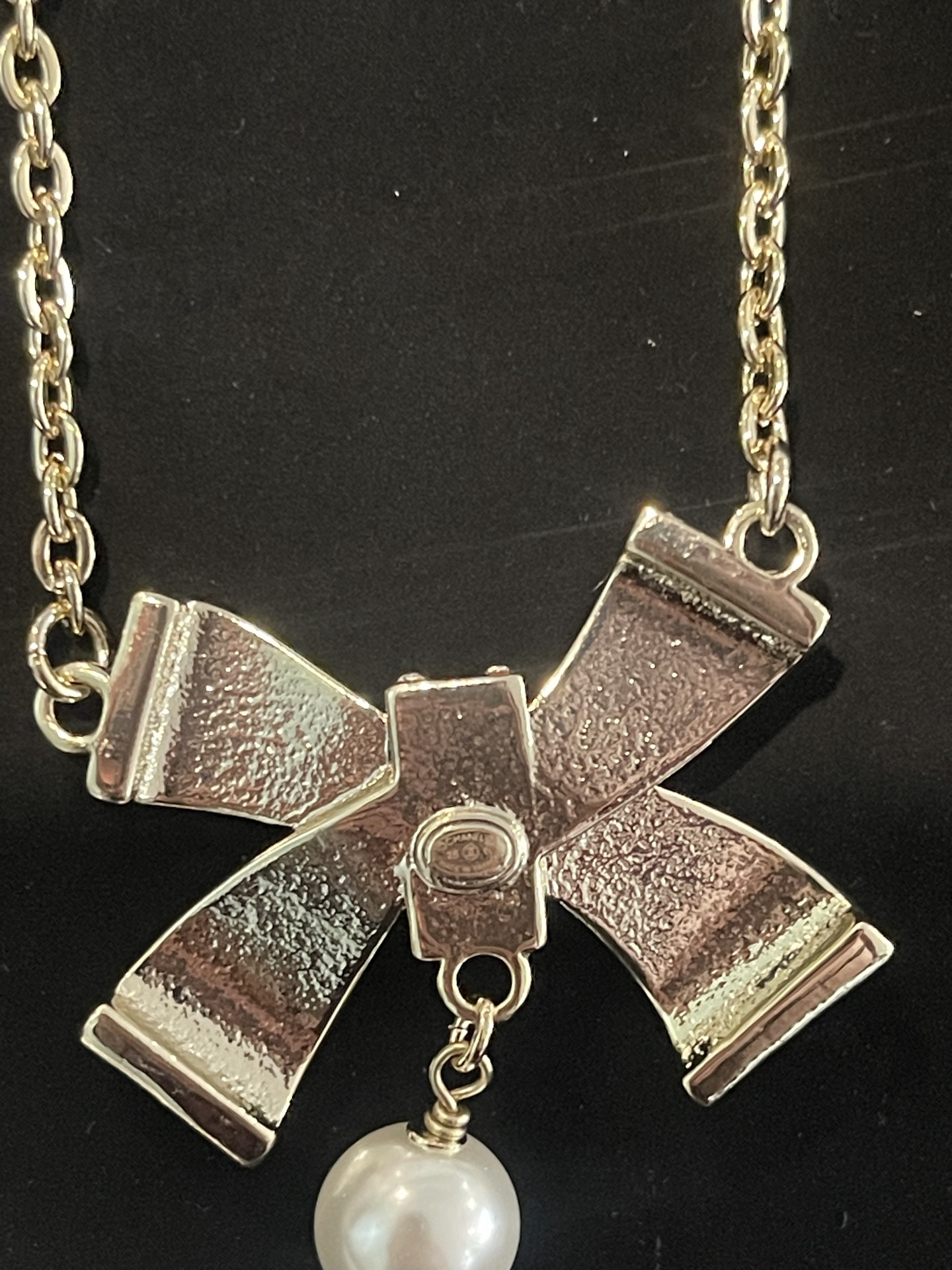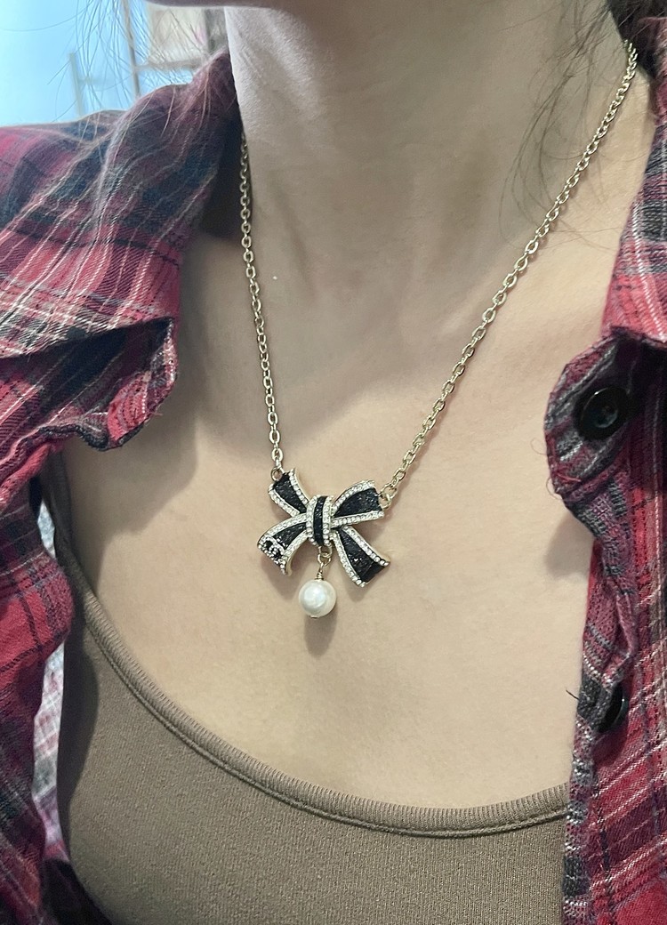 Chanel 샤넬 · 블랙&골드 리본 진주 드롭 목걸이 악세사리