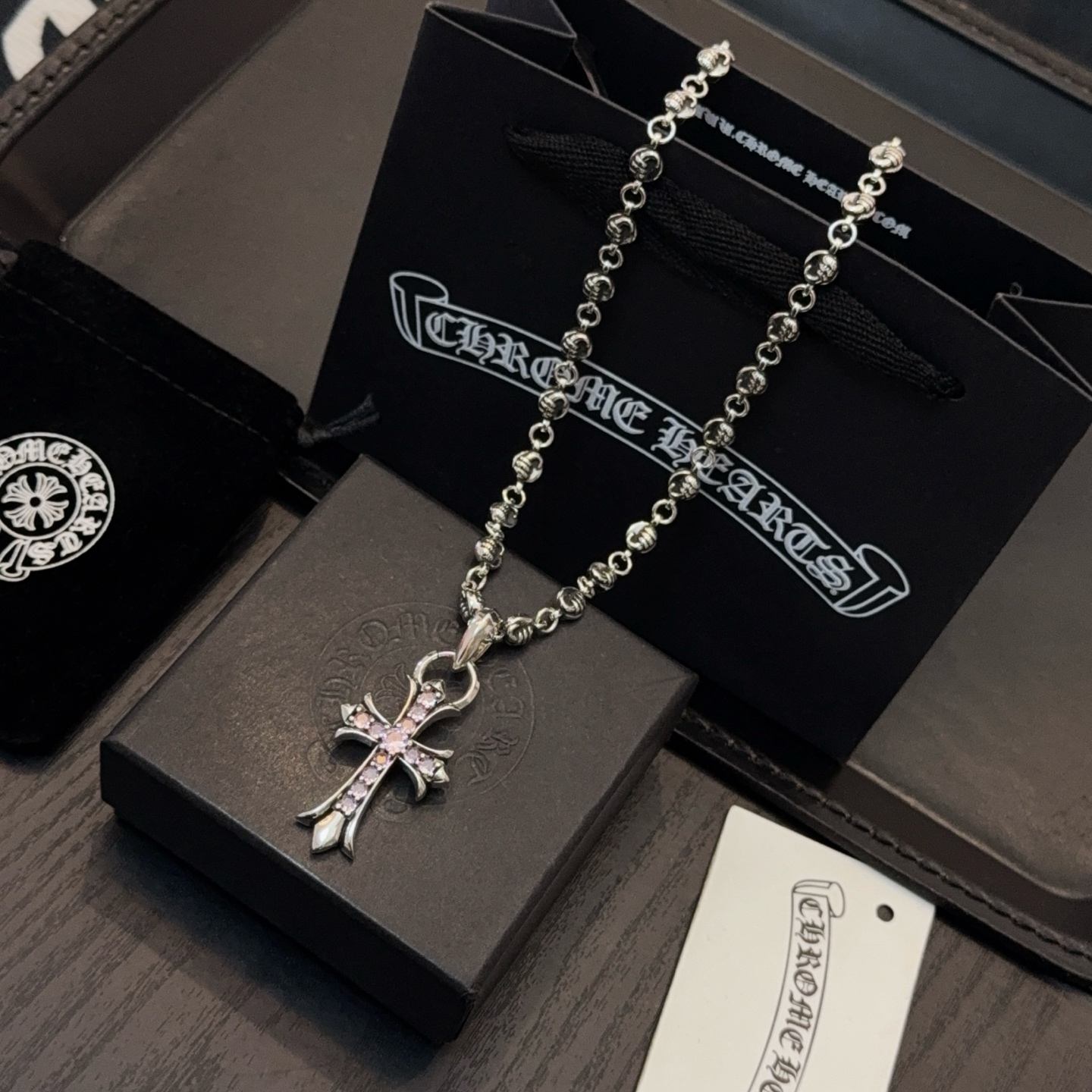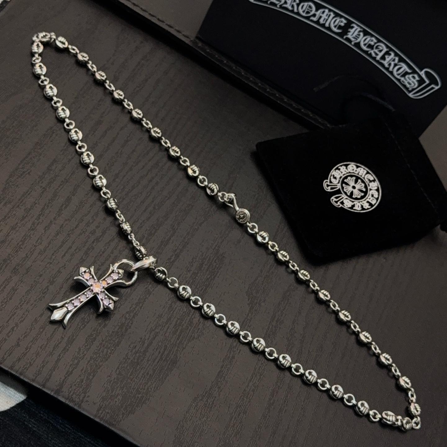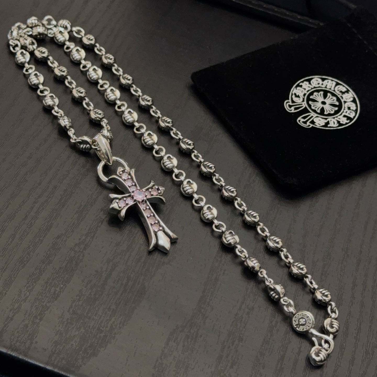 크롬하츠(Chrome Hearts) 크로스 볼 & 핑크 다이아 목걸이 악세사리