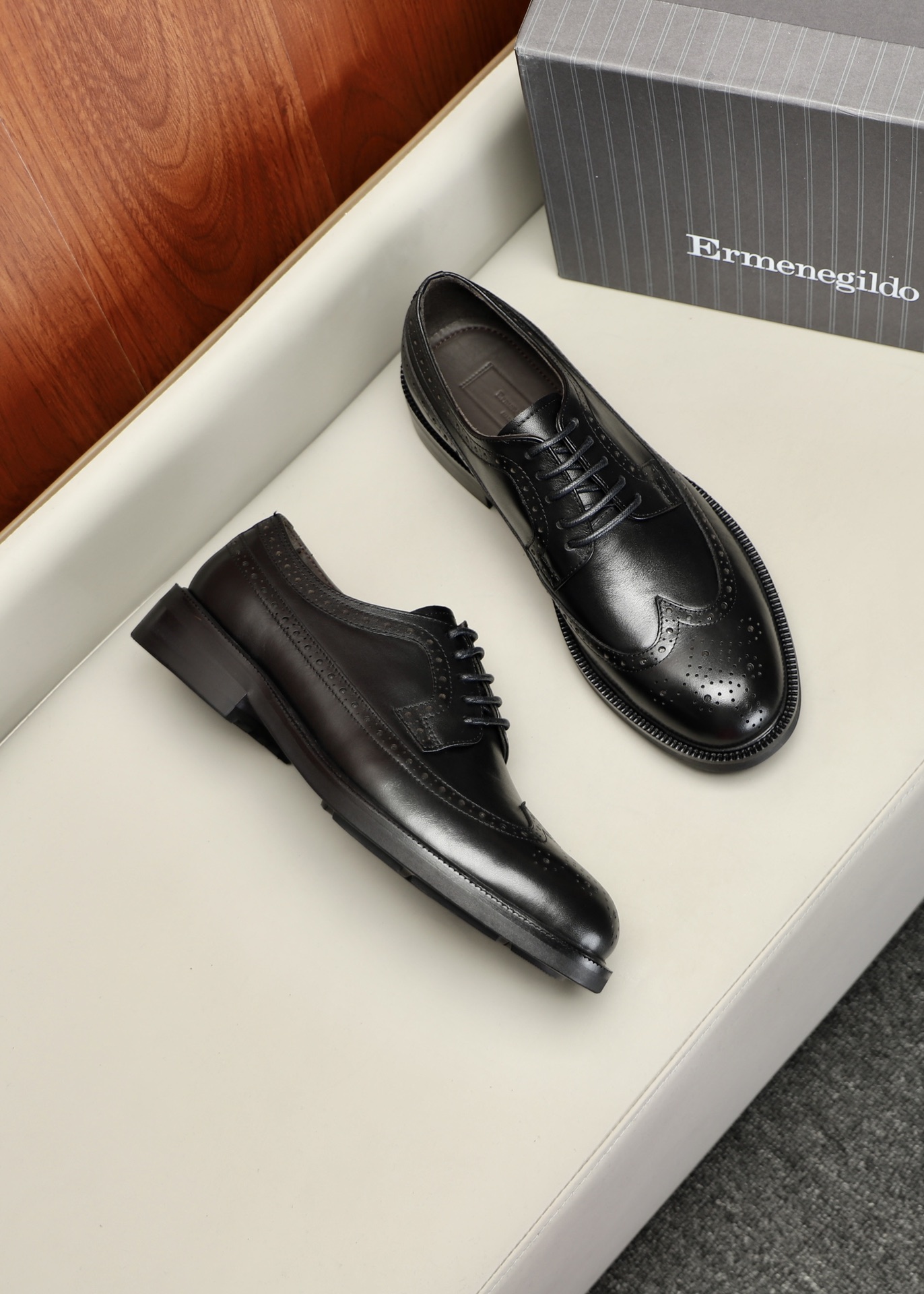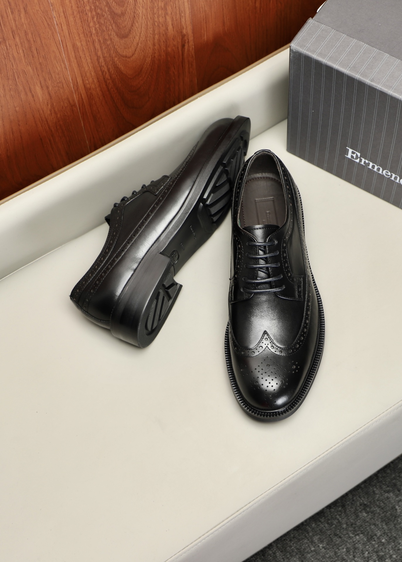 특징: 정교한 펀칭 디테일이 돋보이며, 포멀한 수트부터 비즈니스 캐주얼까지 격식 있는 스타일링 가능