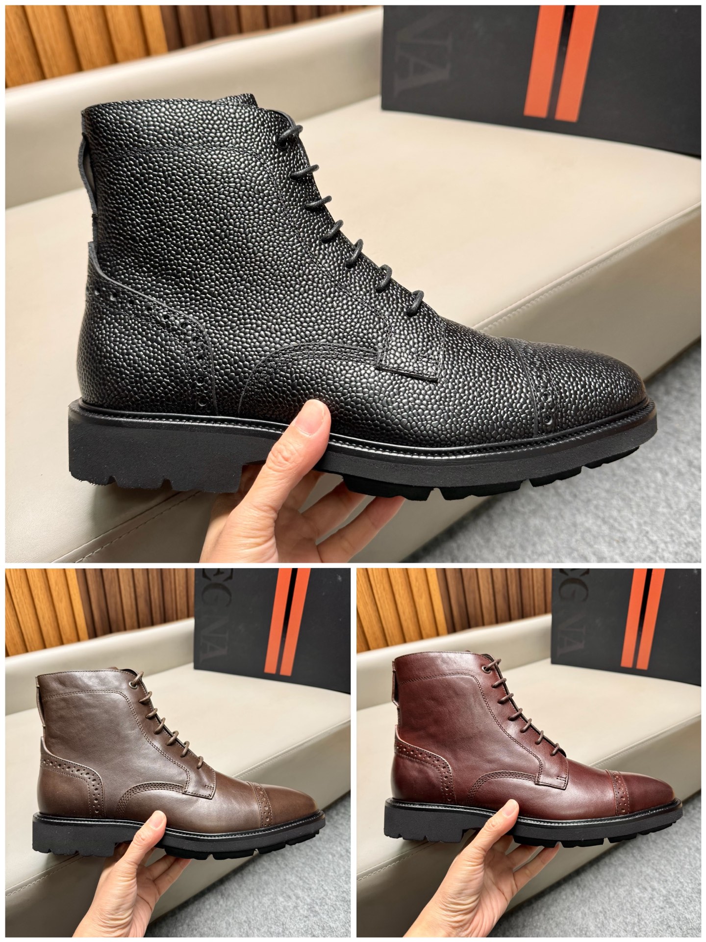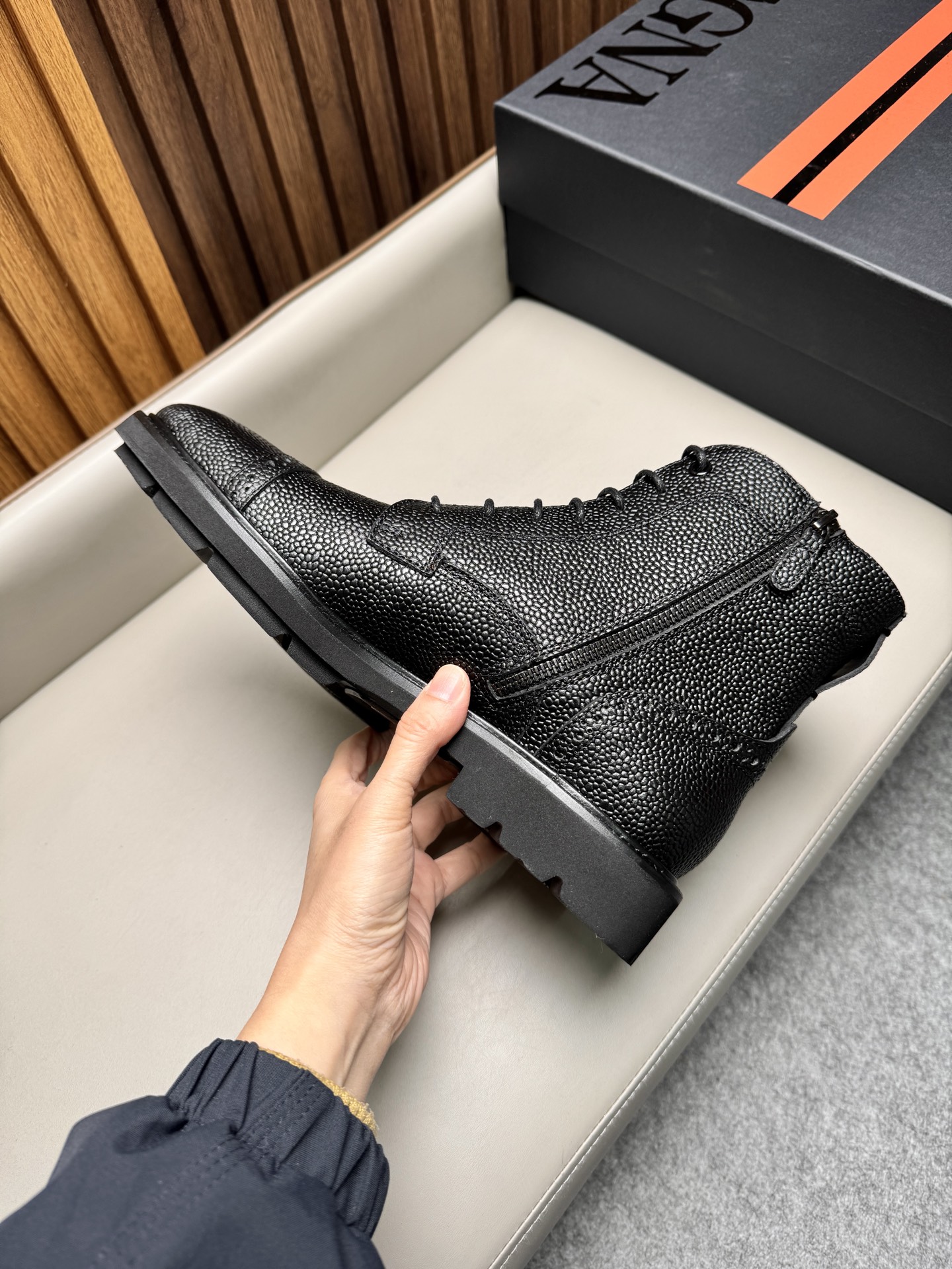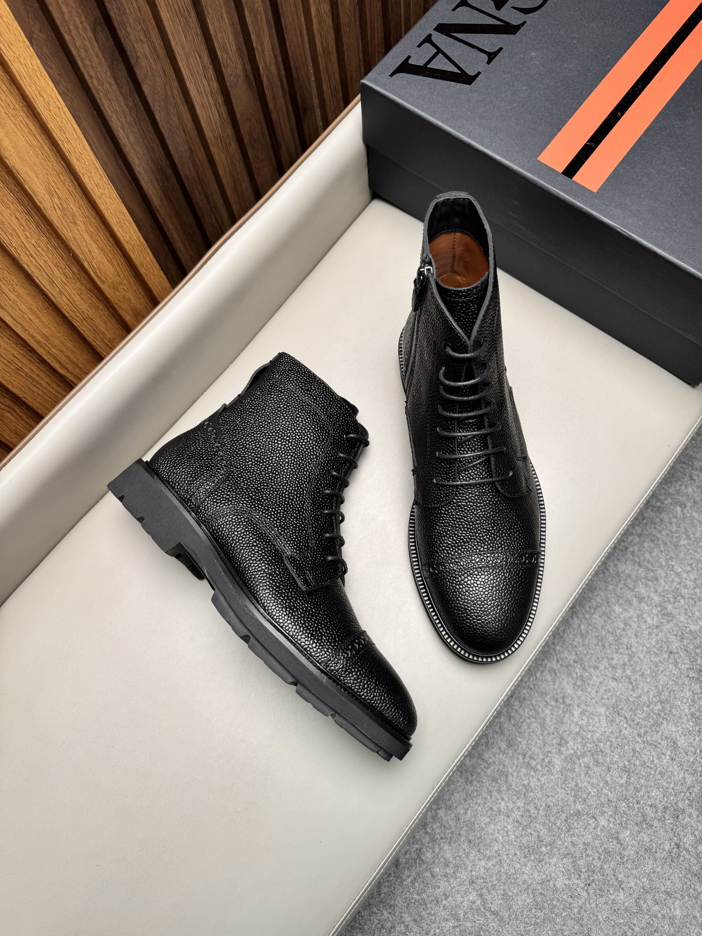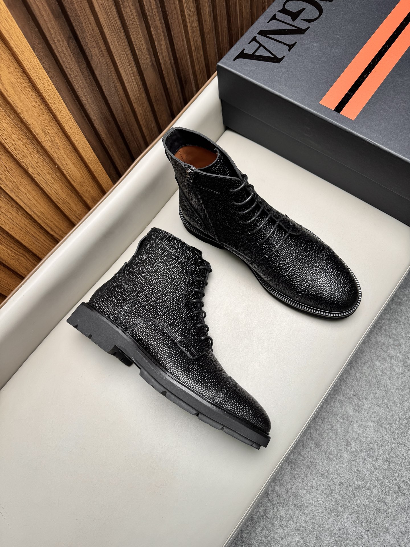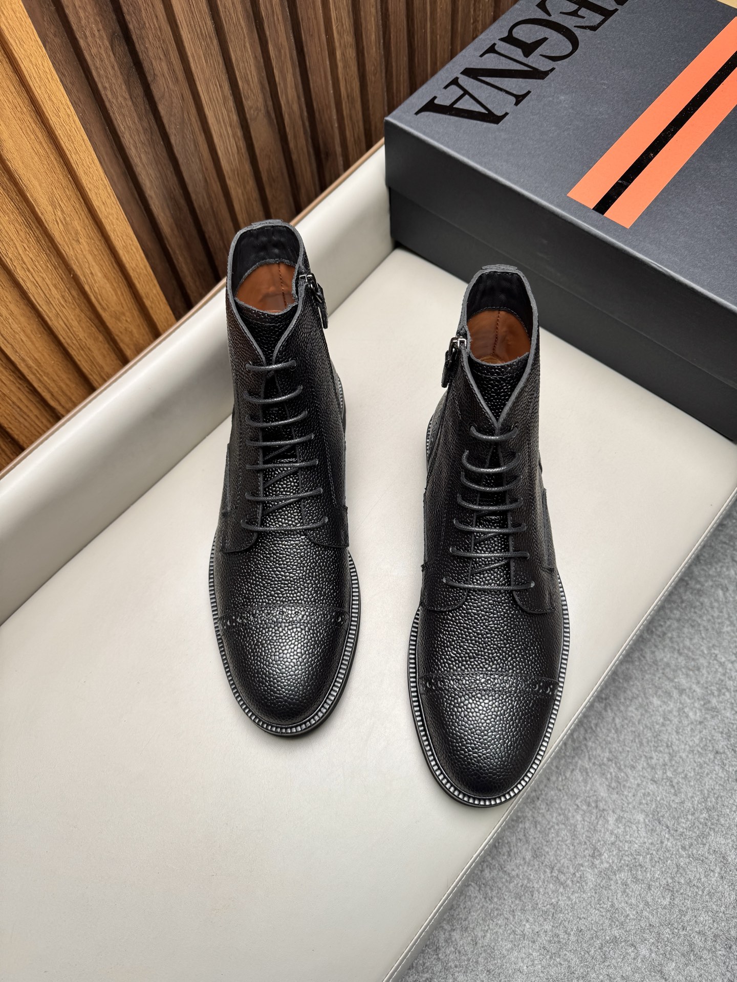 에르메네질도 제냐(Zegna) AOSTA 천연가죽 지퍼 레이스업 부츠 구두 신발