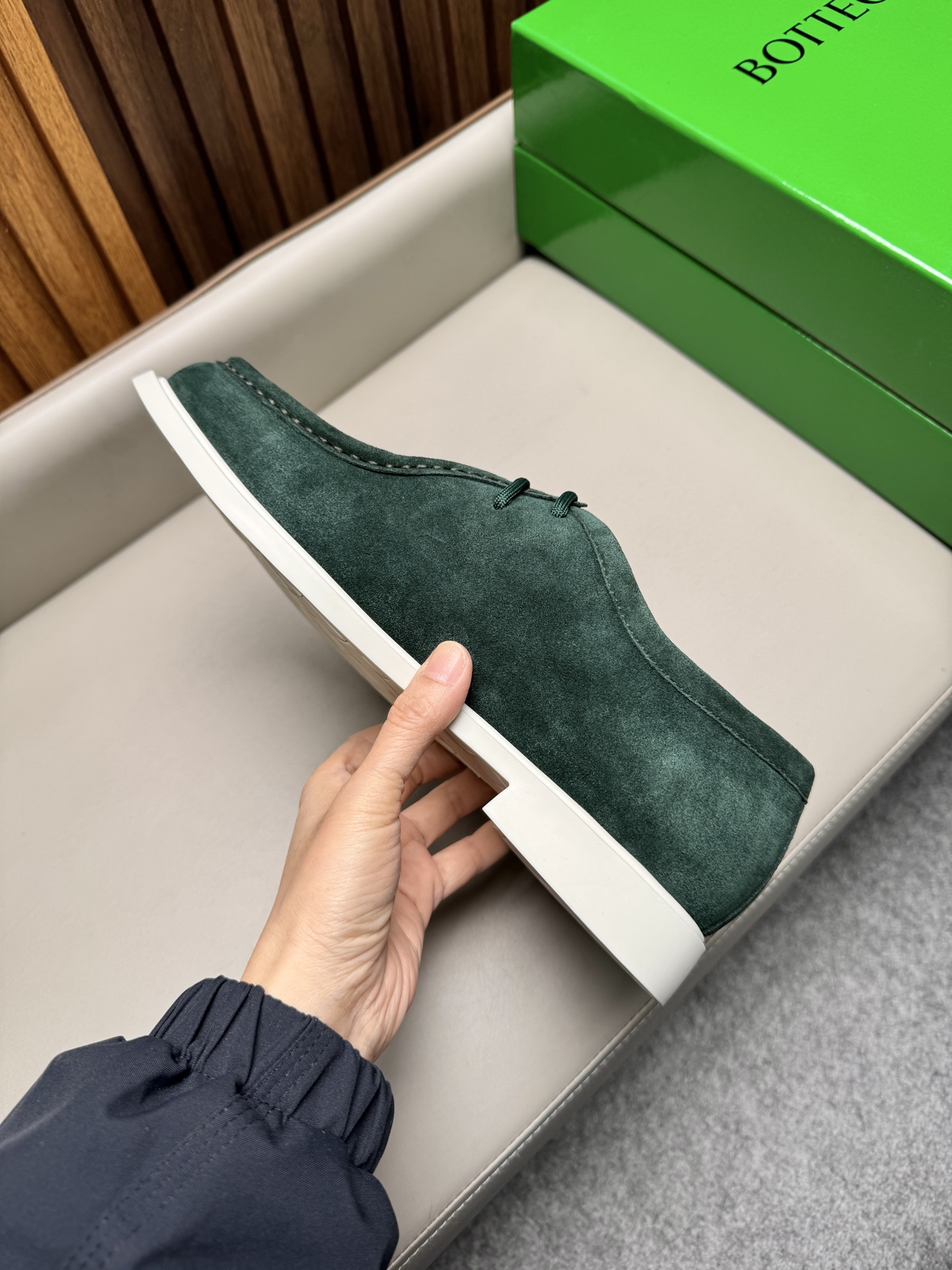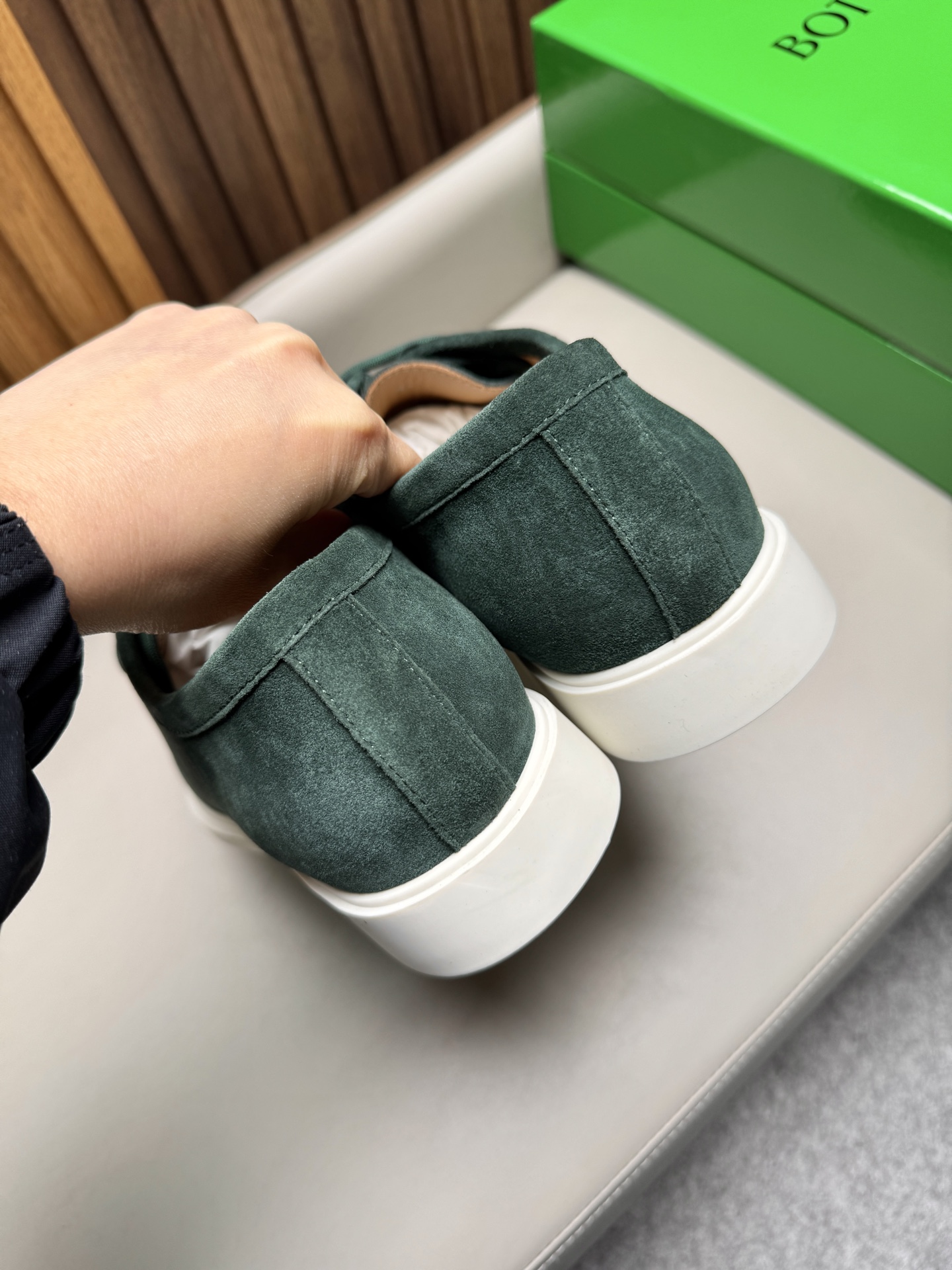 특징: 보테가 특유의 미니멀하고 고급스러운 무드, 뛰어난 내구성과 편안한 착화감