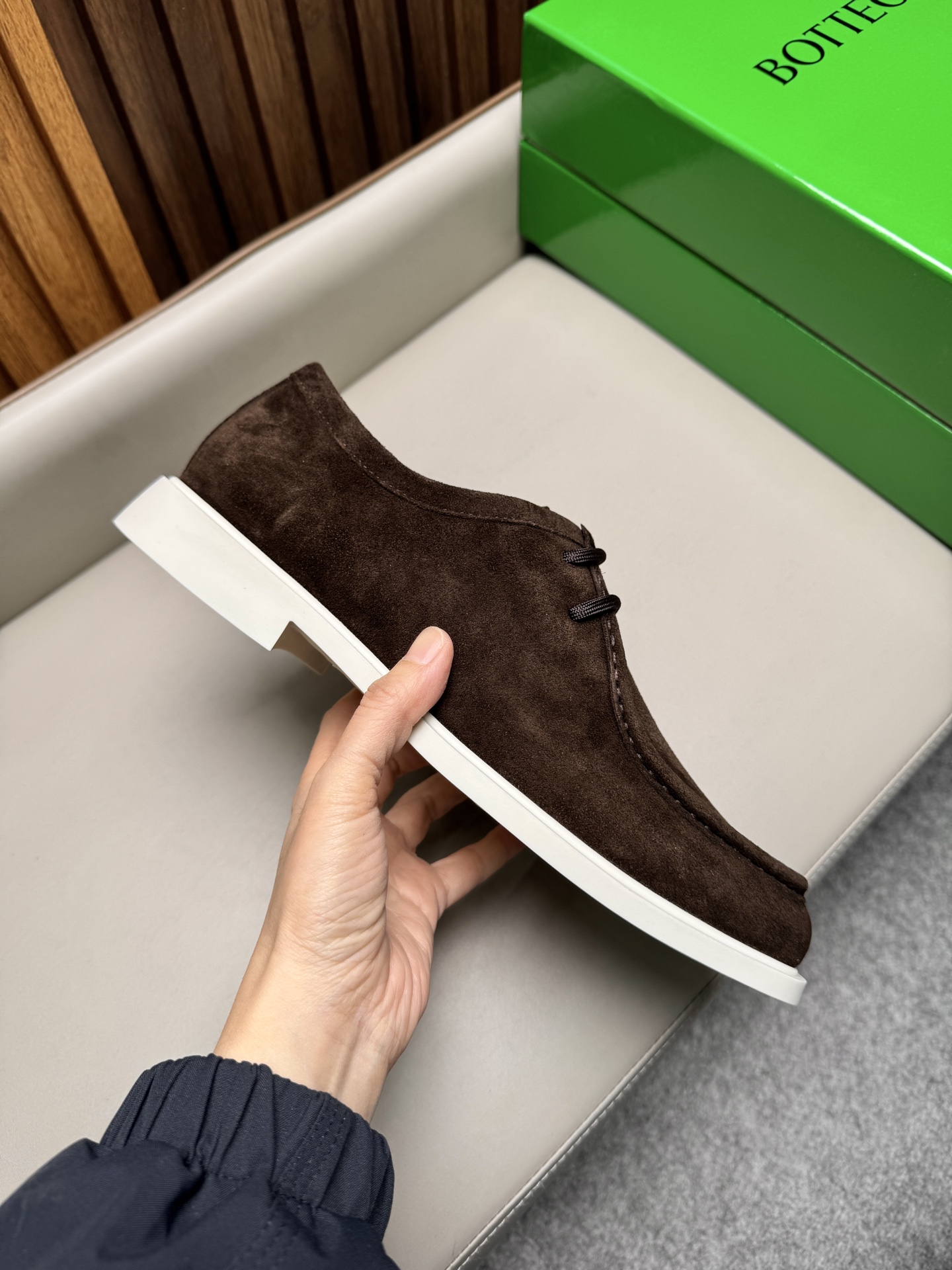 특징: 보테가 특유의 미니멀하고 고급스러운 무드, 뛰어난 내구성과 편안한 착화감