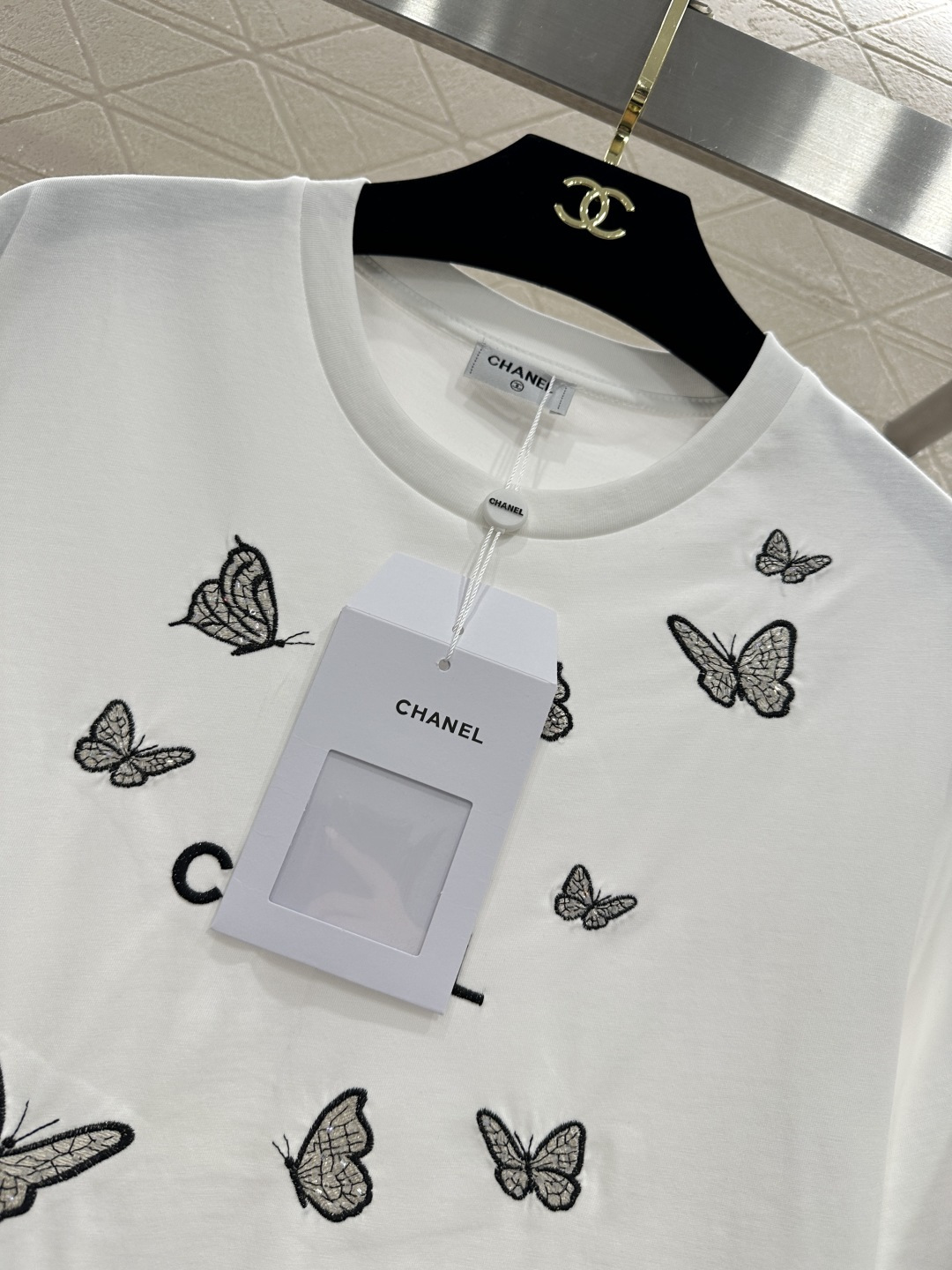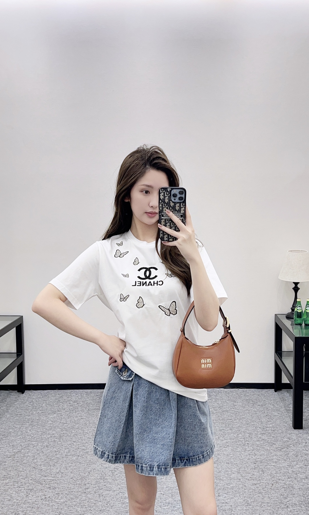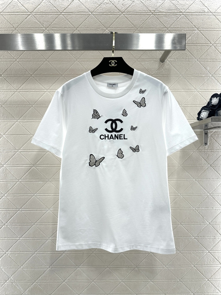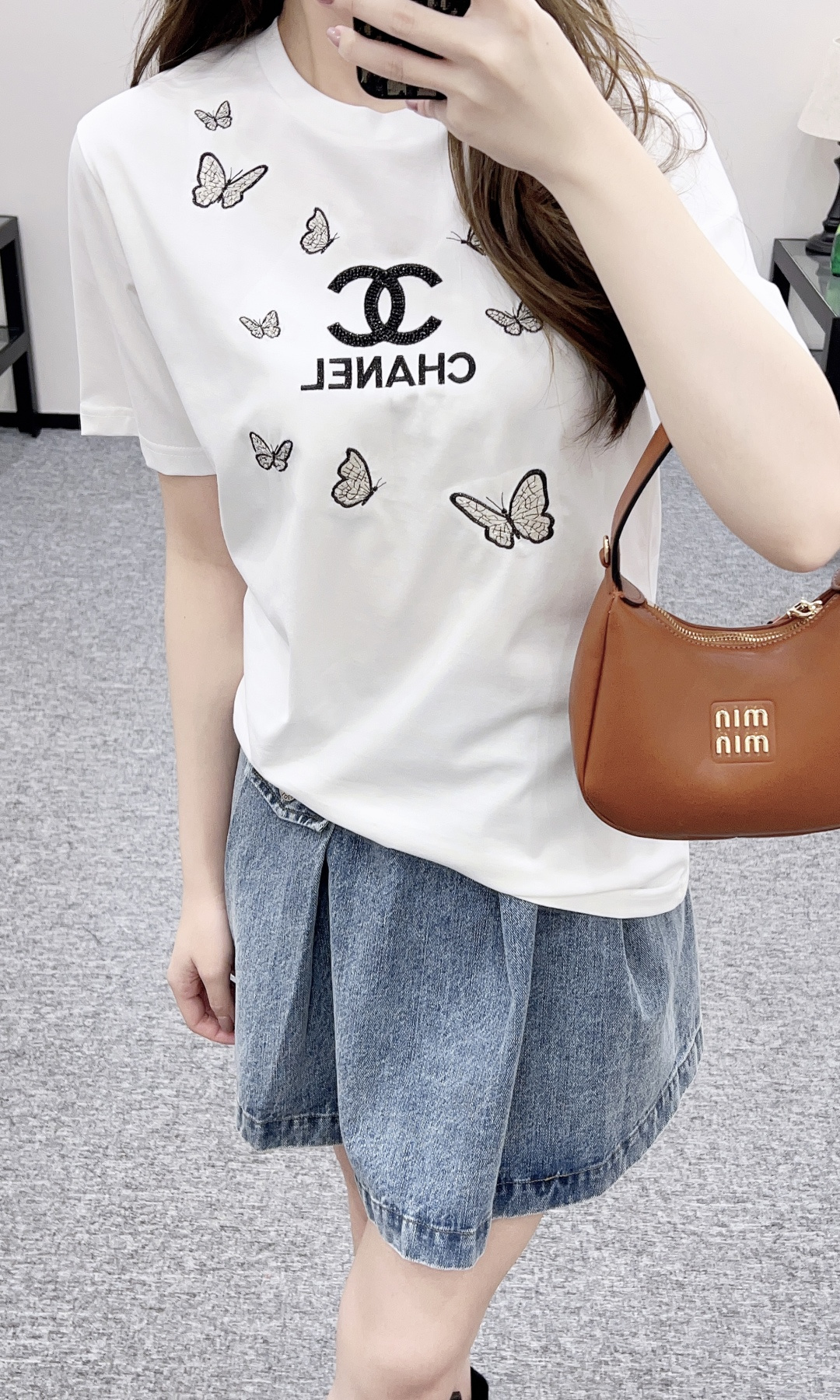 샤넬(Chanel) 나비 핫픽스 & 자수 로고 반팔 티셔츠 의류