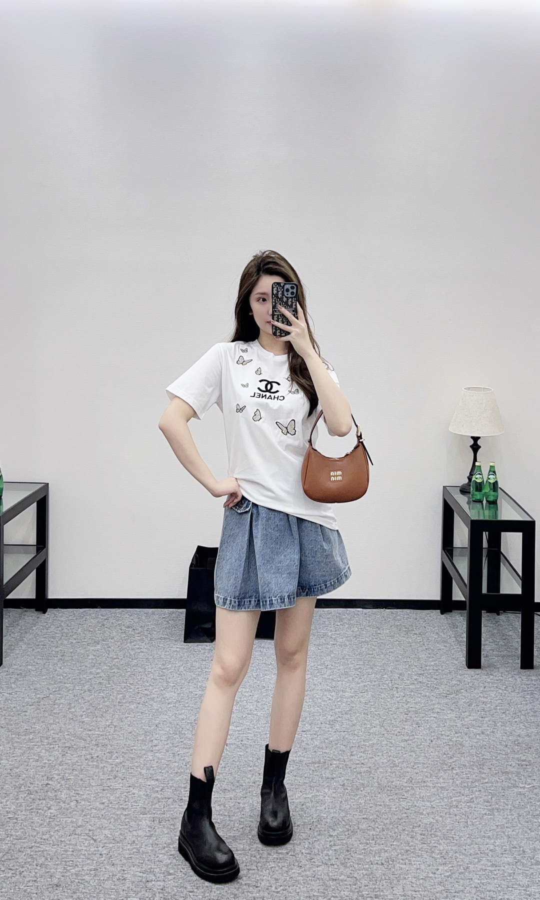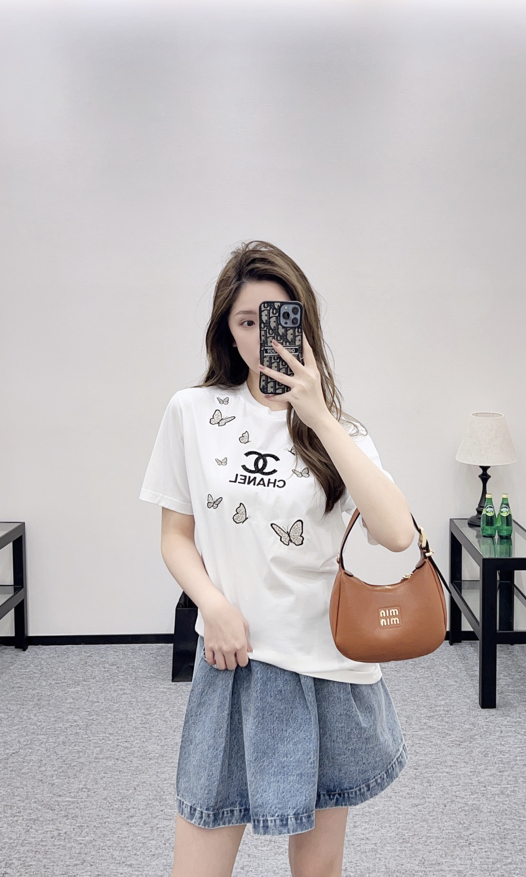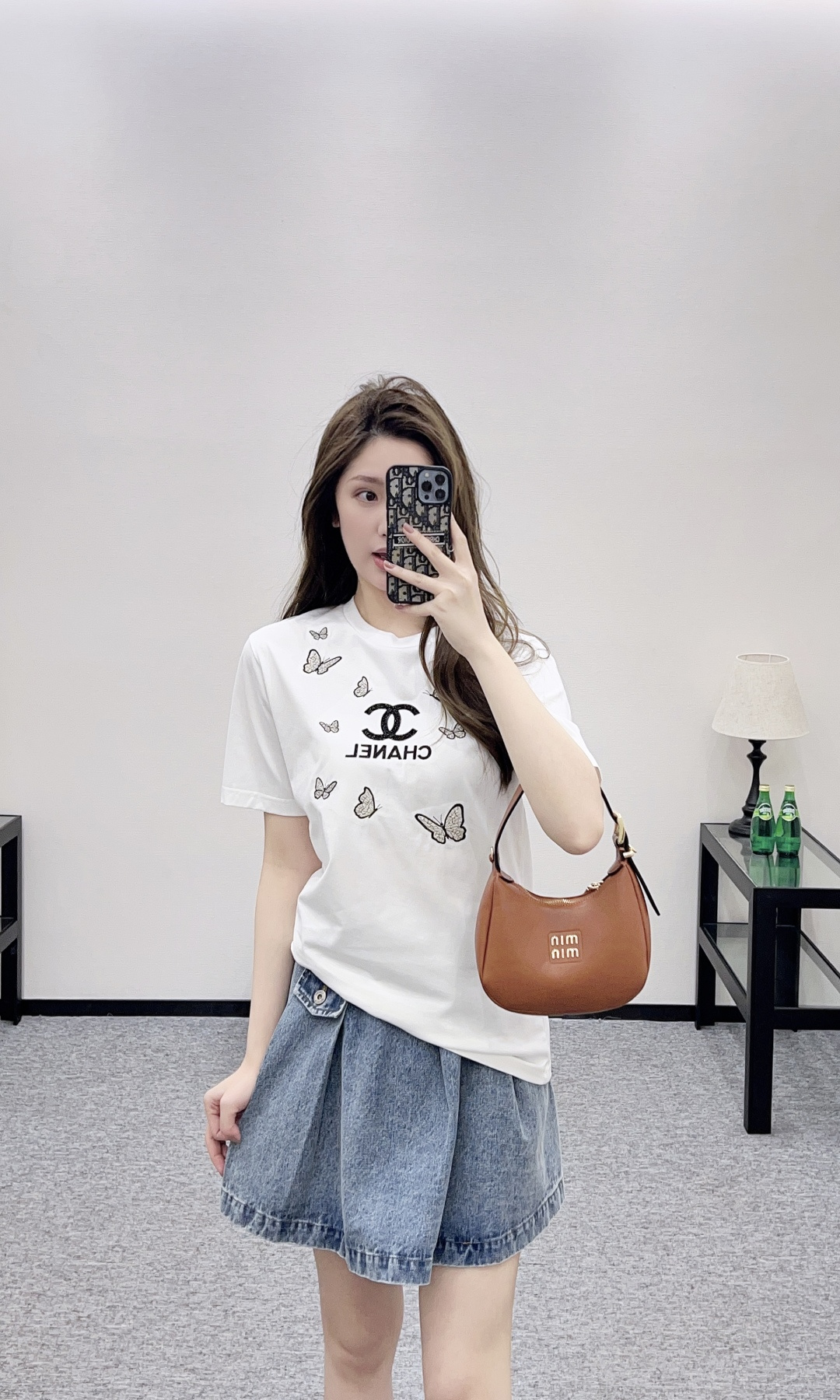 샤넬(Chanel) 나비 핫픽스 & 자수 로고 반팔 티셔츠 의류