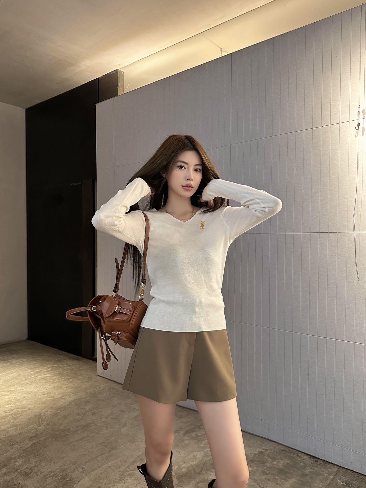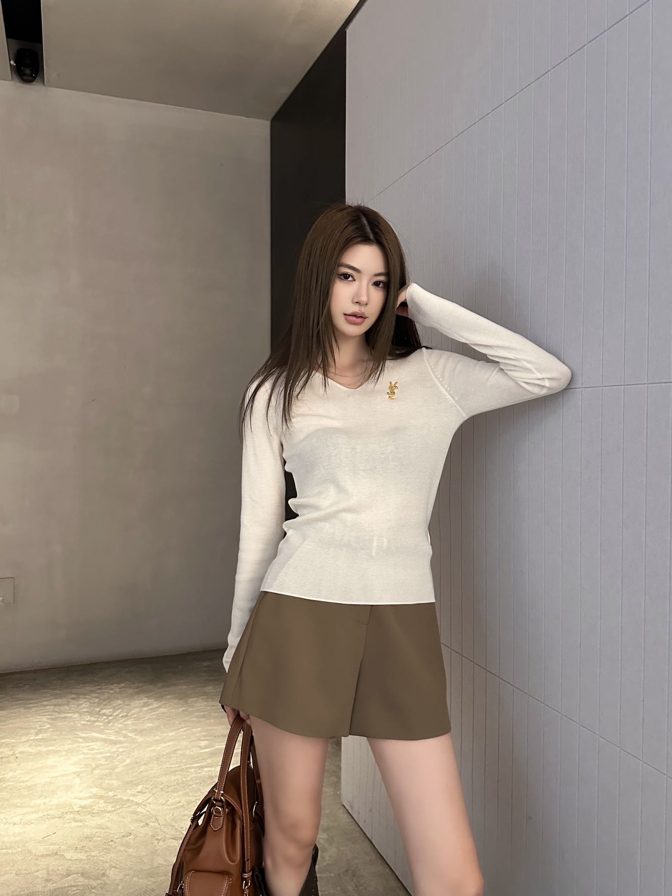 브랜드 아이덴티티: 가슴 부분의 정교한 YSL 자수 로고 포인트