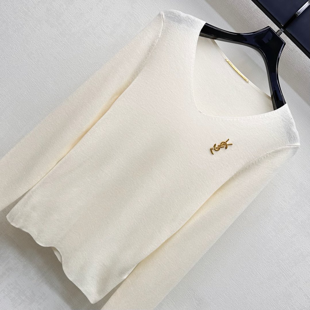생로랑(Saint Laurent) YSL 슬림핏 V넥 로고 로고 니트 의류