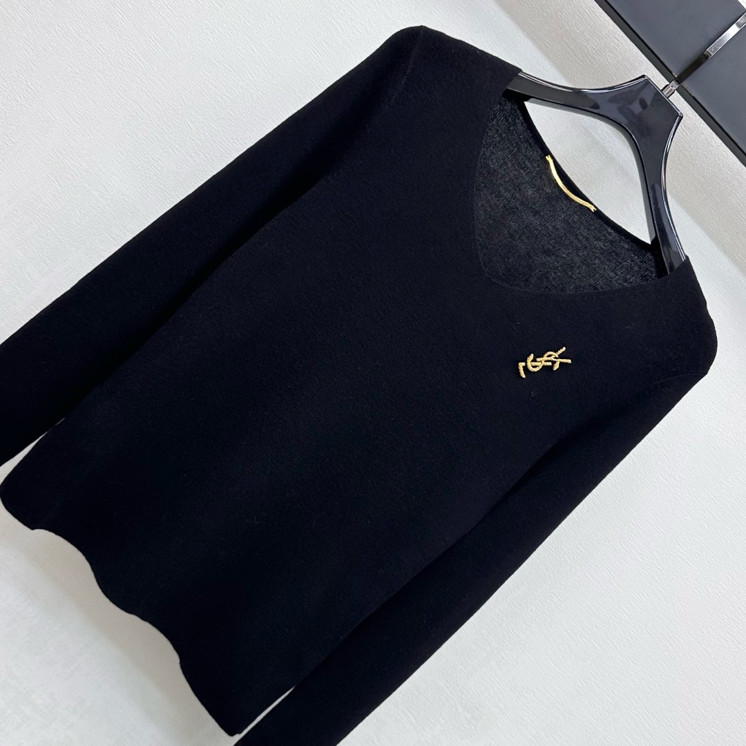 생로랑(Saint Laurent) YSL 슬림핏 V넥 로고 로고 니트 의류