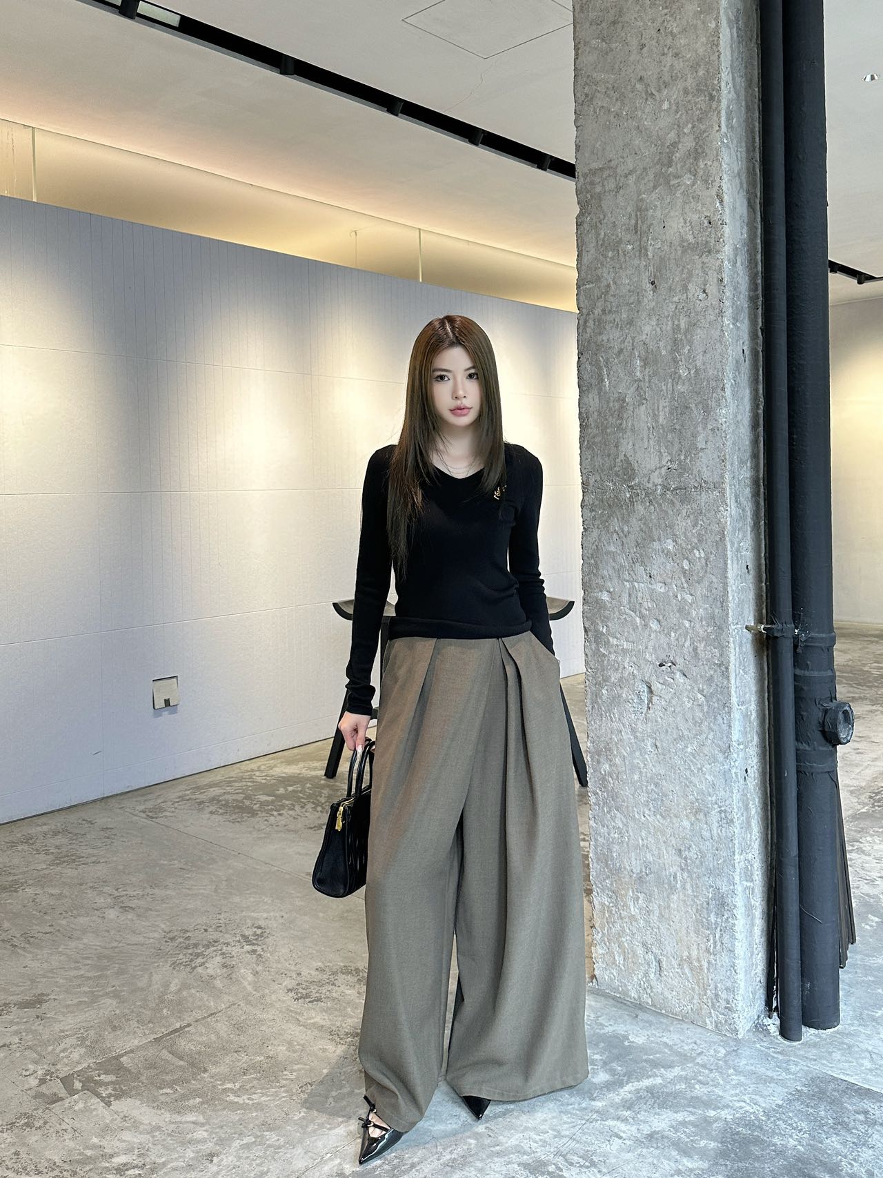 디테일: 목선이 길어 보이는 세련된 V넥 라인과 쫀쫀한 조직감