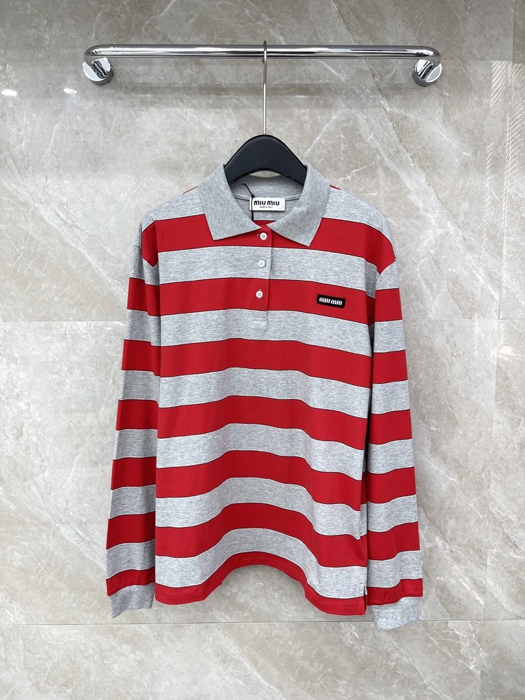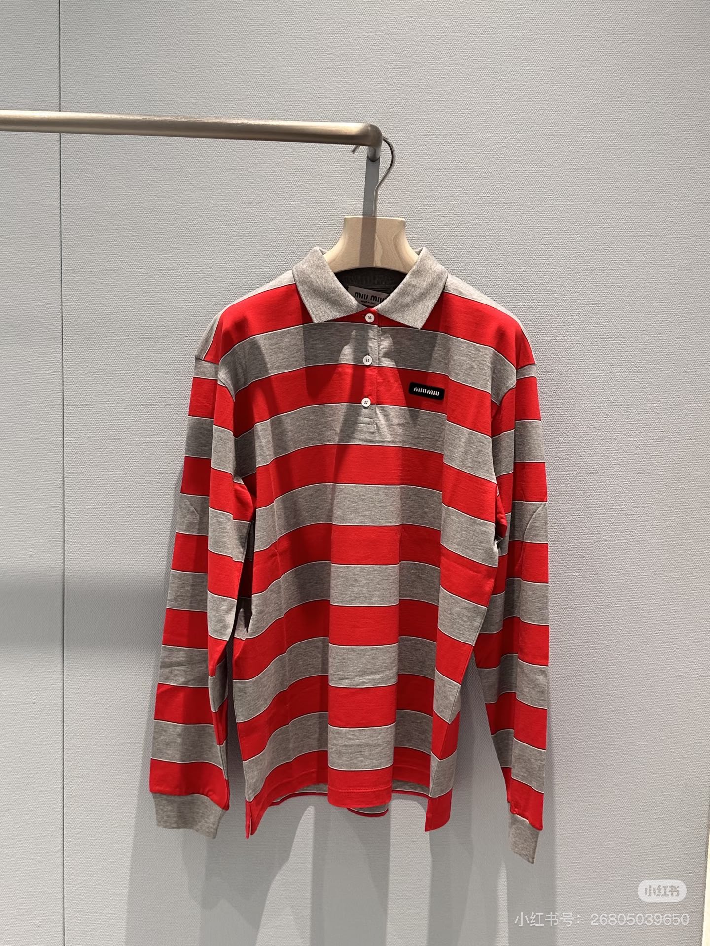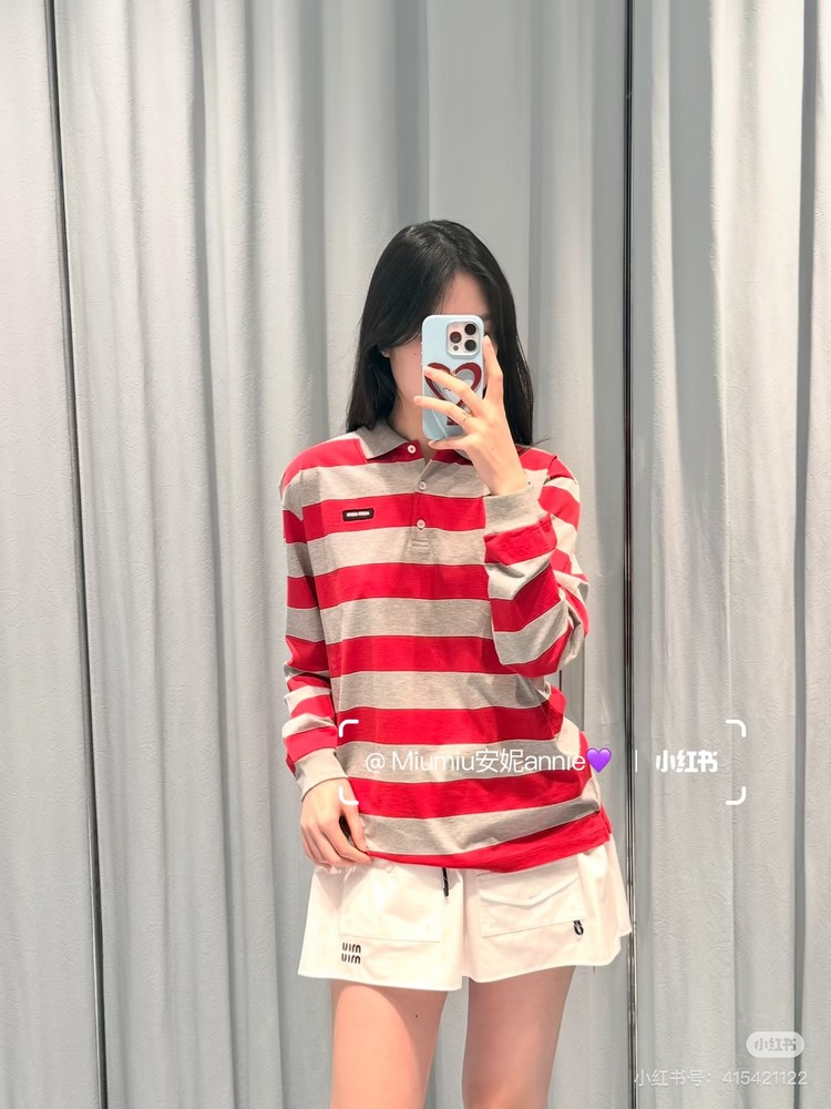 miumiu 미우미우 컨트라스트 로고 패치 스트라이프 긴팔 티셔츠 의류