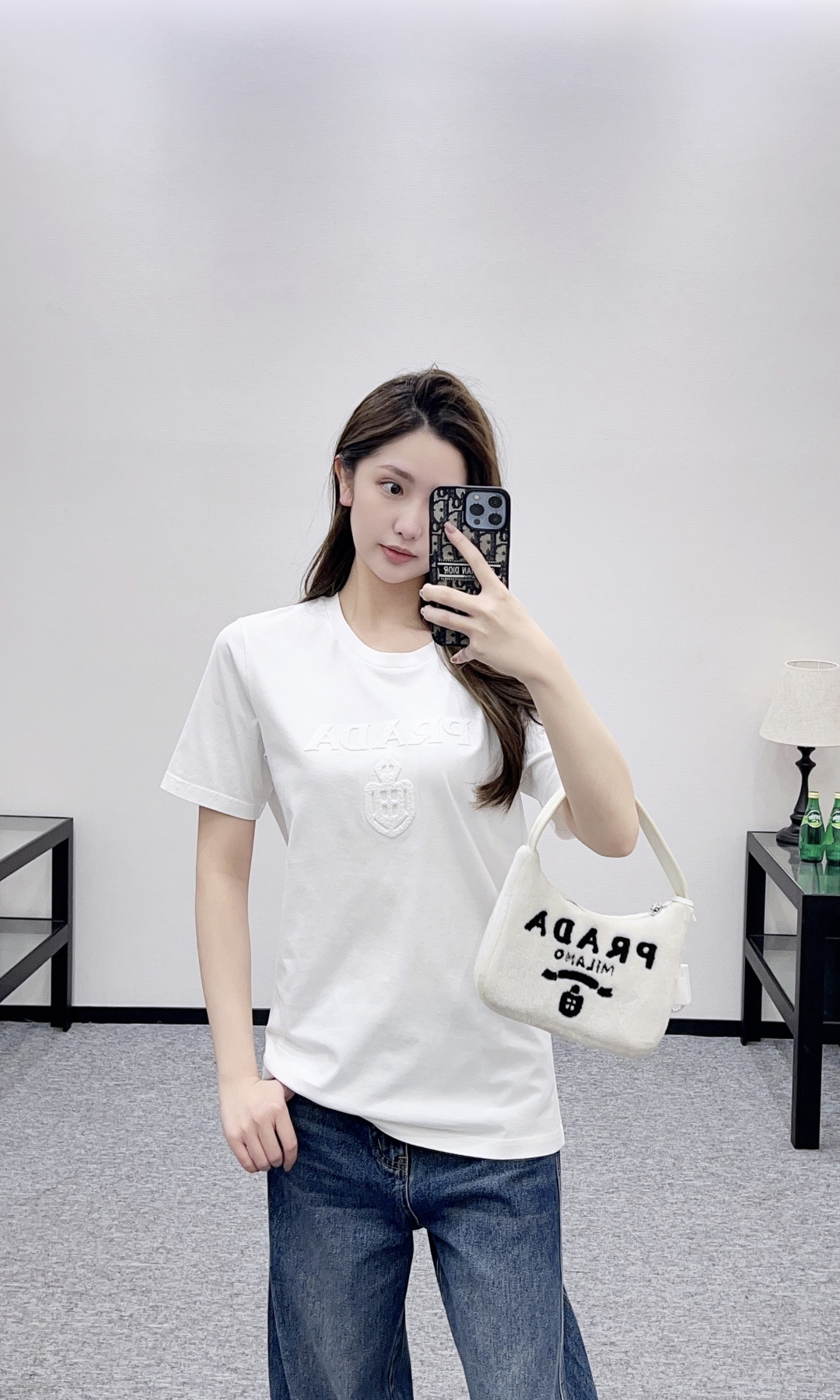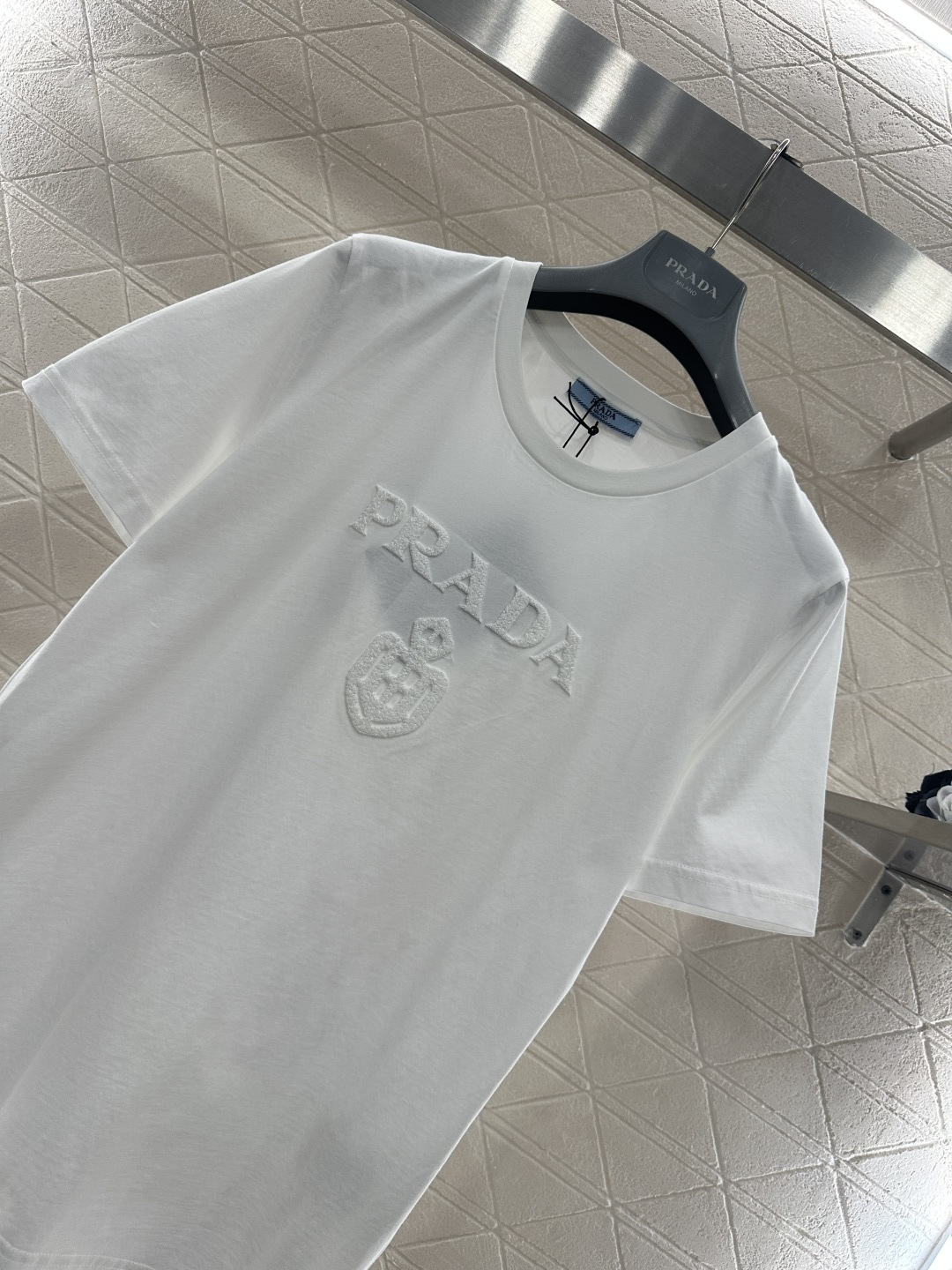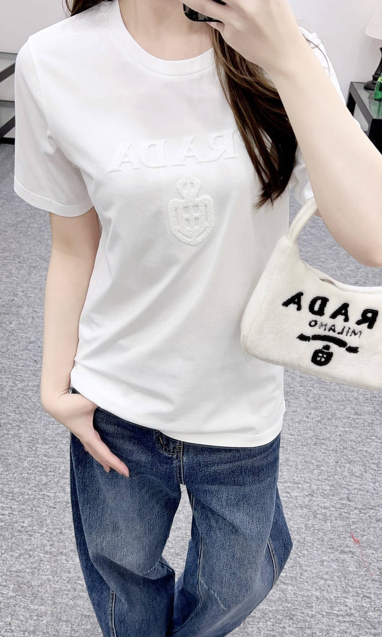 Prada 프라다 골드 레터링 로고 반팔 티셔츠 의류