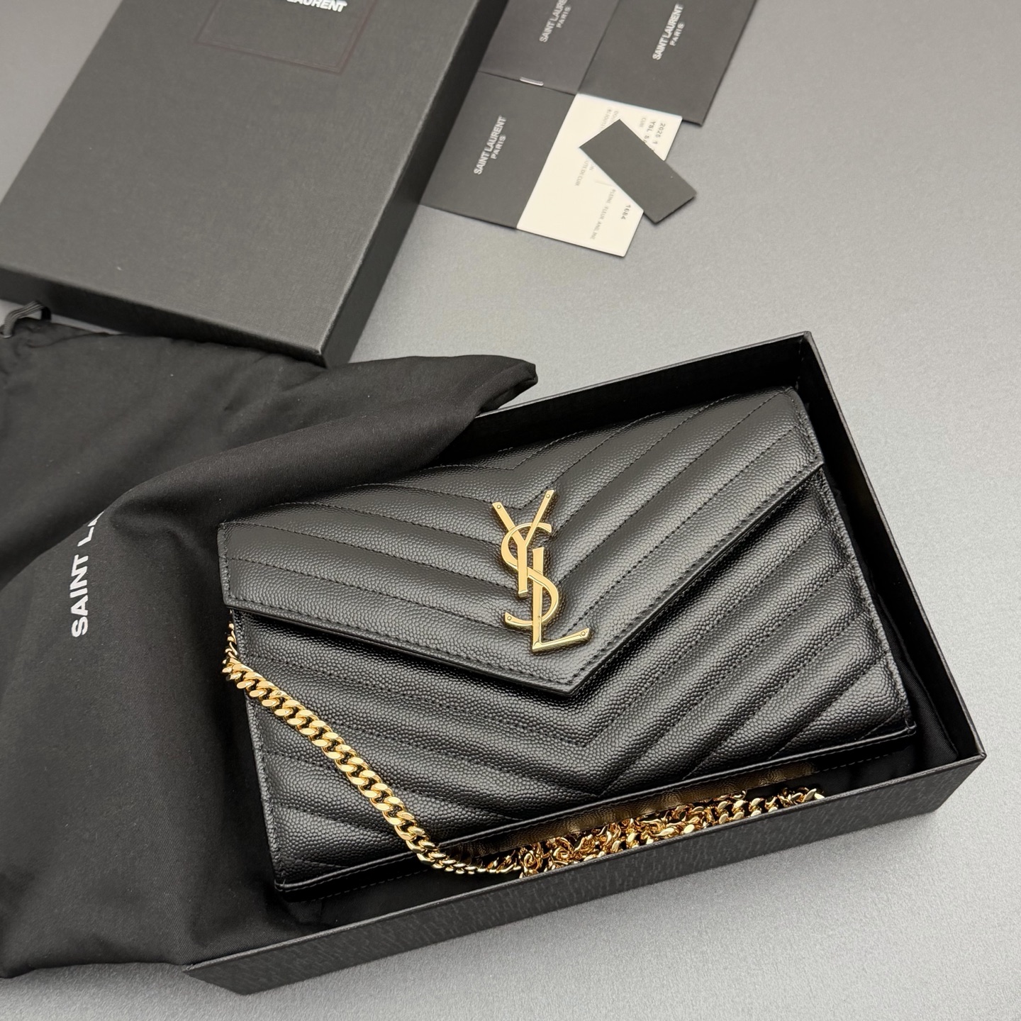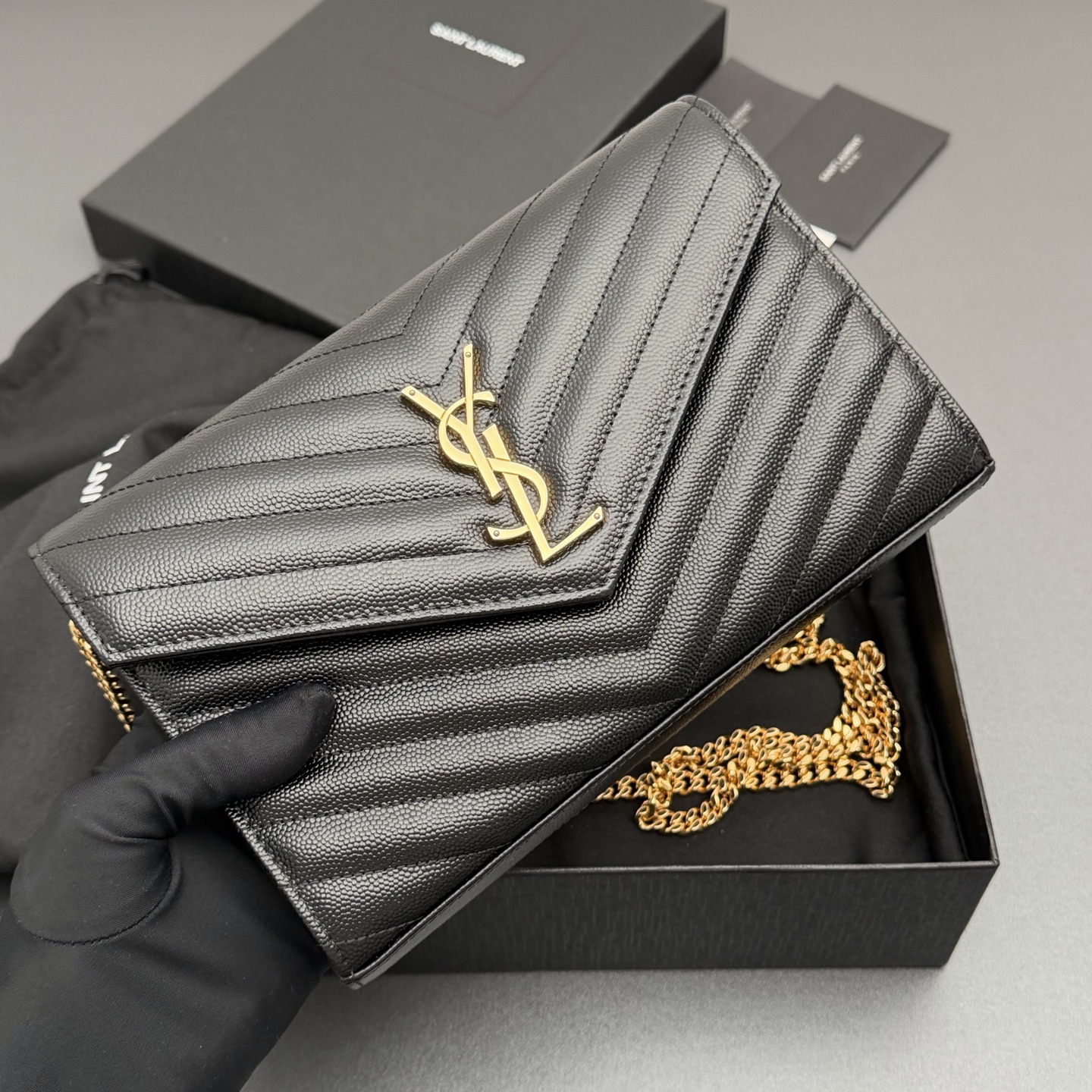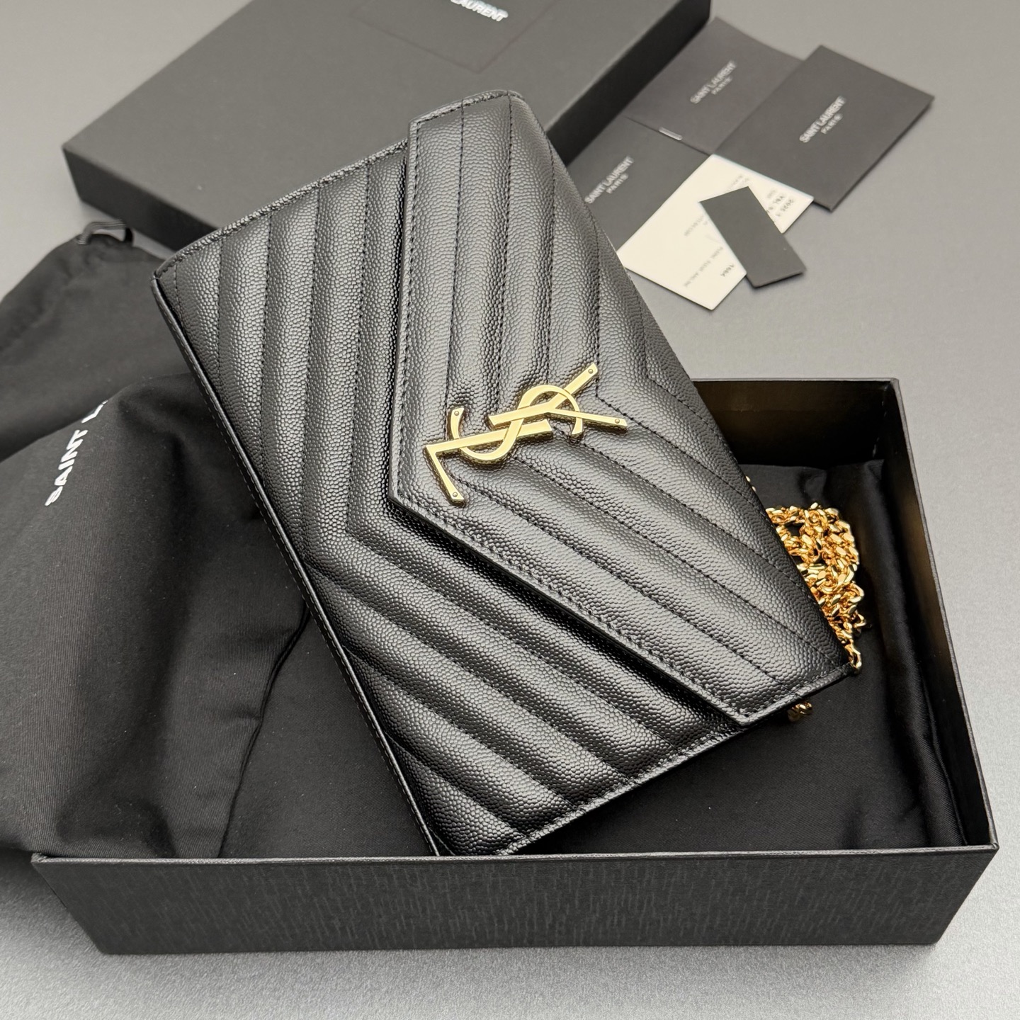 YSL 생로랑 ENVELOPE 체인 월렛 (블랙/금장) 가방