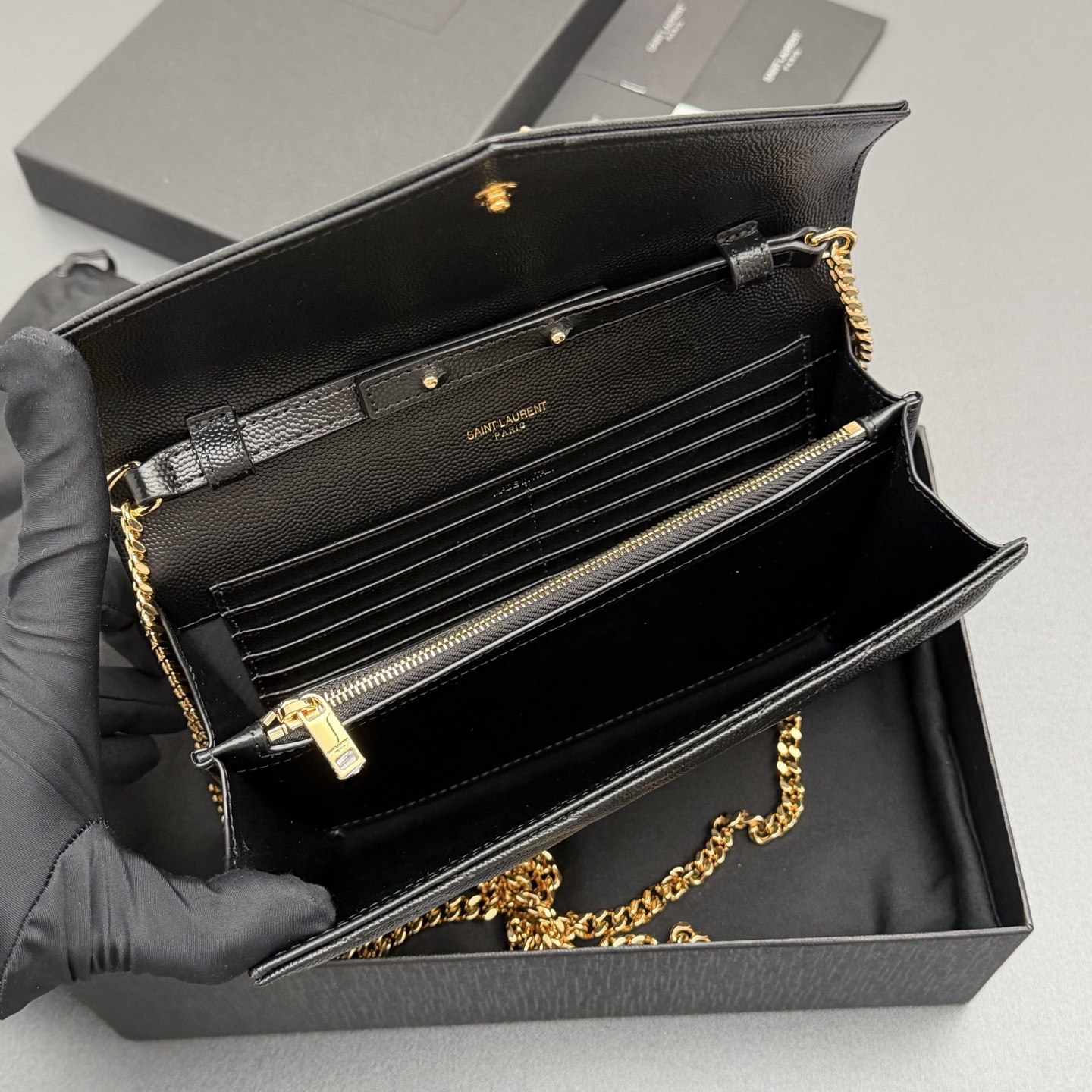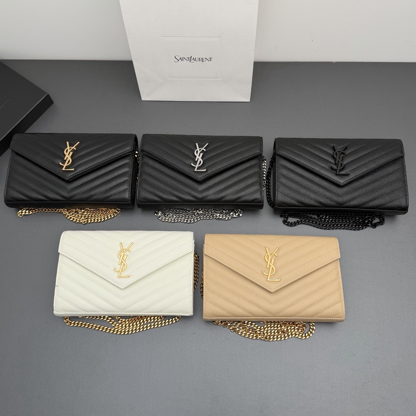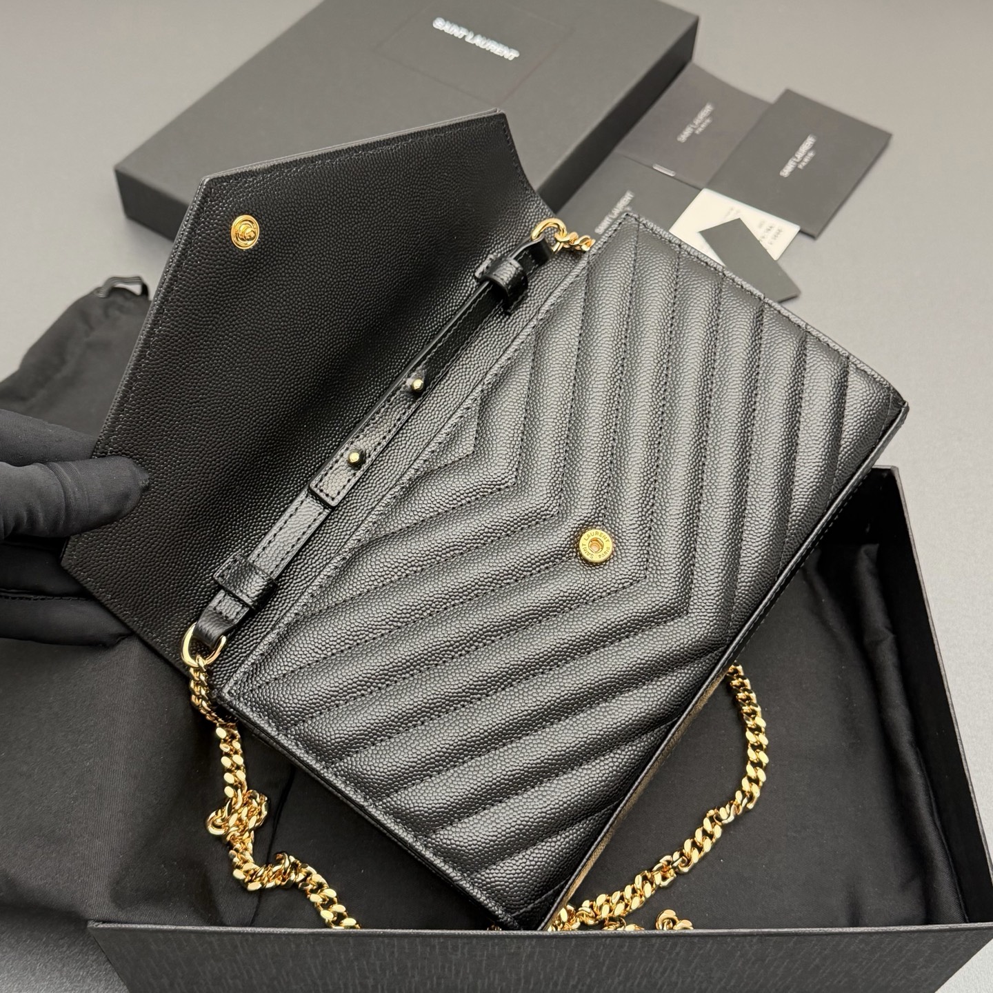 YSL 생로랑 ENVELOPE 체인 월렛 (블랙/금장) 가방