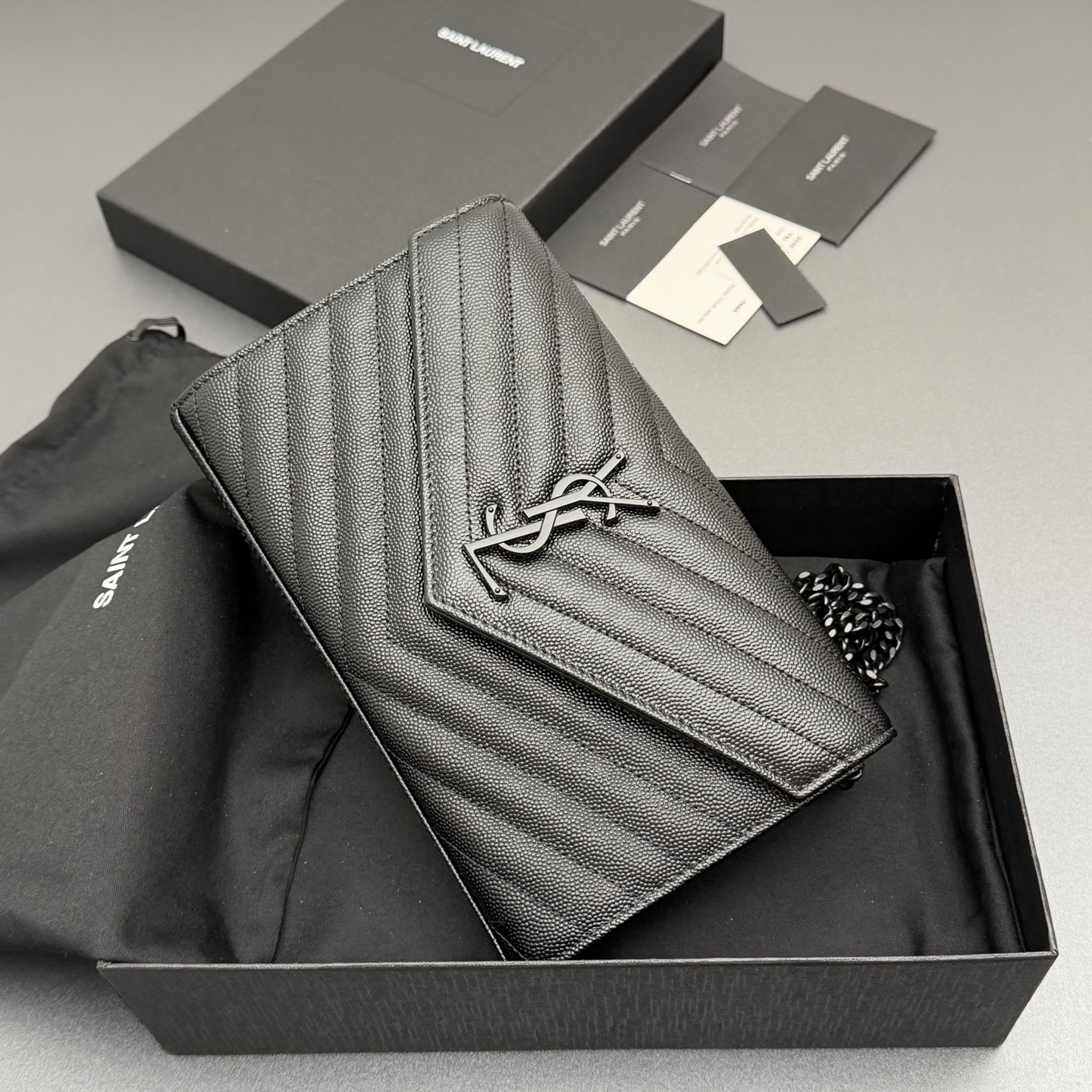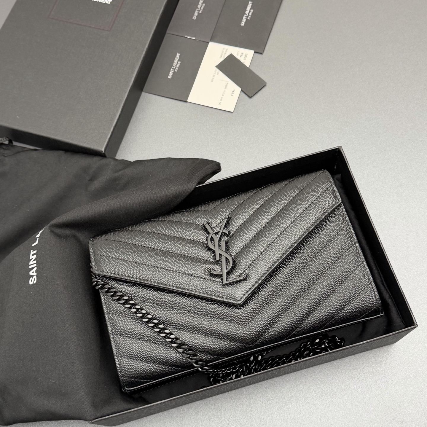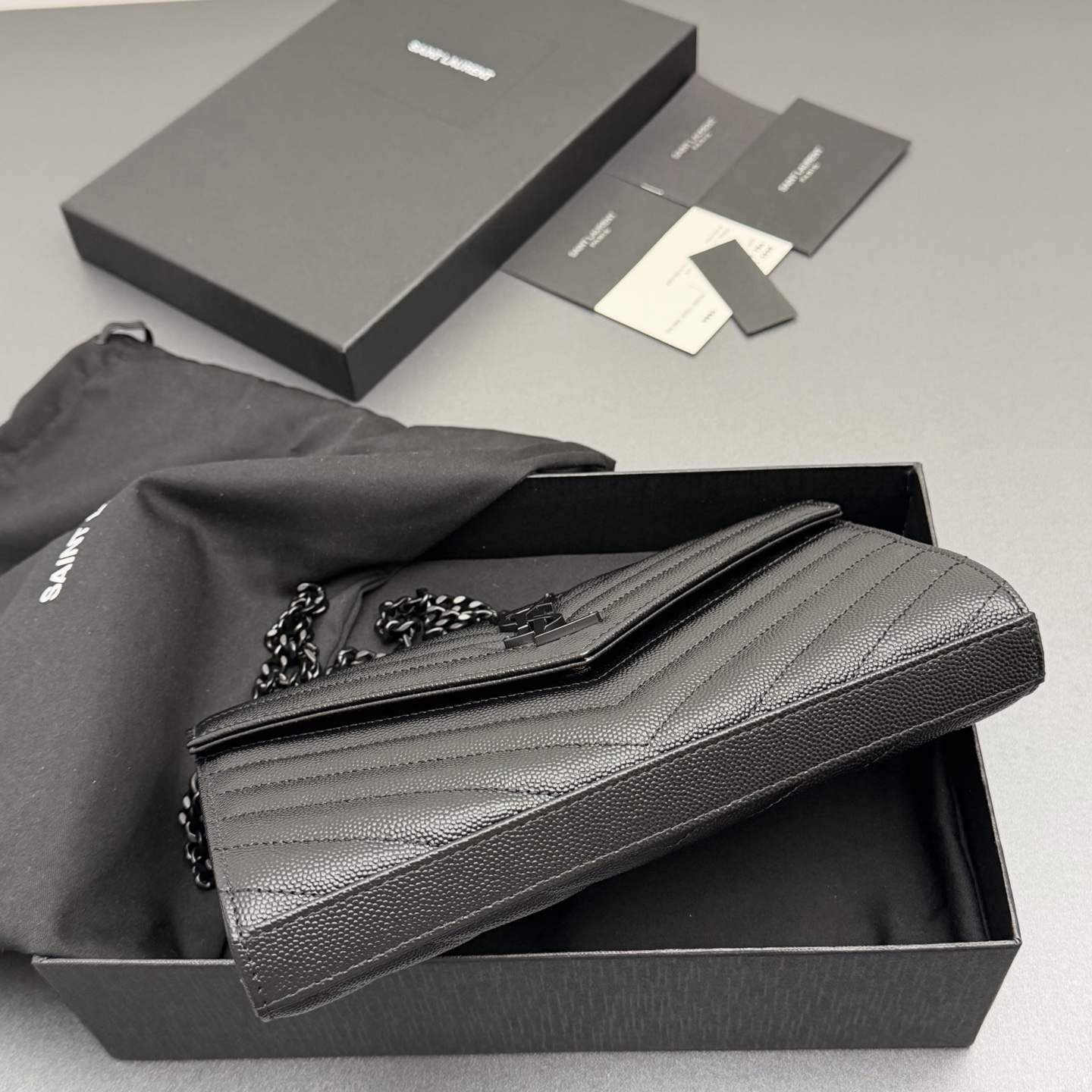 YSL 생로랑 ENVELOPE 체인 월렛 (올 블랙/블랙 로고) 가방