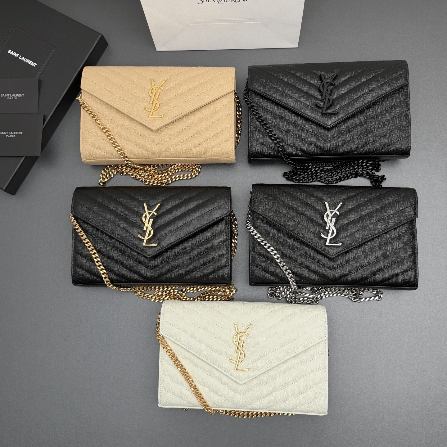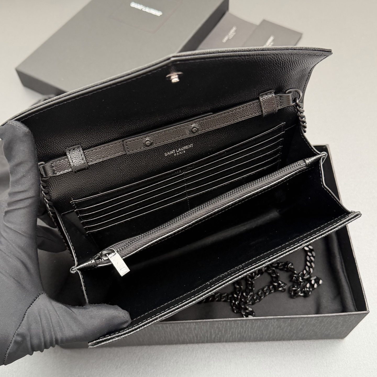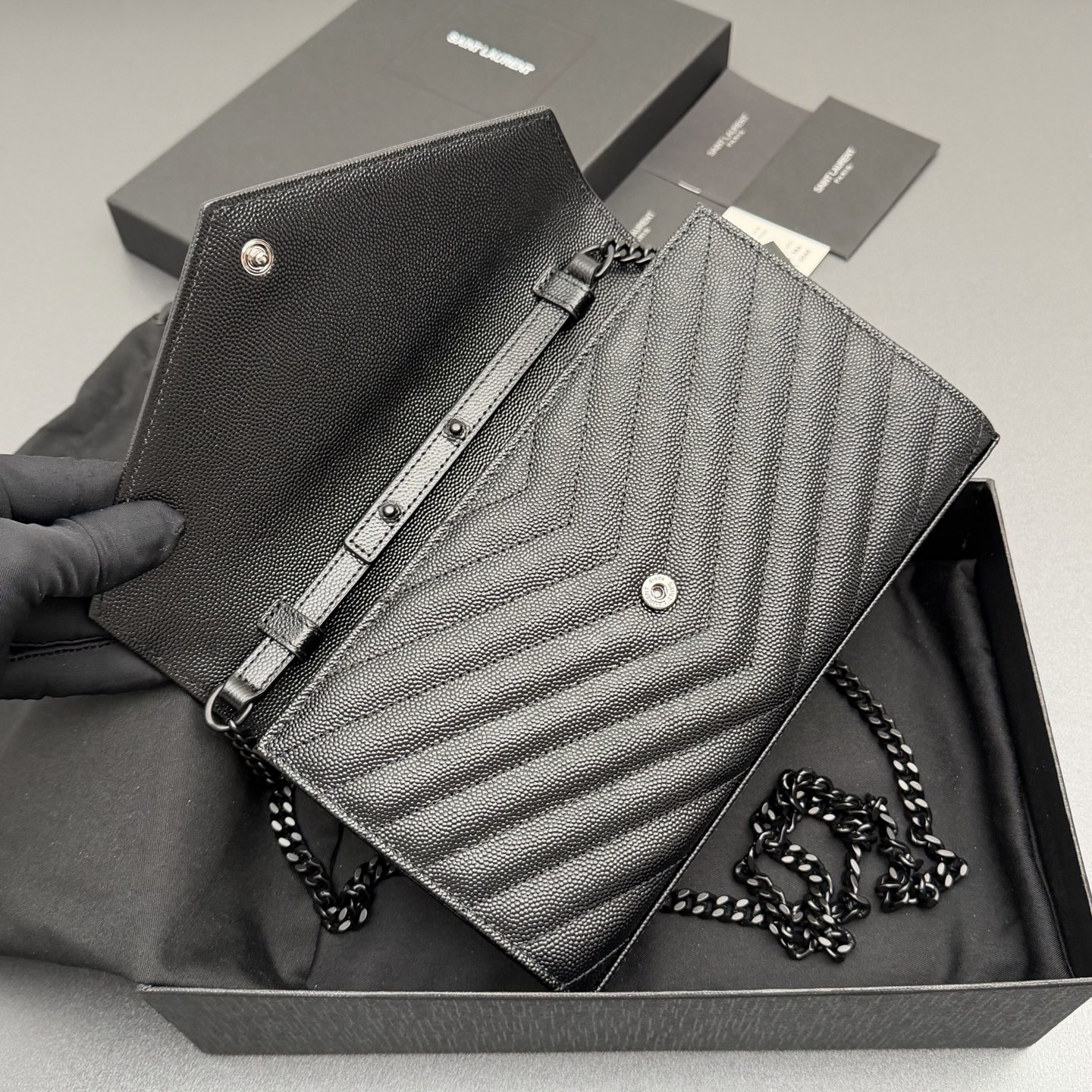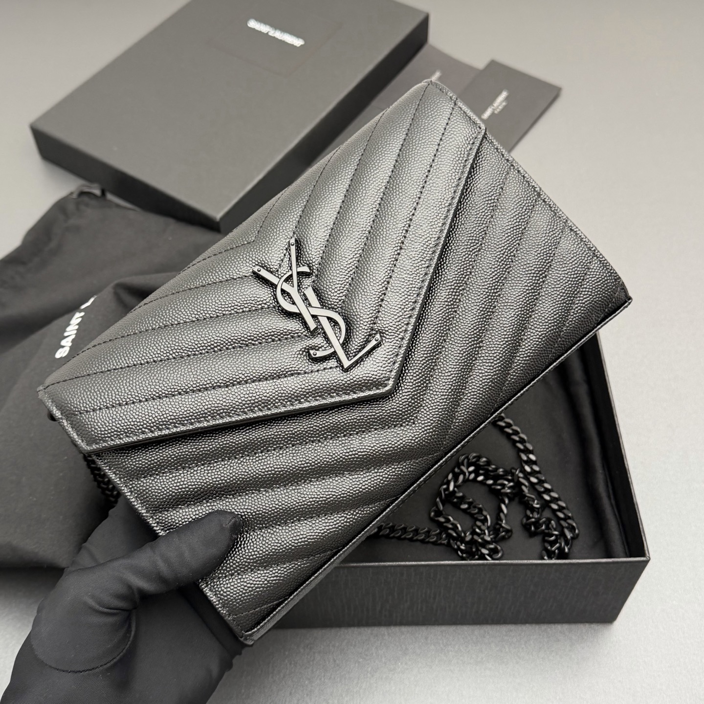 YSL 생로랑 ENVELOPE 체인 월렛 (올 블랙/블랙 로고) 가방