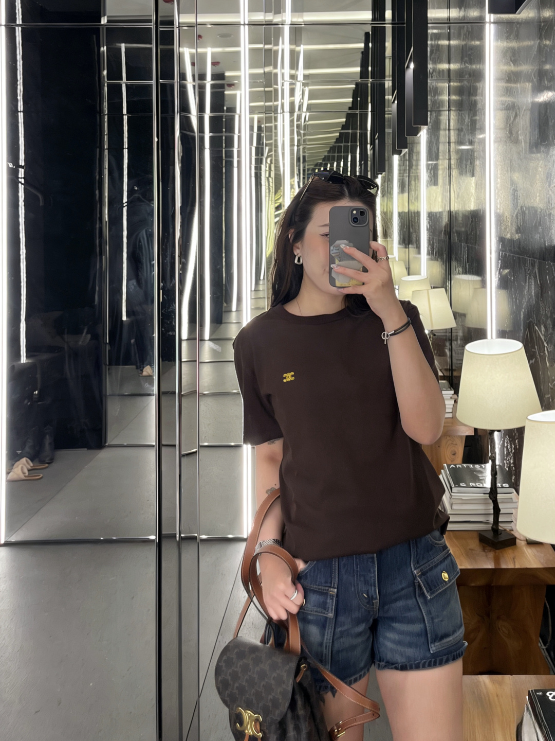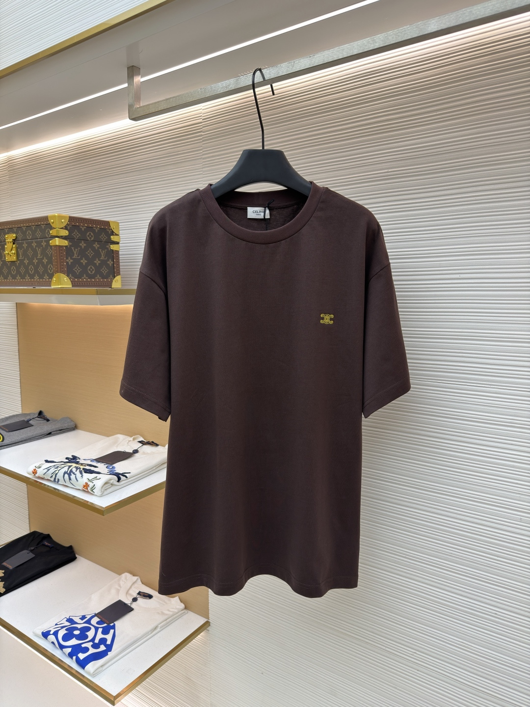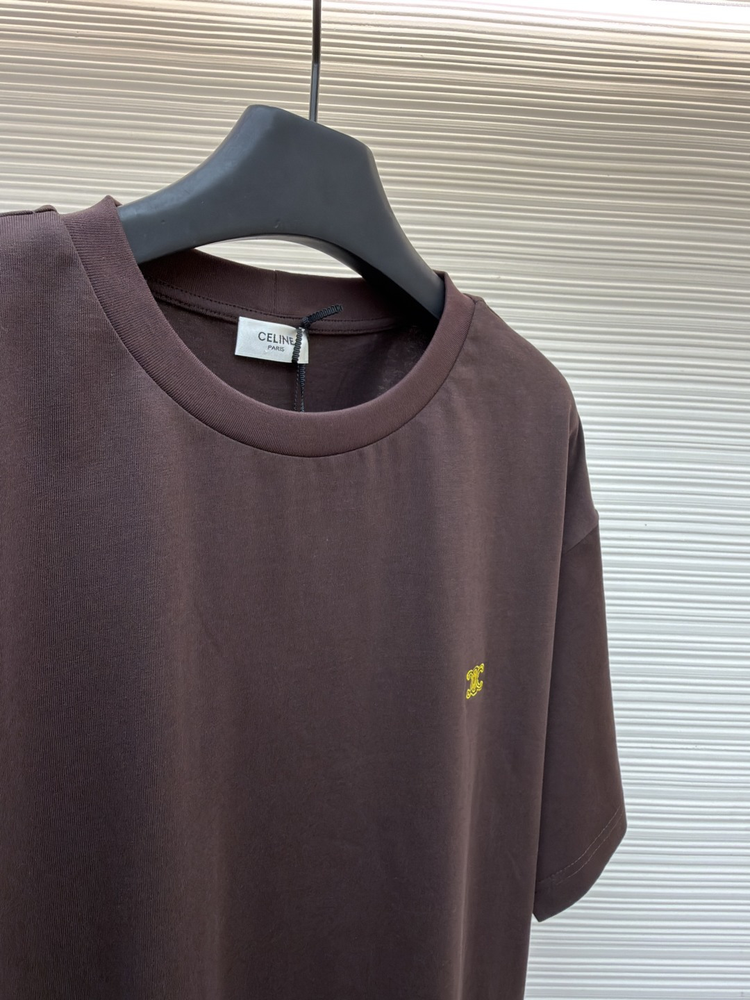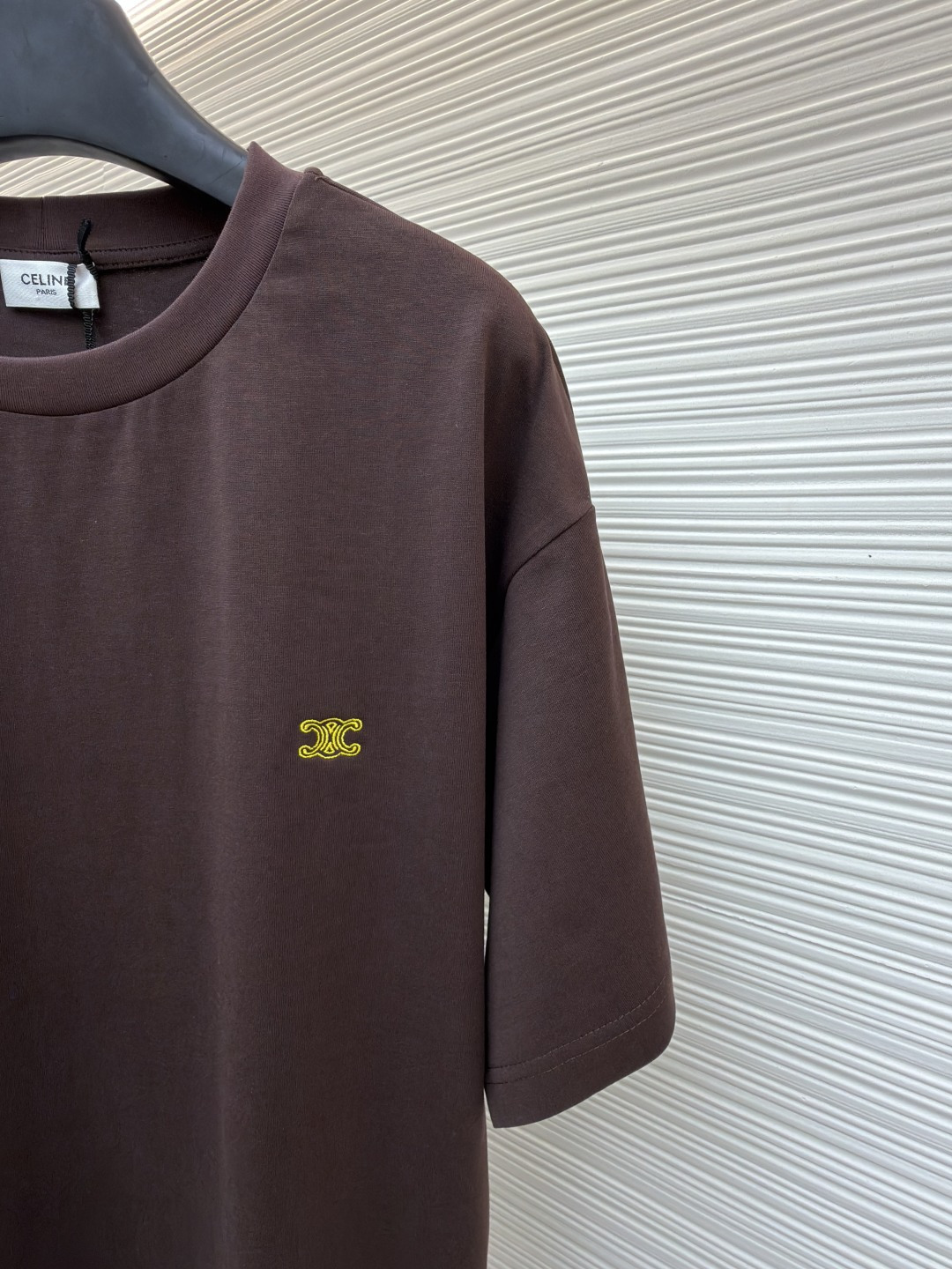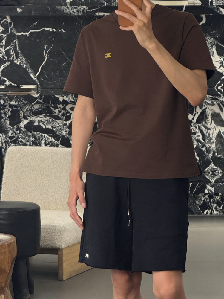 "트리옹프 자수 디테일로 완성한 셀린느의 클래식 반팔 티셔츠"