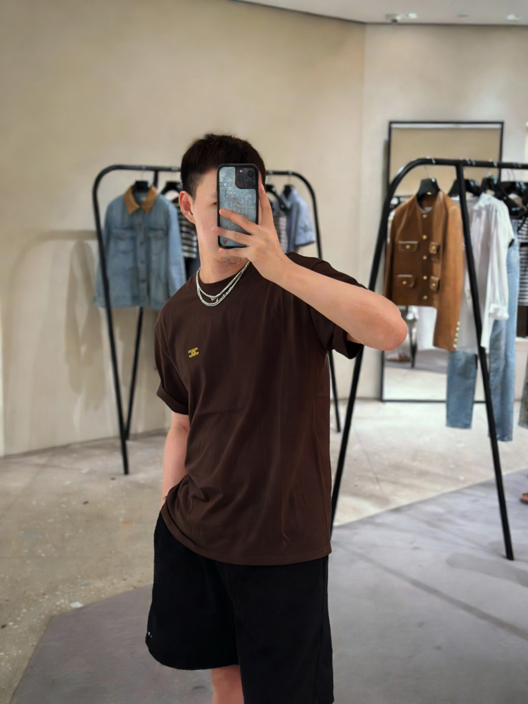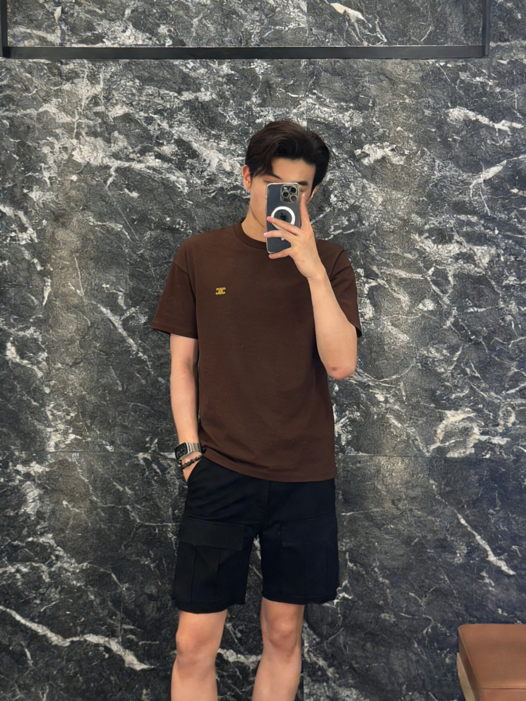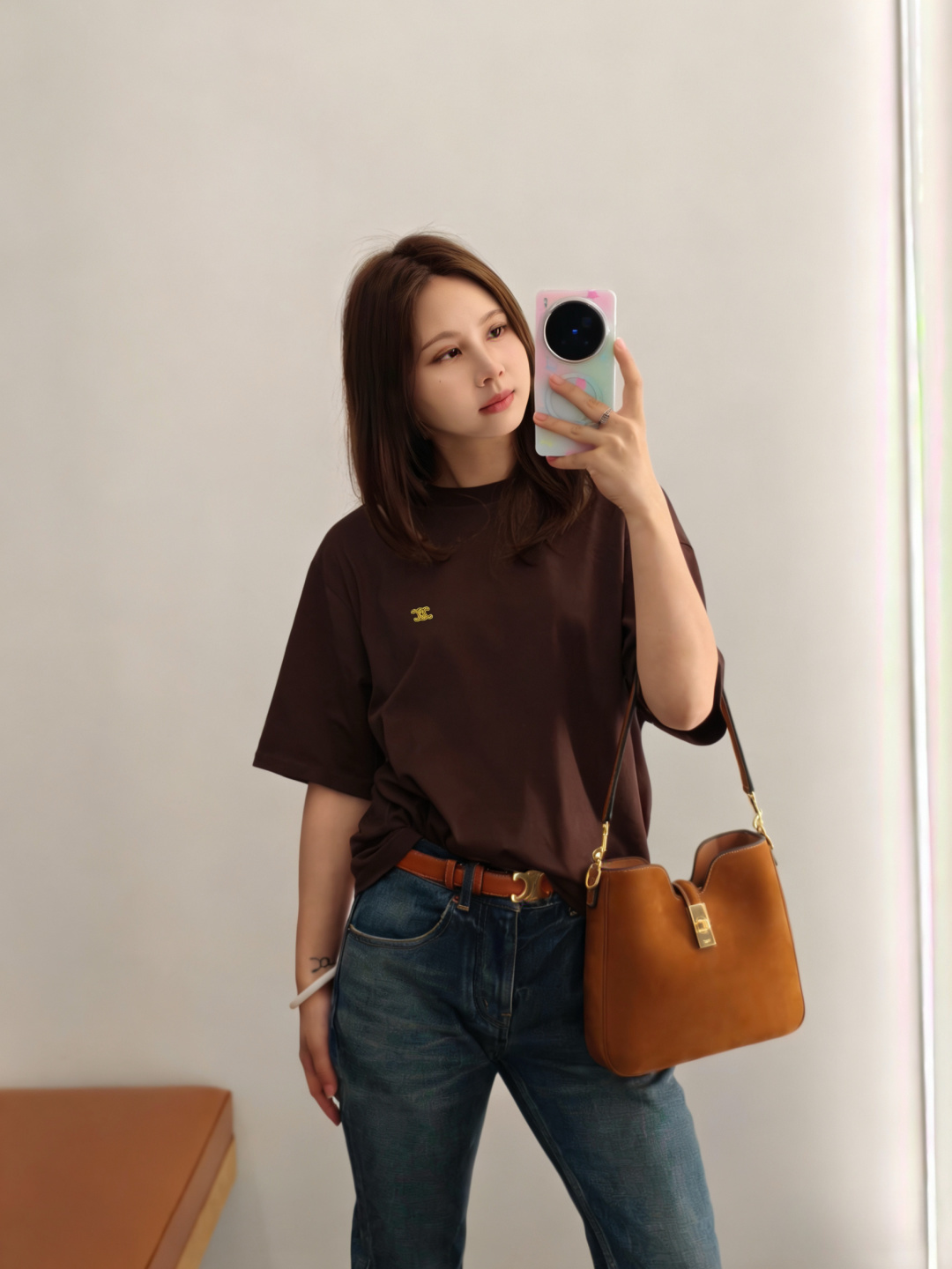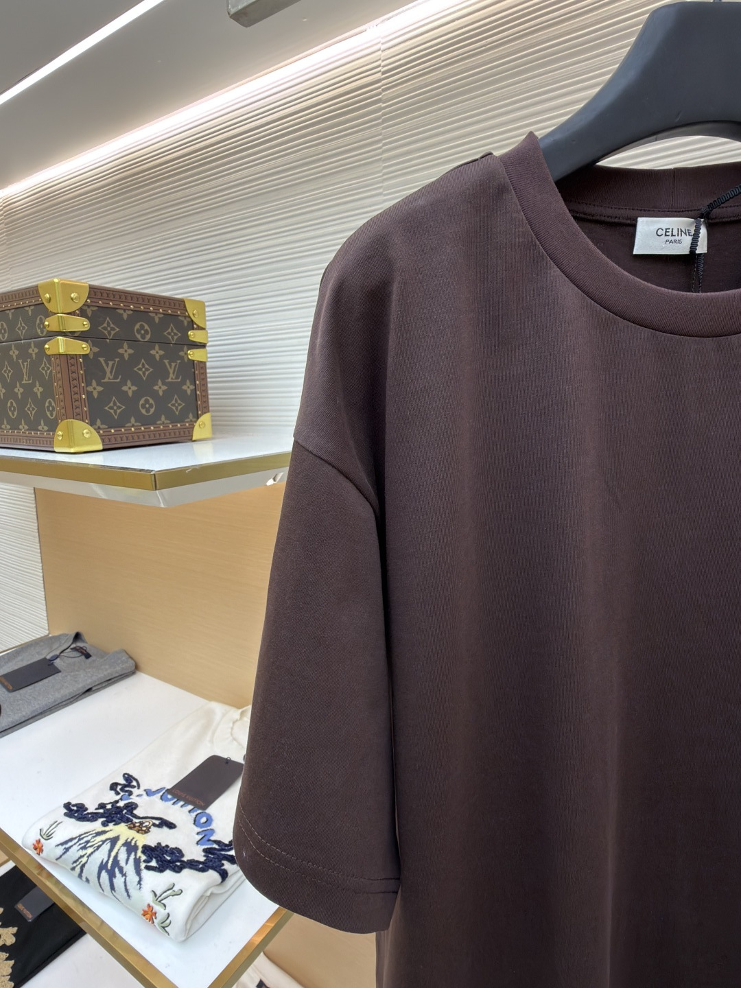 디테일: 전면에는 셀린느 시그니처 트리옹프 로고를 자수 공정으로 적용해 깔끔하고 정제된 브랜드 아이덴티티를 표현함.