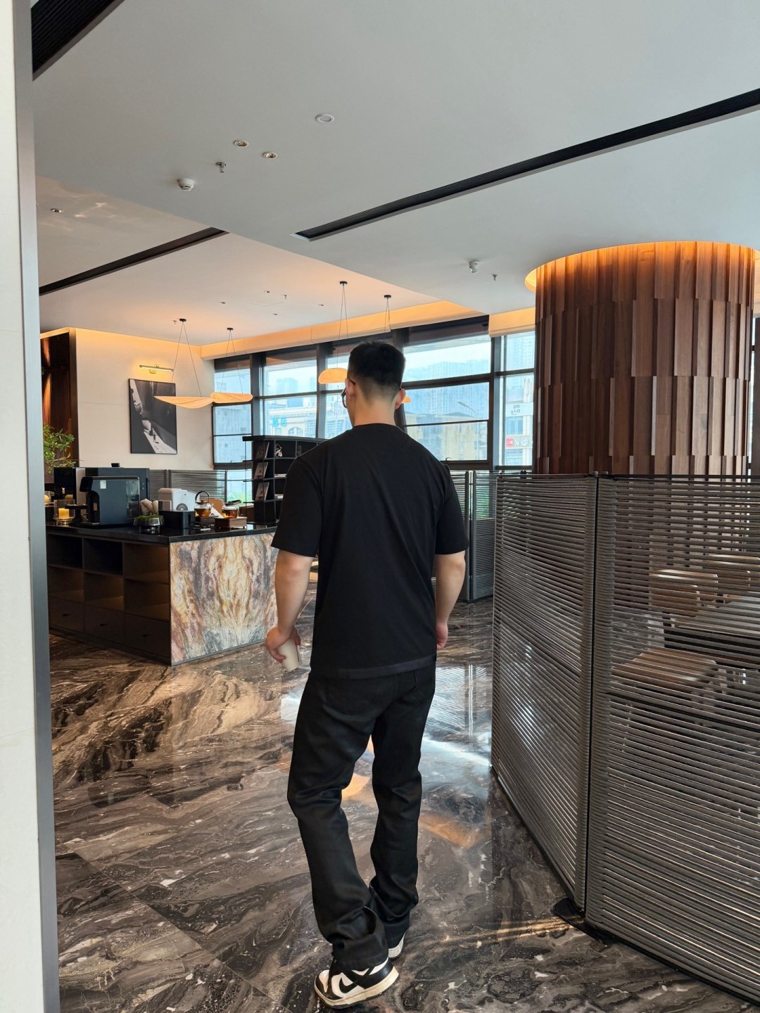 핏: 바디 라인을 깔끔하게 살려주는 합신 핏으로 단정하면서도 세련된 인상을 연출함.