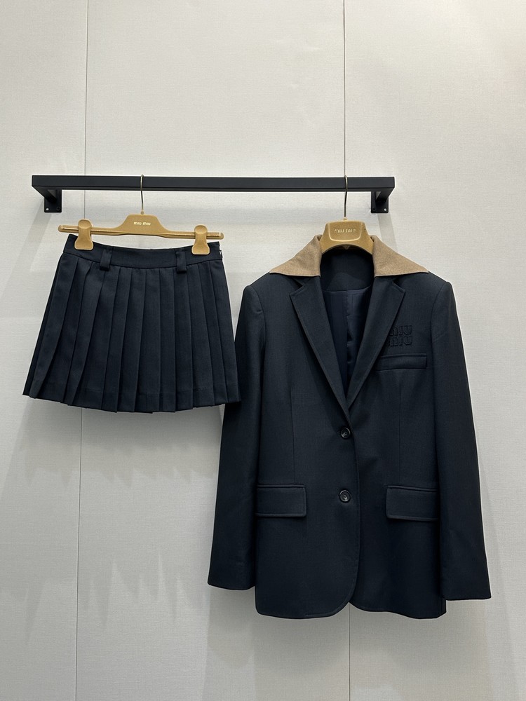 miumiu 미우미우 니트 레이어드 테일러드 자켓 재킷 + 스커트 셋업 세트 의류