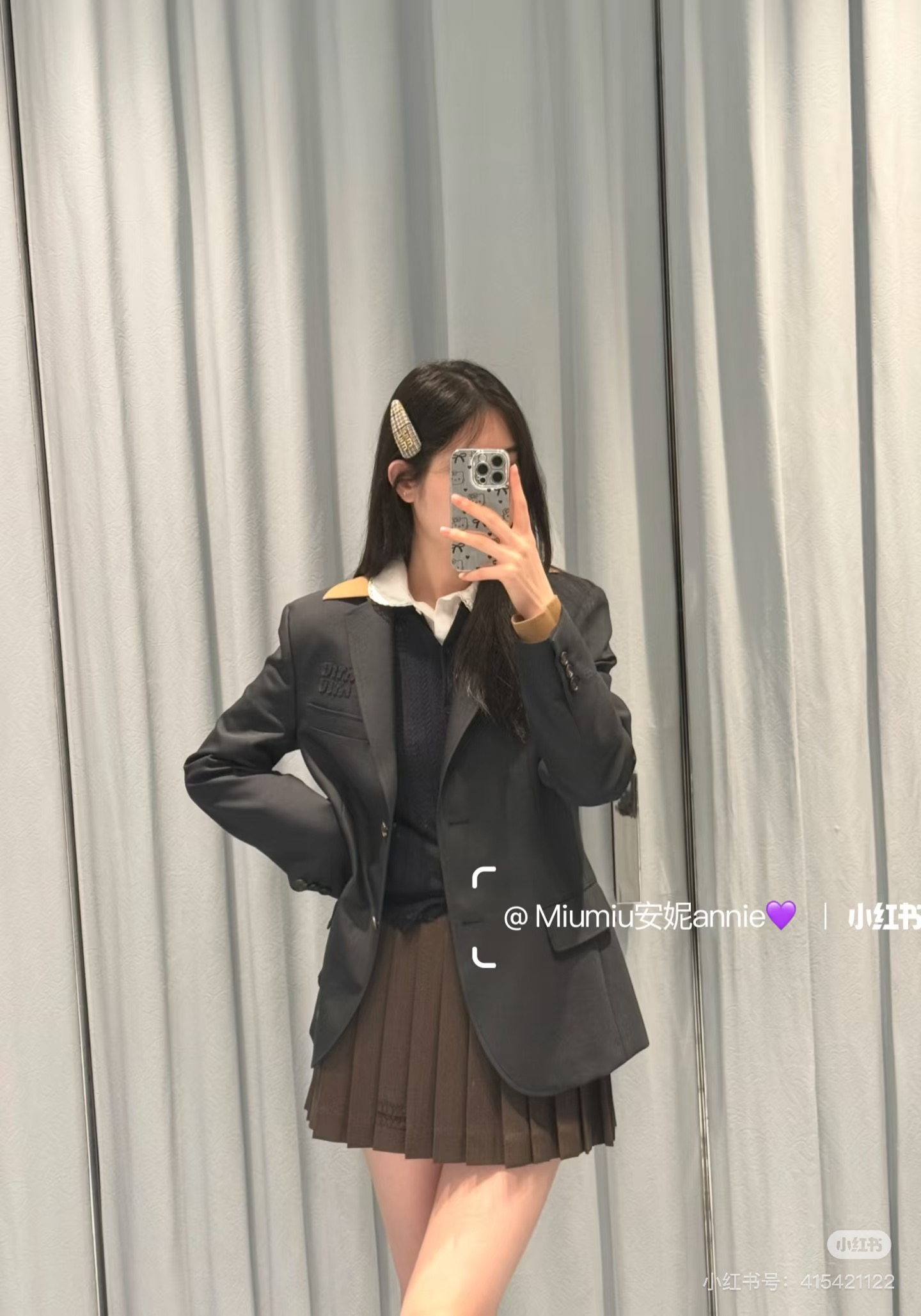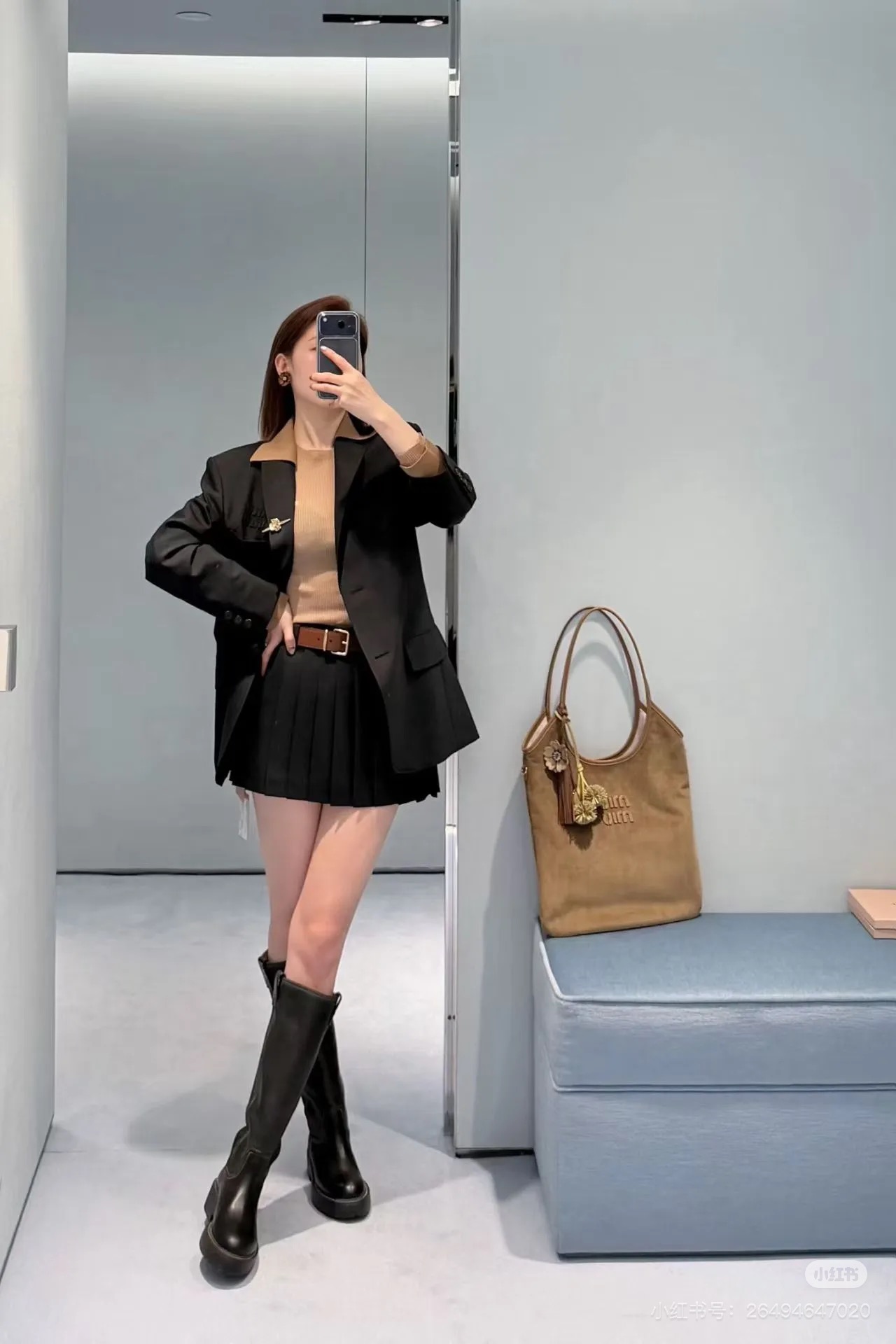 miumiu 미우미우 니트 레이어드 테일러드 자켓 재킷 + 스커트 셋업 세트 의류SALE