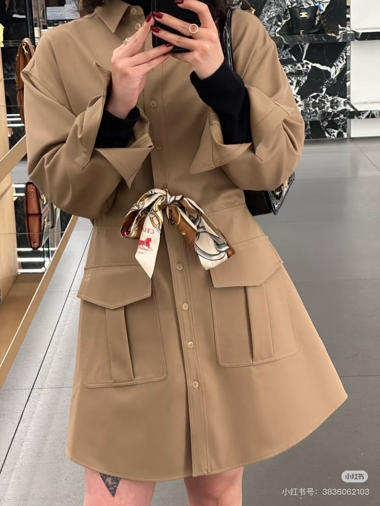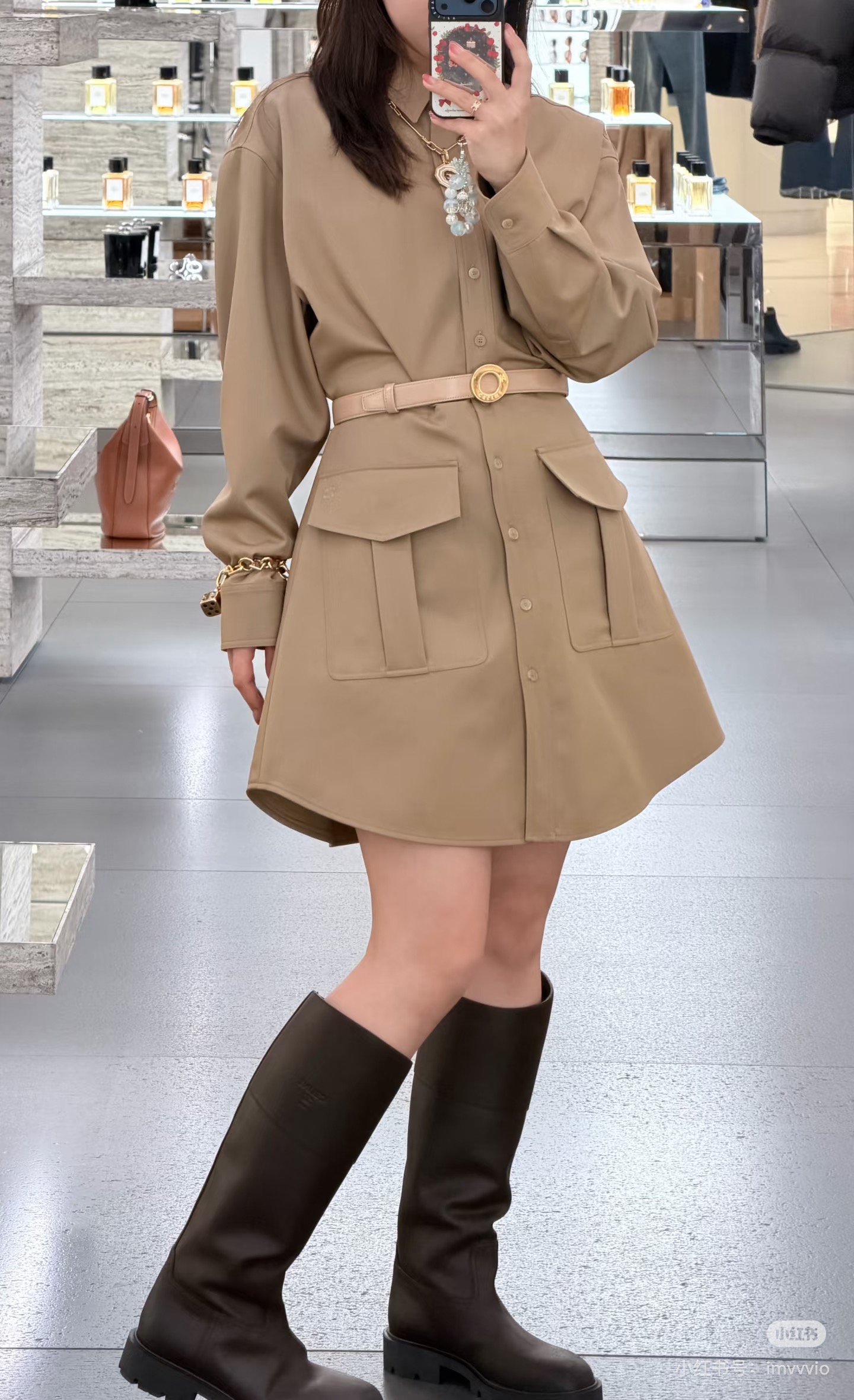 포인트: 허리 라인을 살린 커브드 수입 입체 재단으로 다리가 길어 보이는 비율 선사