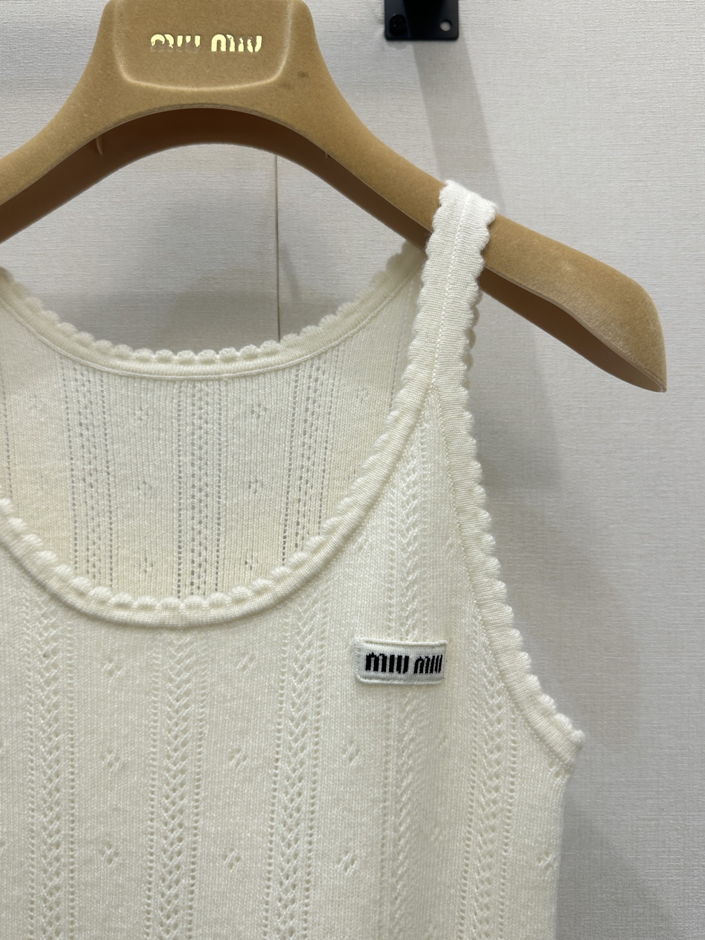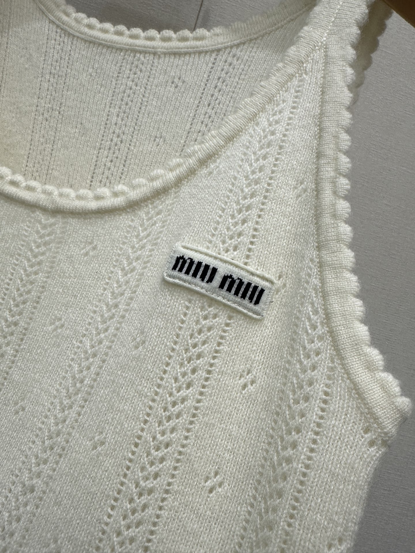 미우미우(miumiu) 프레피룩 엠블럼 캐시미어 니트 민소매 나시 의류SALE
