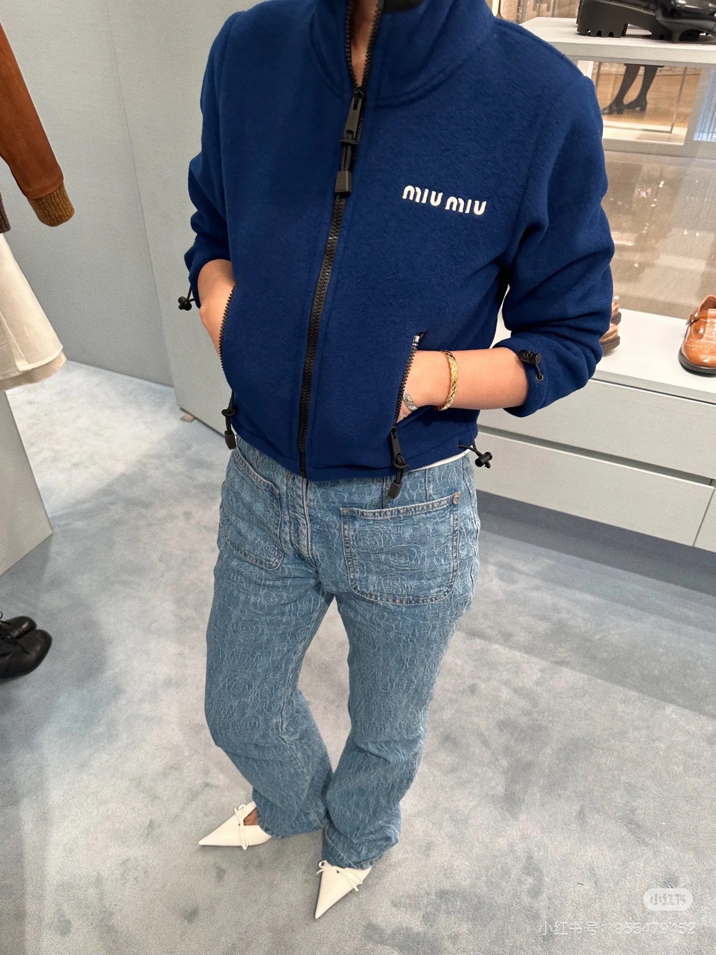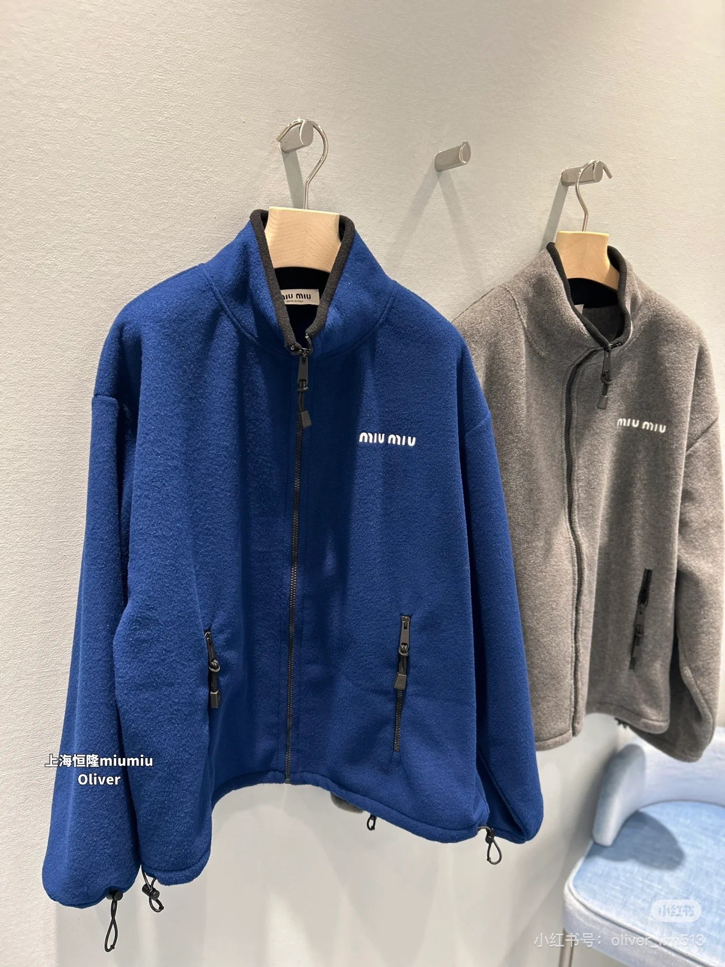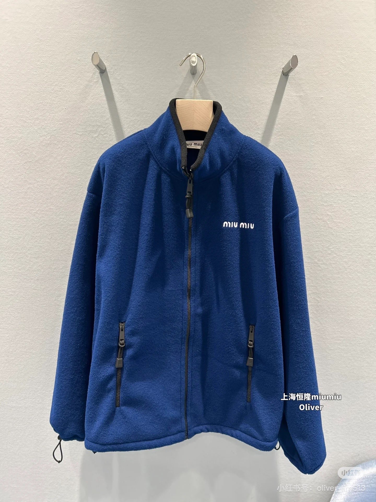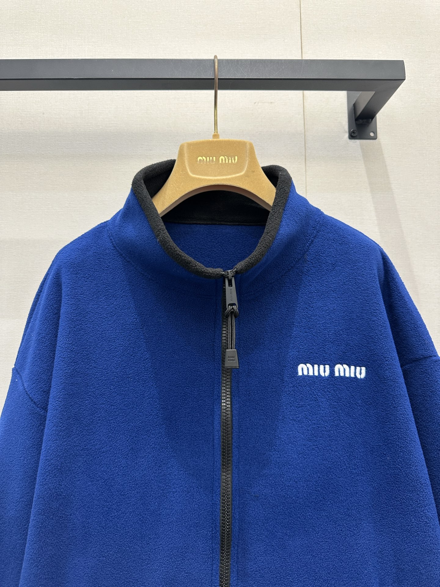 미우미우(miumiu) 로고 자수 쉐르파 플리스 후리스 후드 집업 자켓 재킷 의류SALE