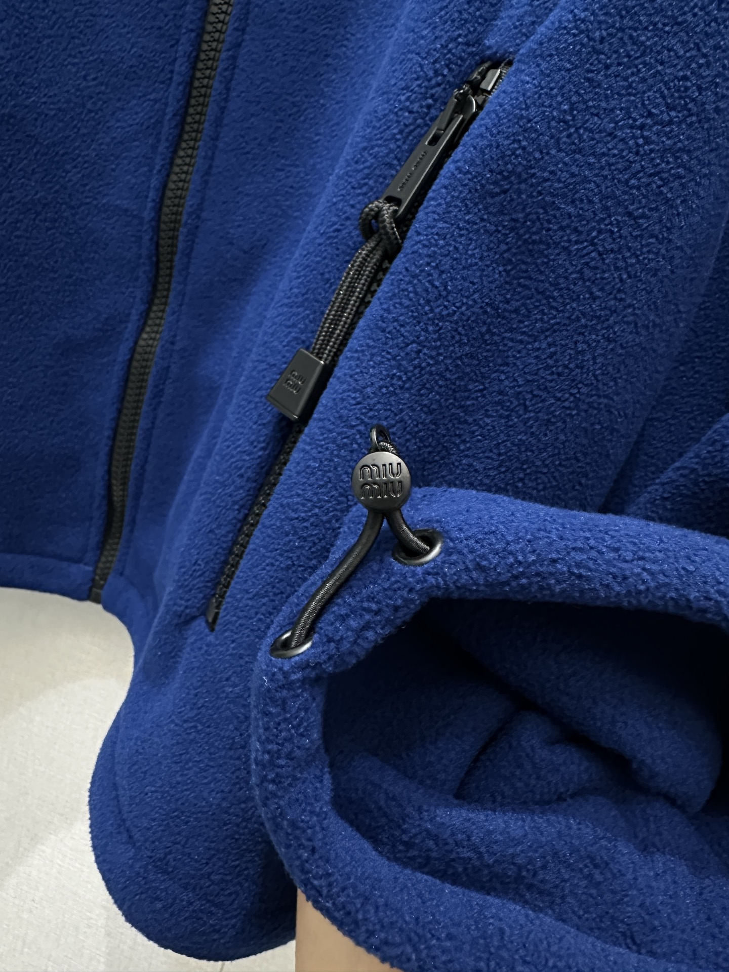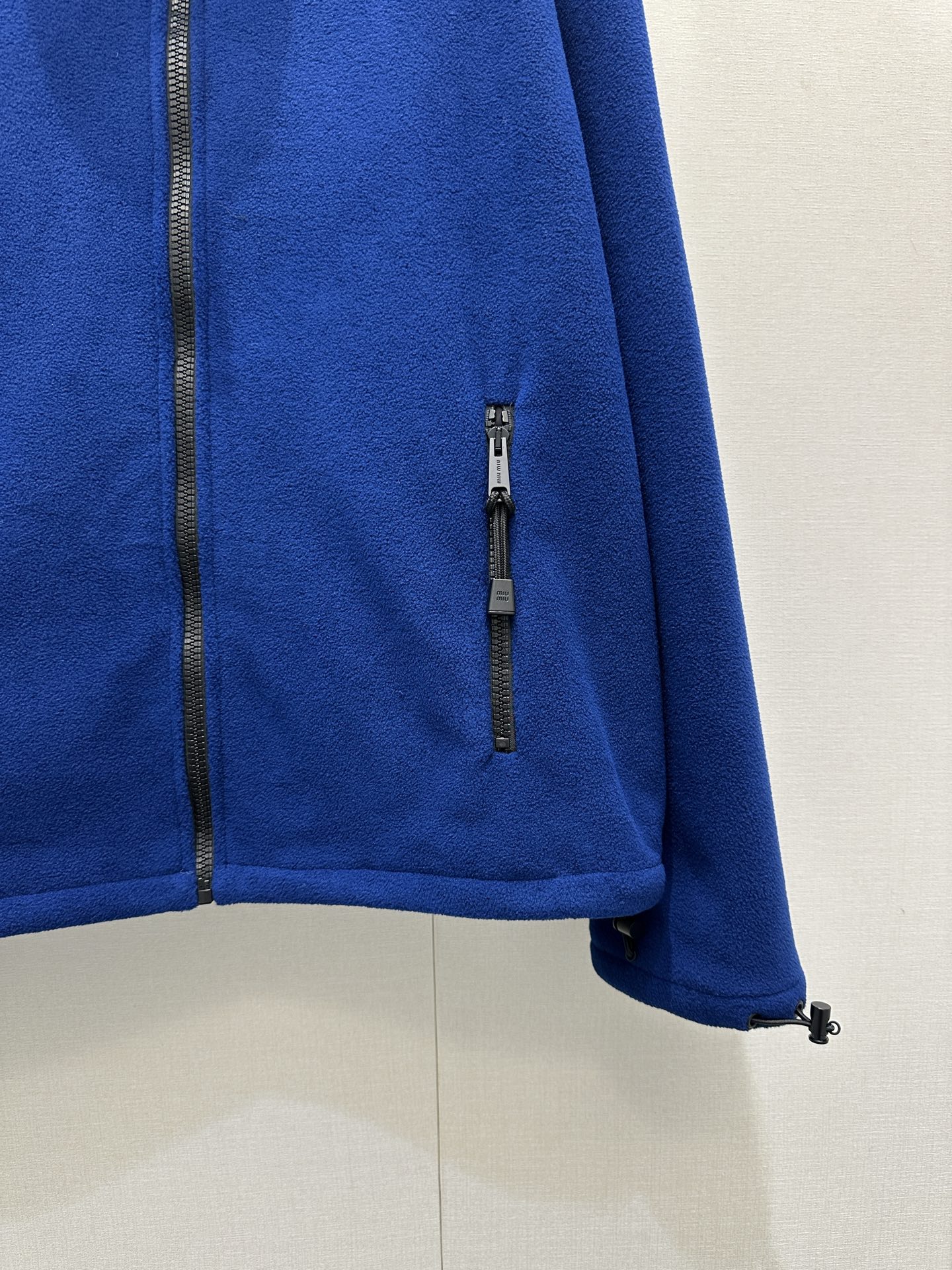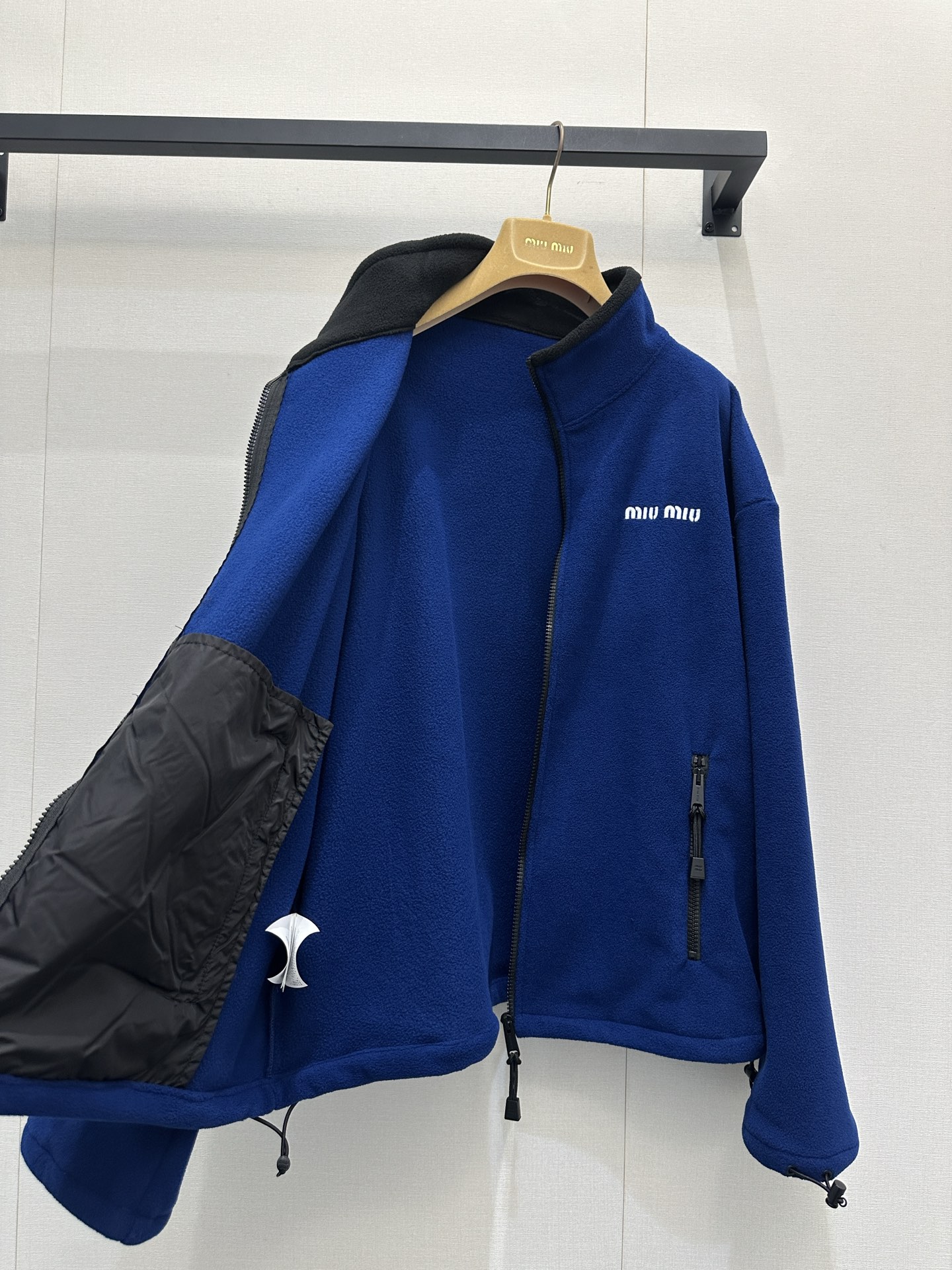 미우미우(miumiu) 로고 자수 쉐르파 플리스 후리스 후드 집업 자켓 재킷 의류