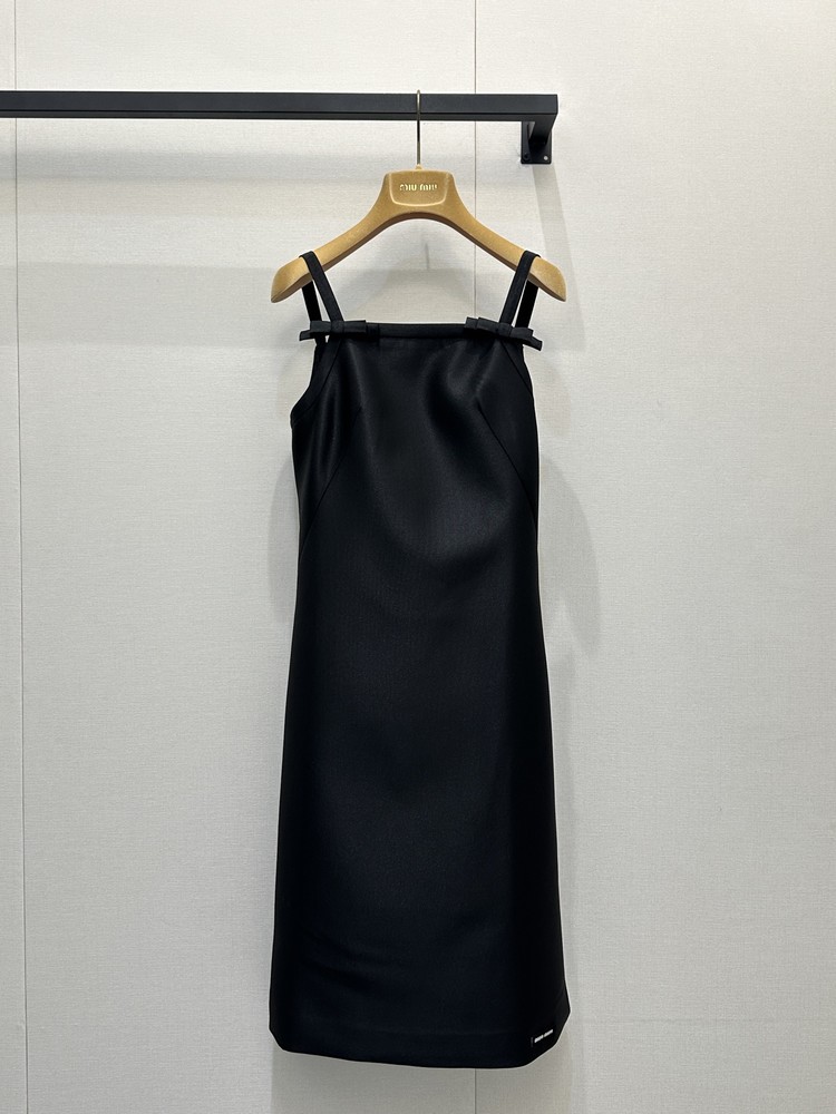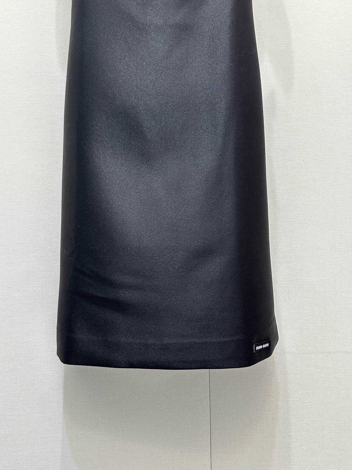 미우미우(miumiu) 로고 블랙 새틴 슬립 원피스 의류SALE