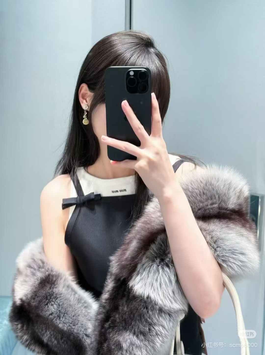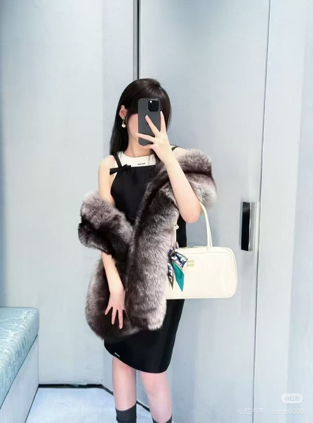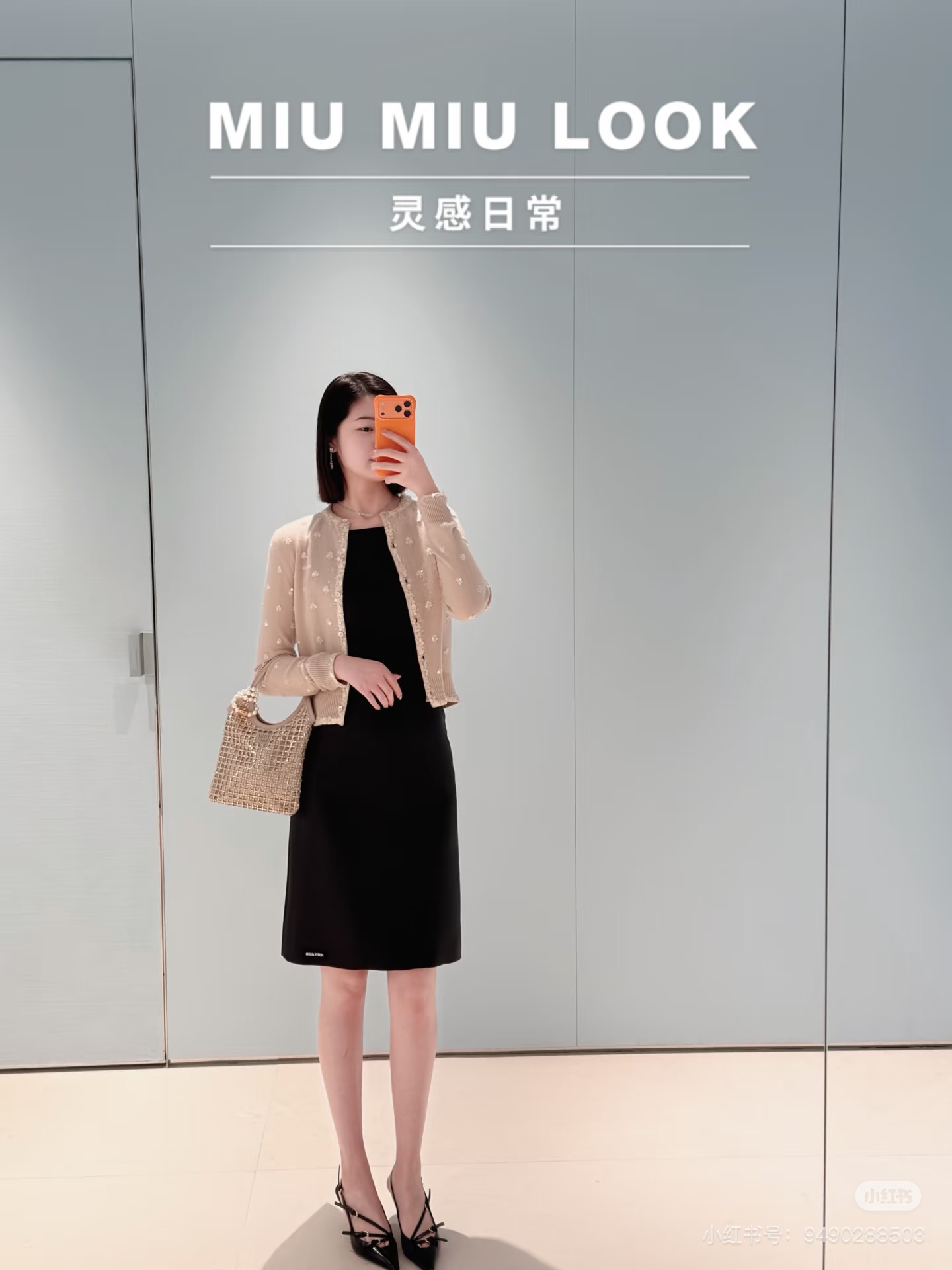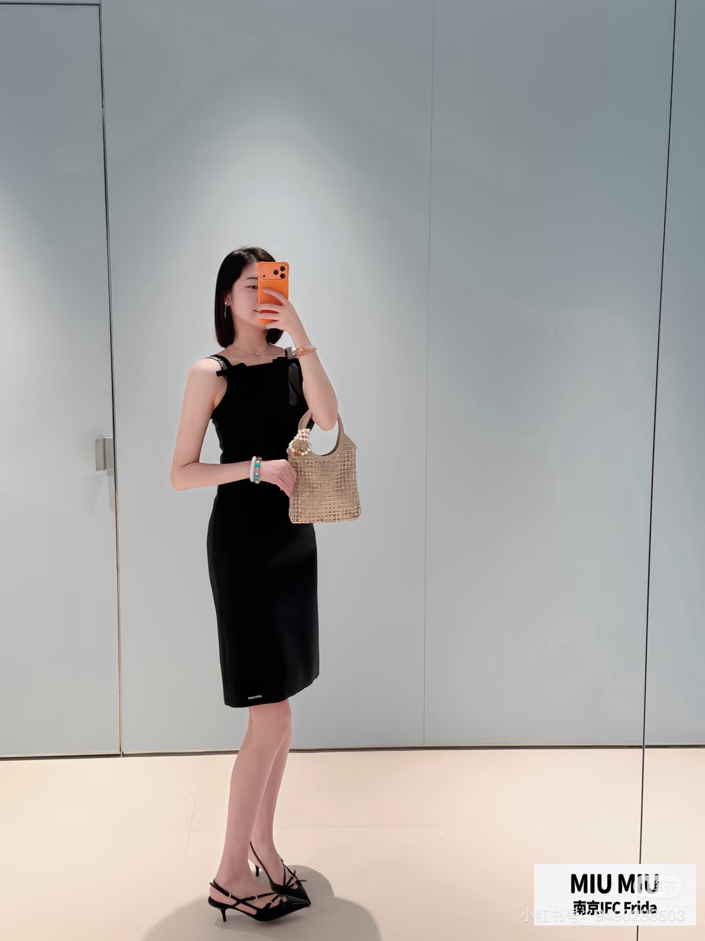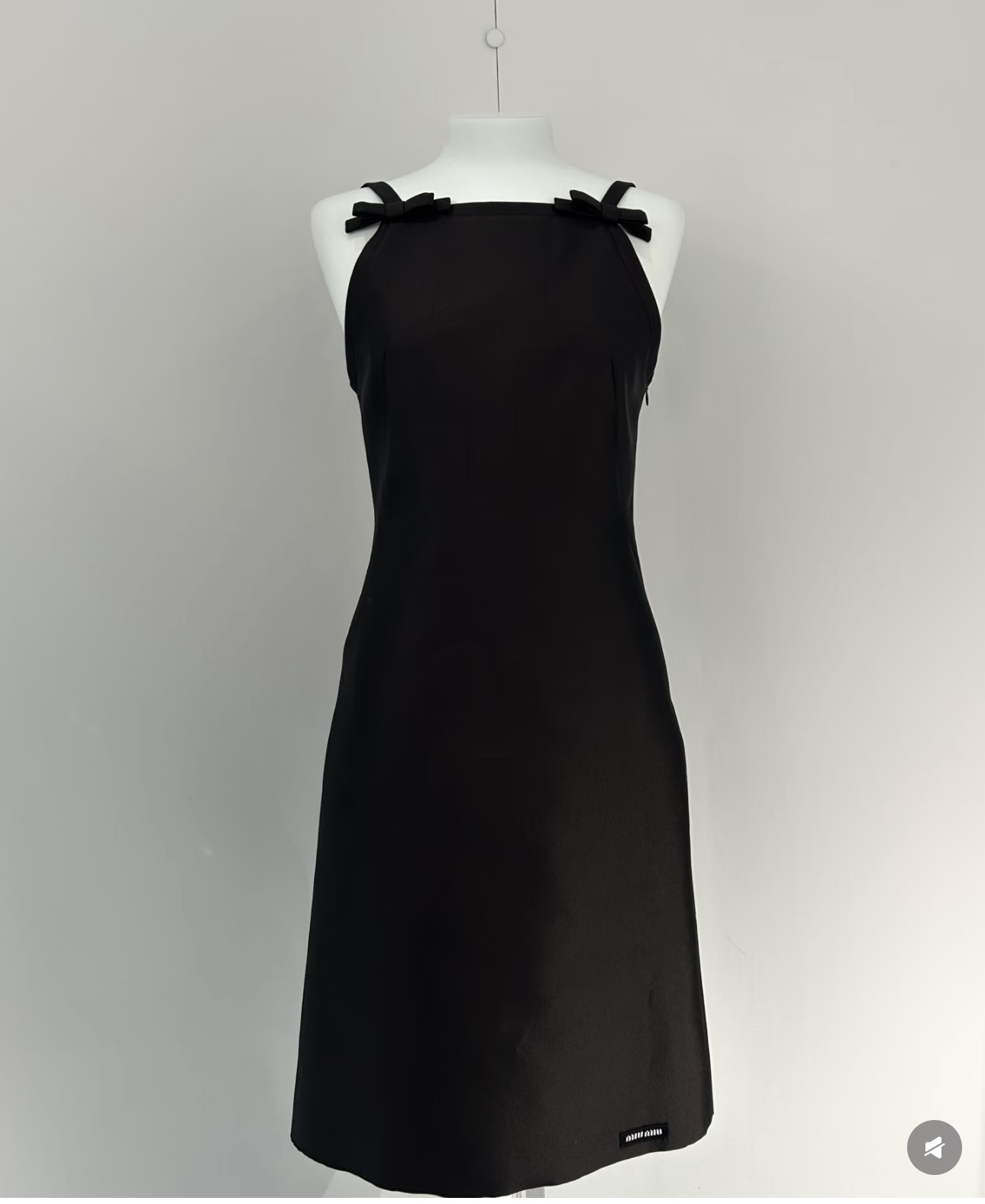 시크한 블랙과 사랑스러운 디테일이 만난 2026 리조트 시즌 신상 원피스입니다. '청순한 냉미녀' 무드를 자아내는 미우미우의 핵심 피스입니다.