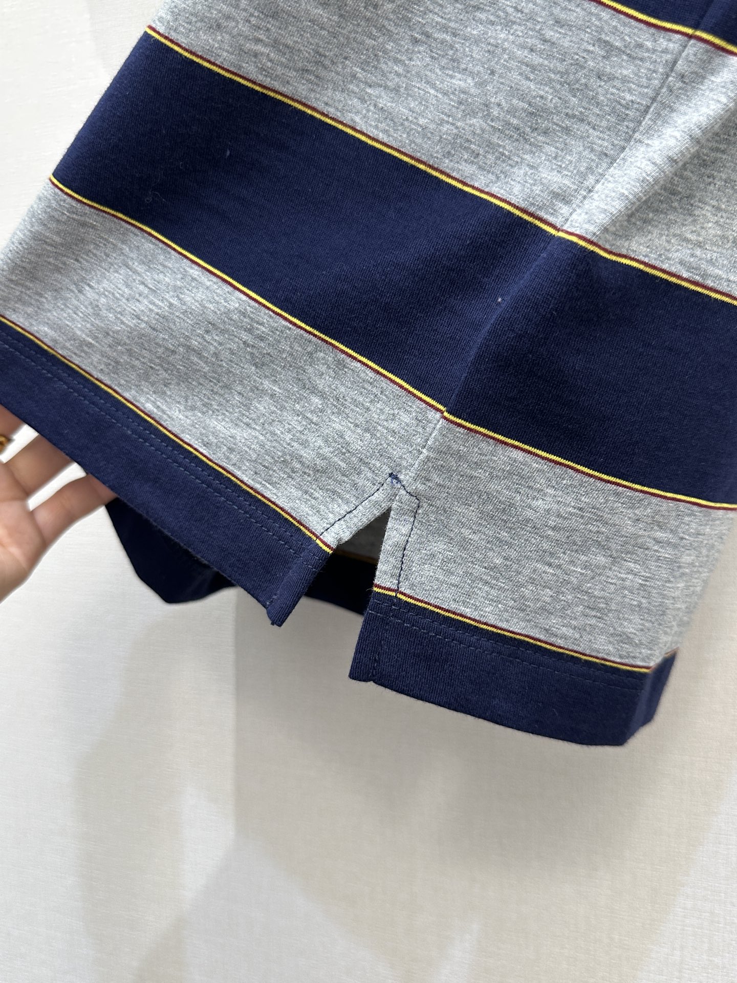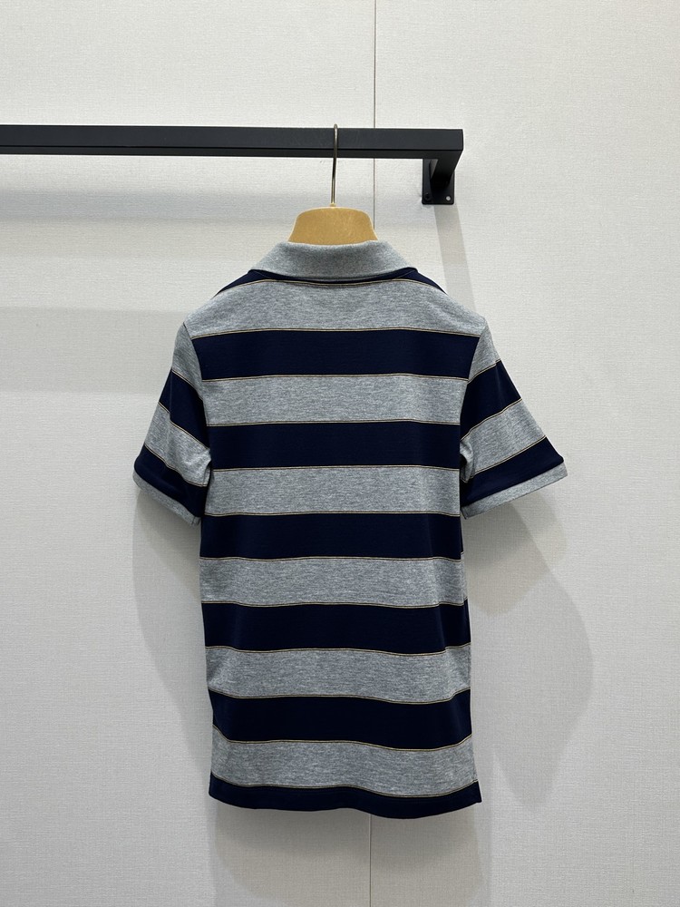 미우미우(MiuMiu) 네이비-그레이 스트라이프 폴로 카라 반팔 니트 티셔츠 의류