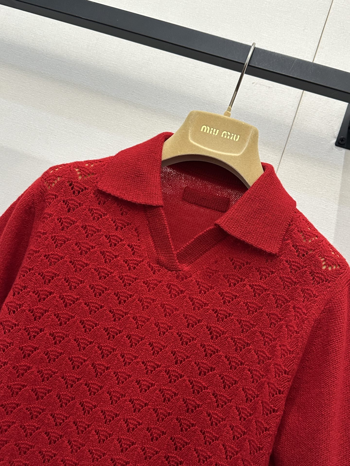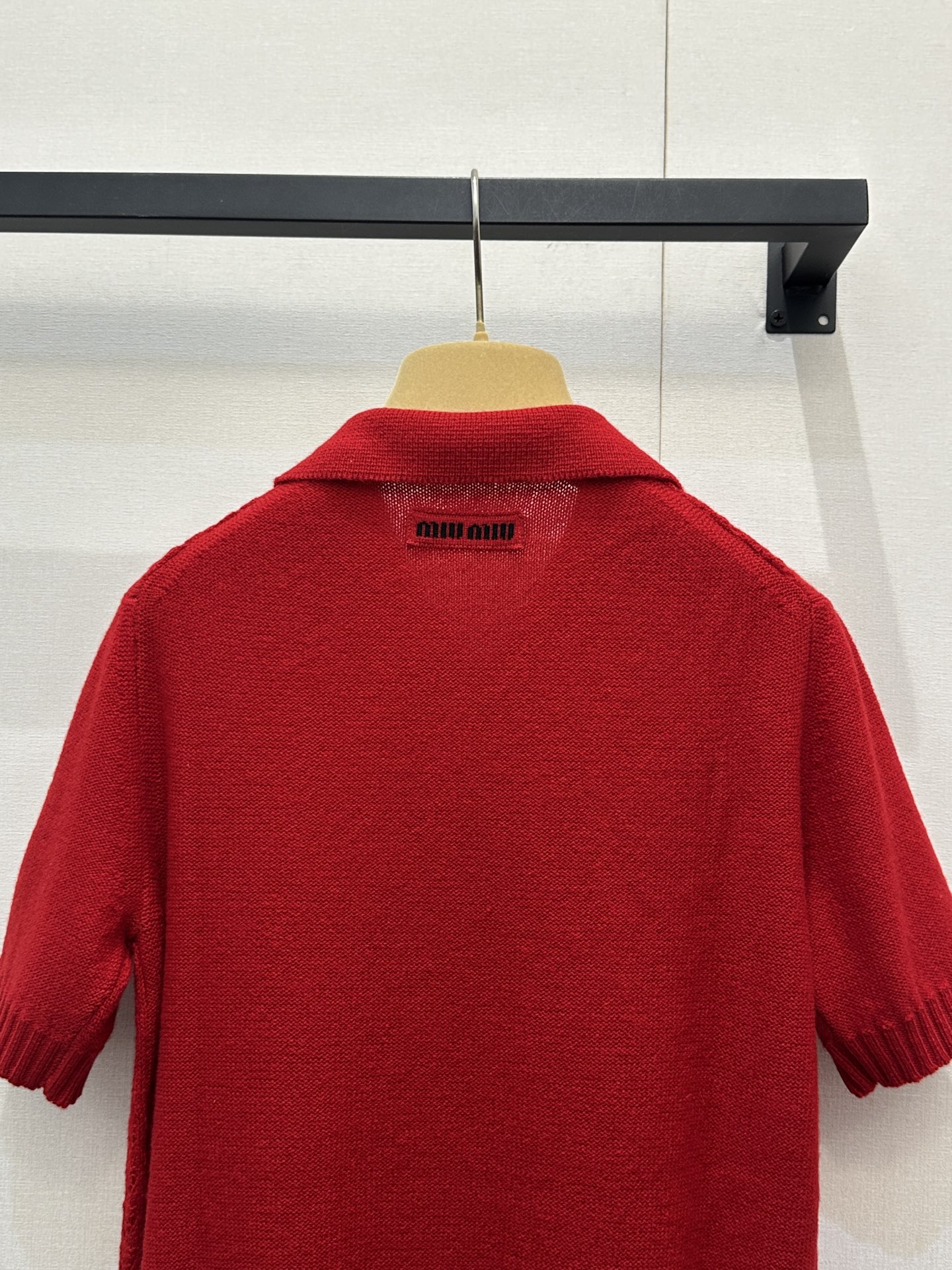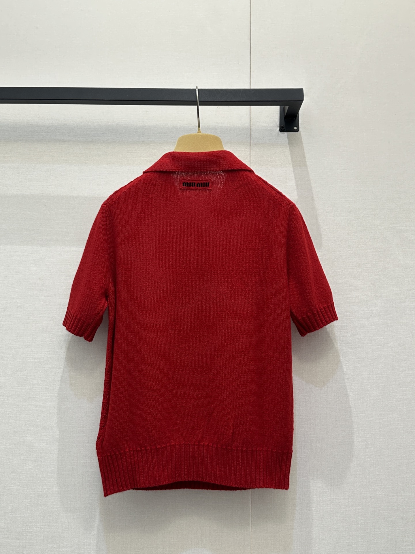 미우미우(miumiu) 레드 캐시미어 펀칭 폴로 카라 반팔 니트 의류SALE