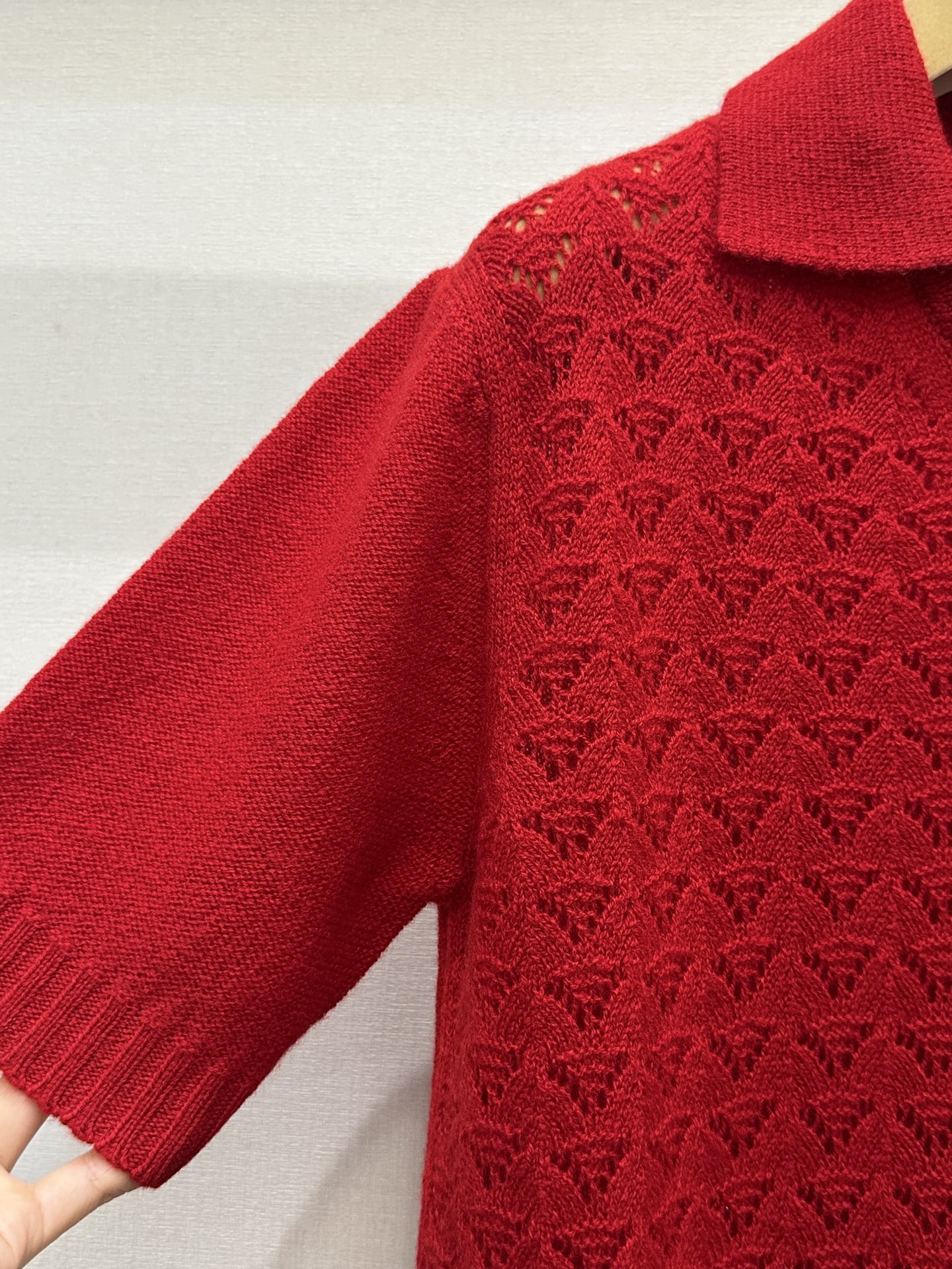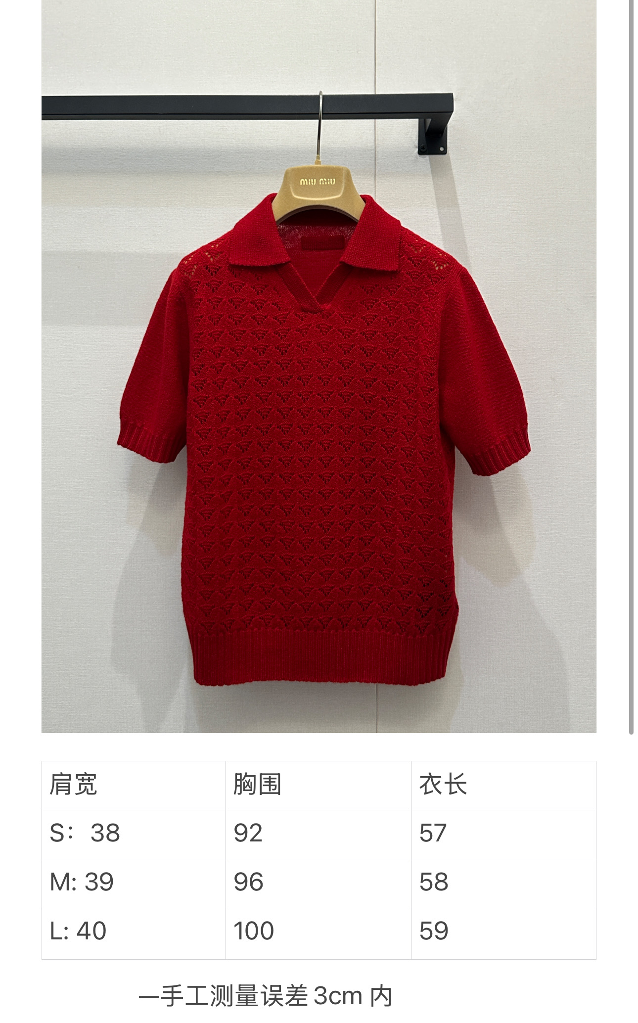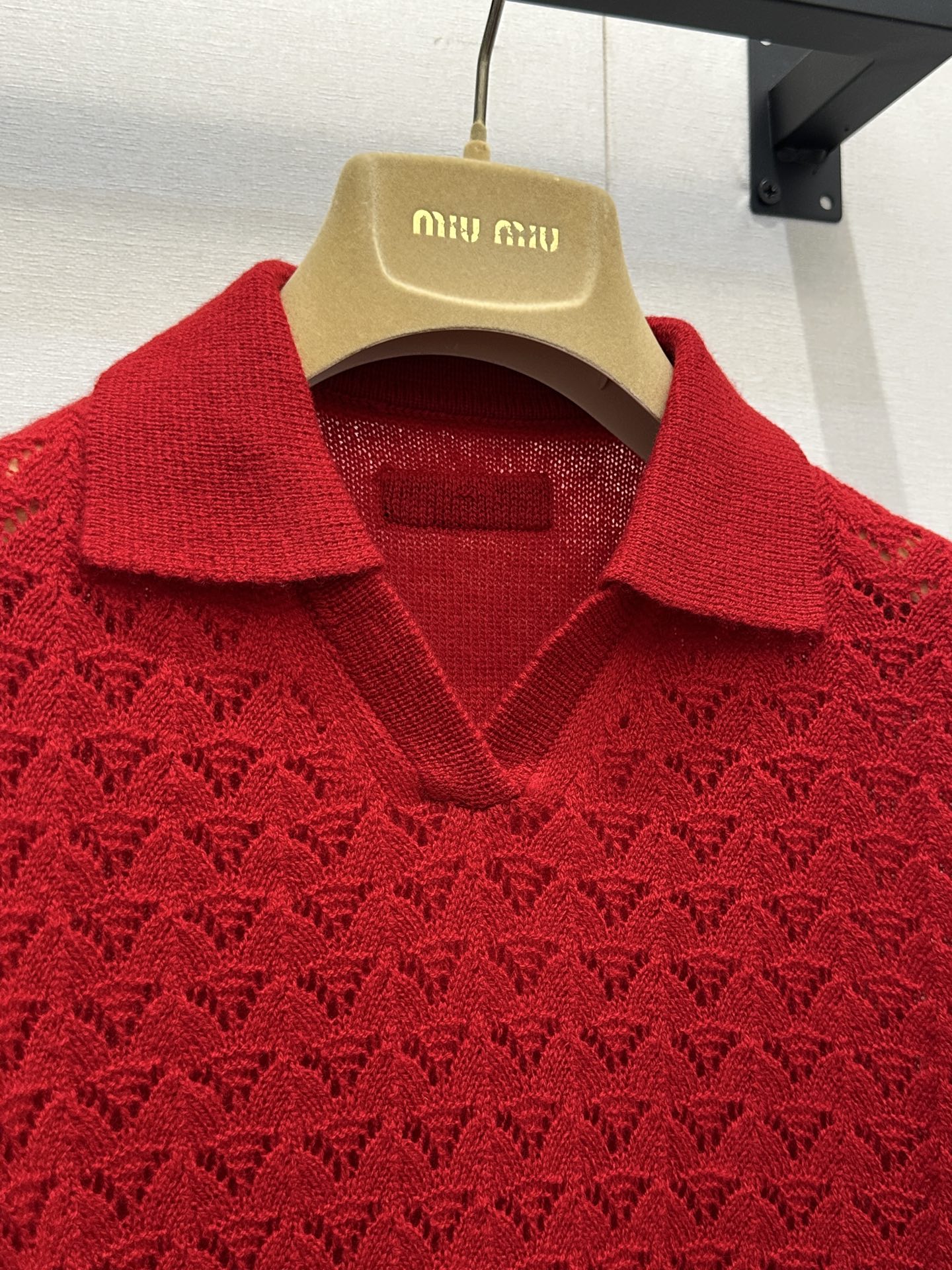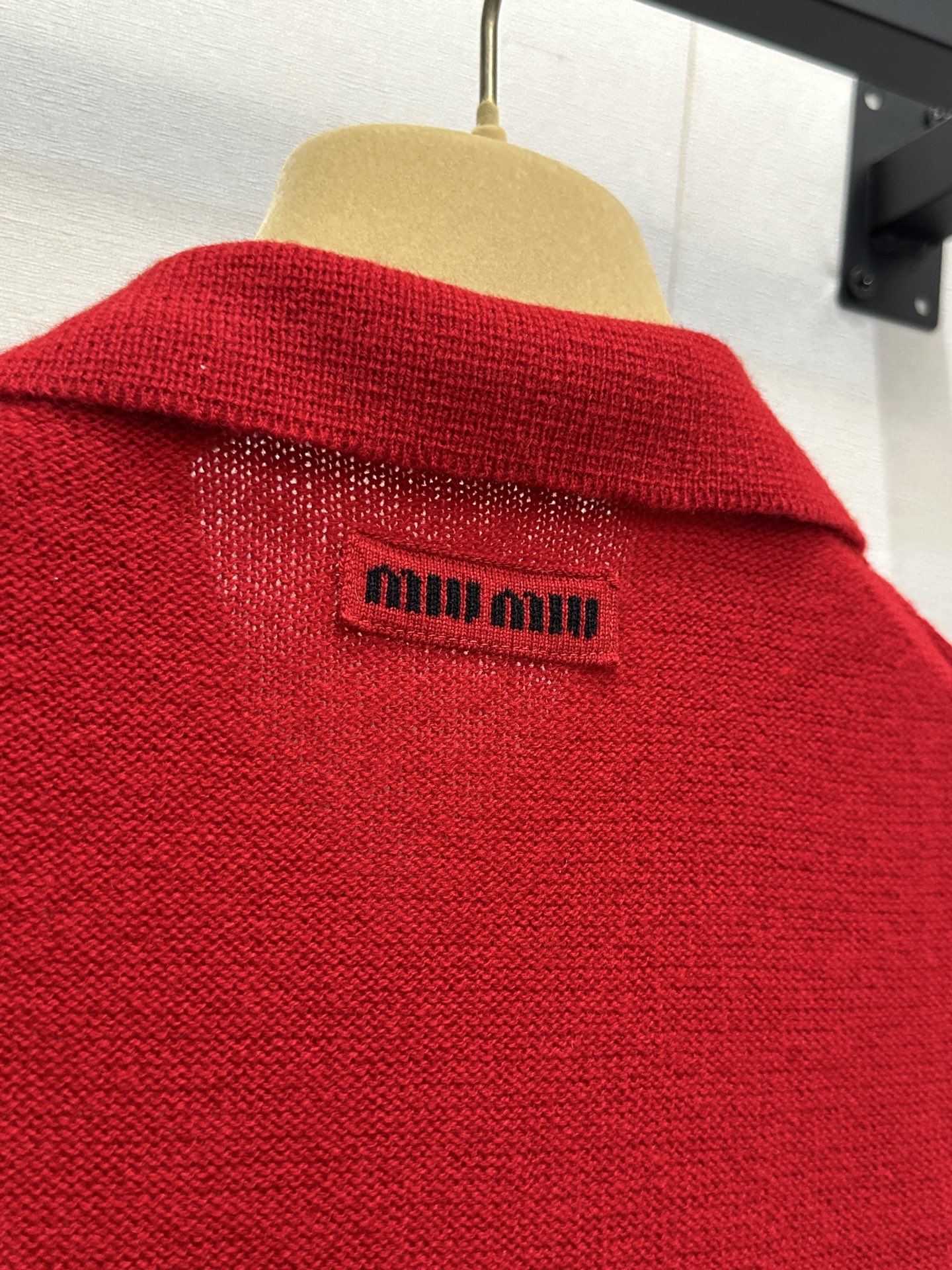 미우미우(miumiu) 레드 캐시미어 펀칭 폴로 카라 반팔 니트 의류SALE