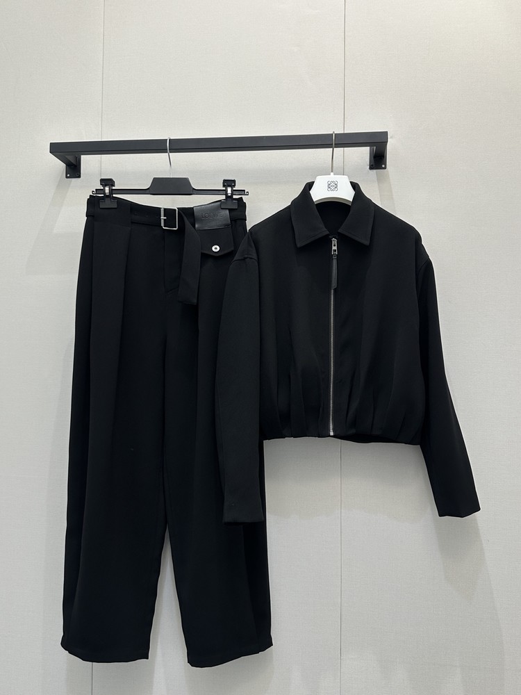 로에베(LOEWE) 양모 셔링 집업 자켓 재킷 + 와이드 팬츠 바지 셋업 세트 의류SALE