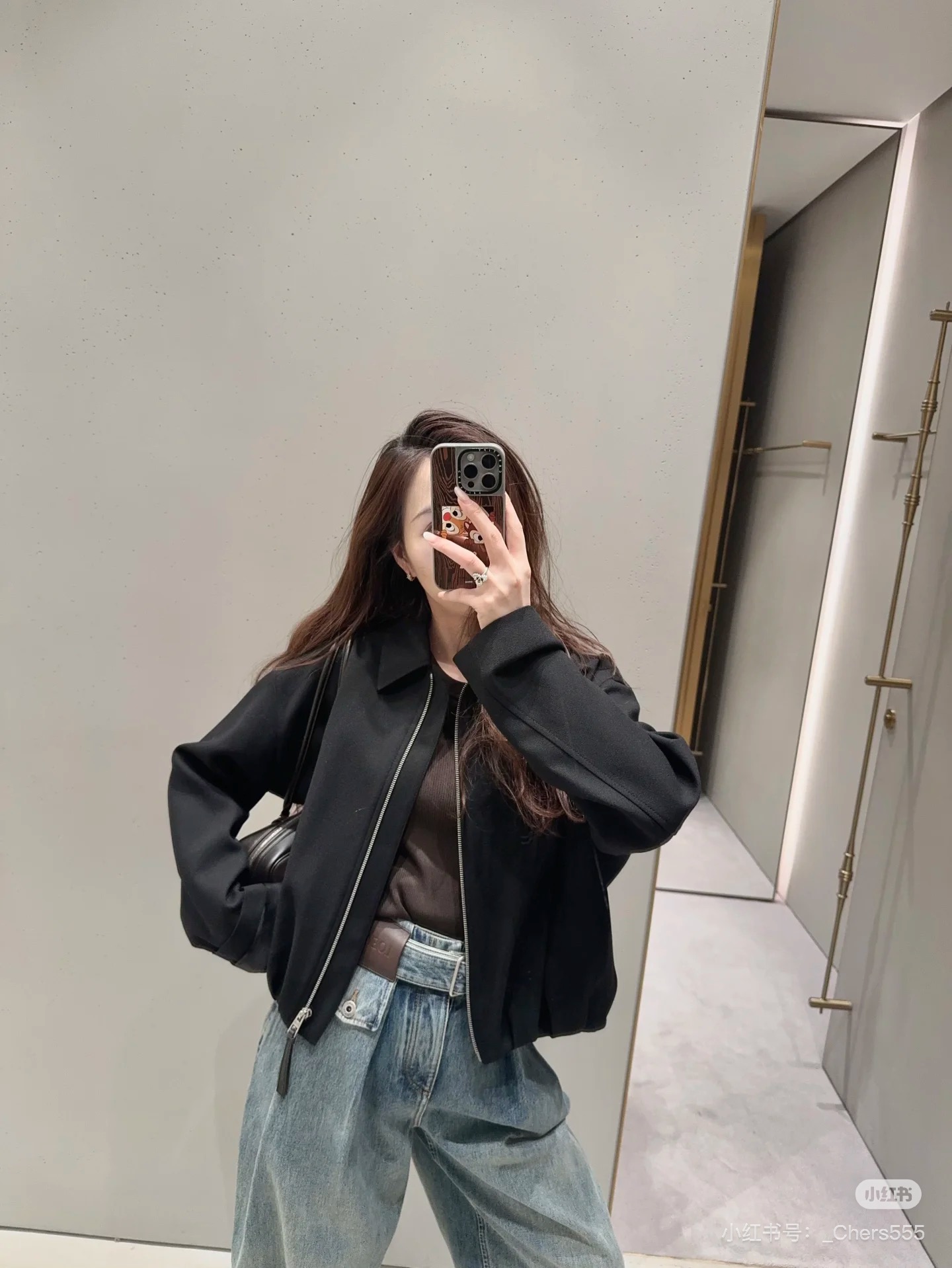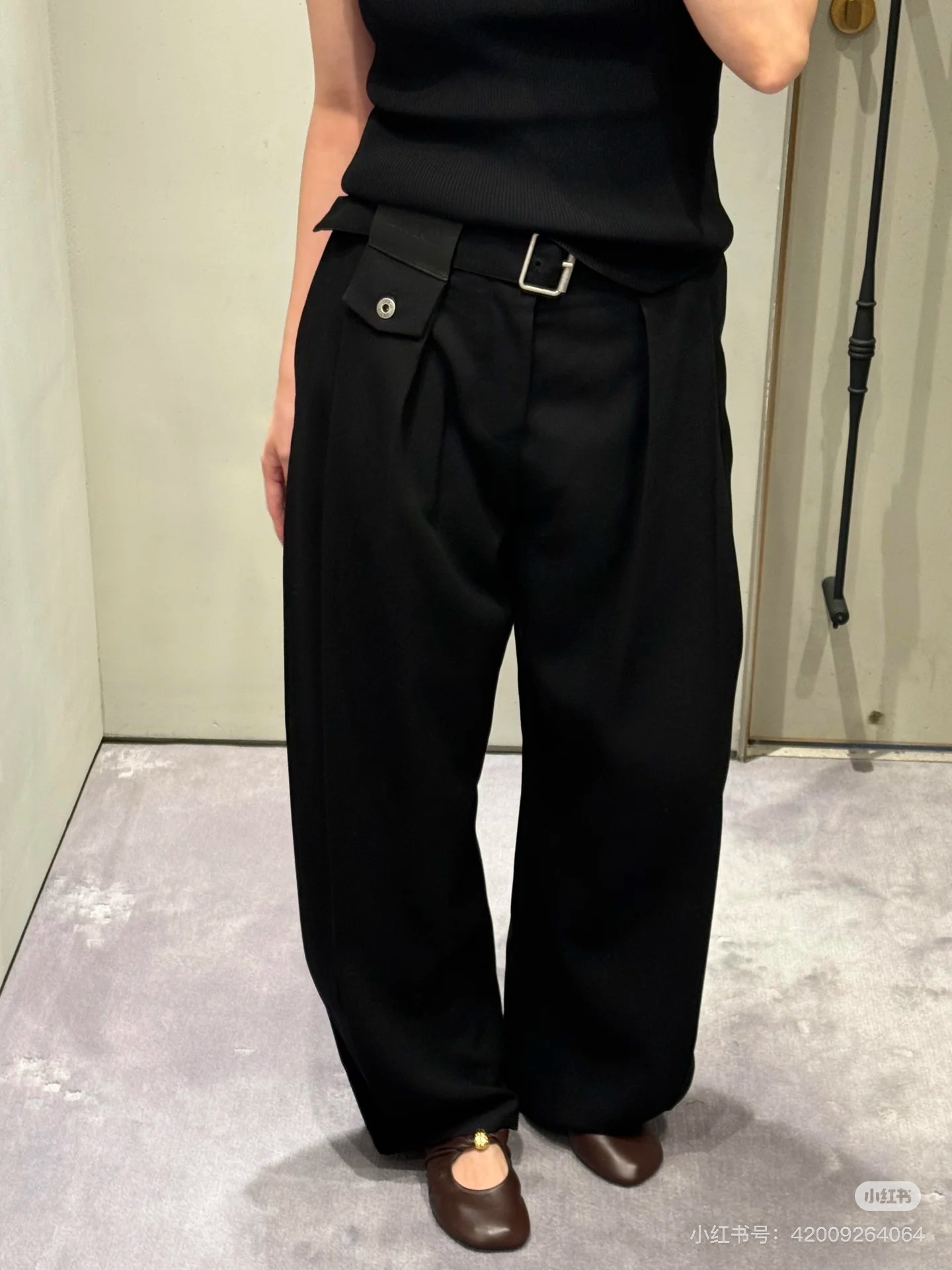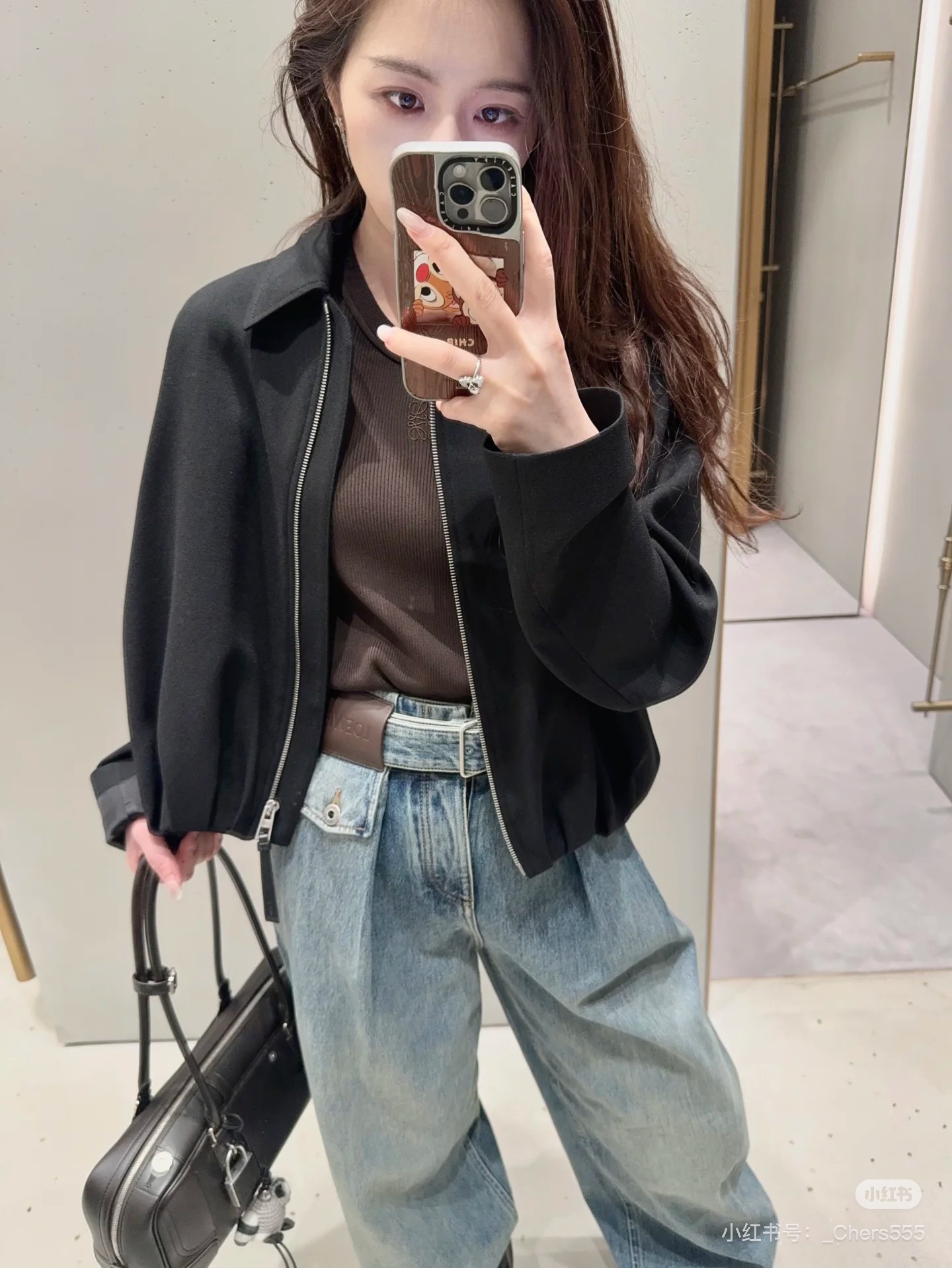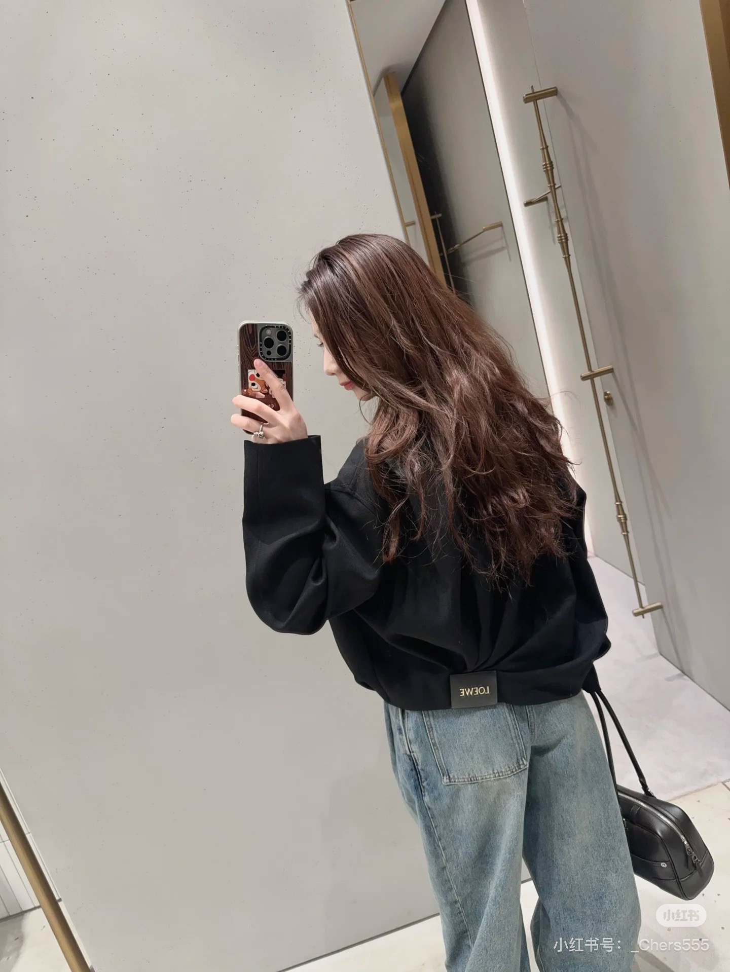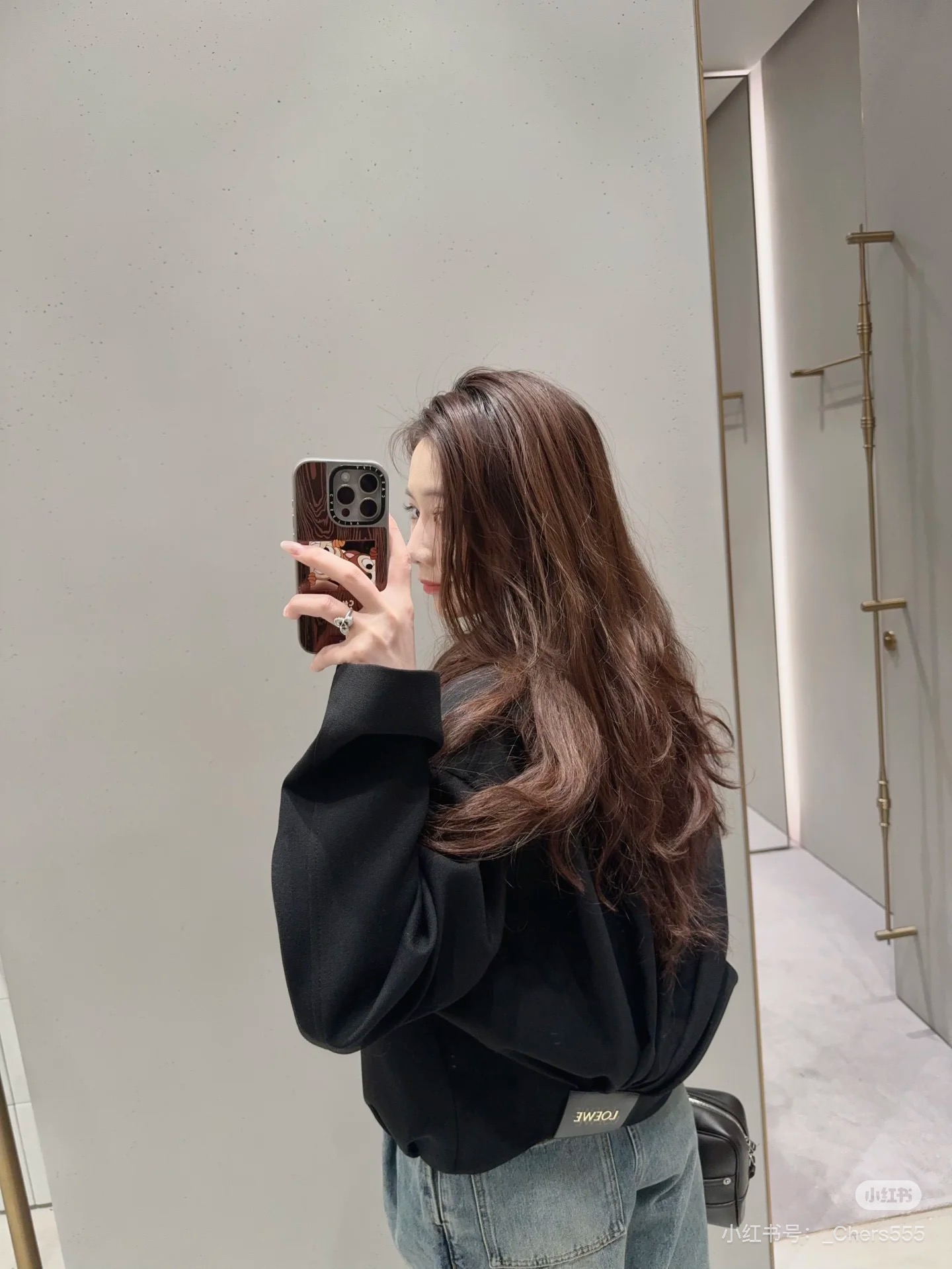 포인트: 동일 소재의 데님 벨트와 로에베 가죽 로고 패치 구성 (고급스러운 오리지널리티)
