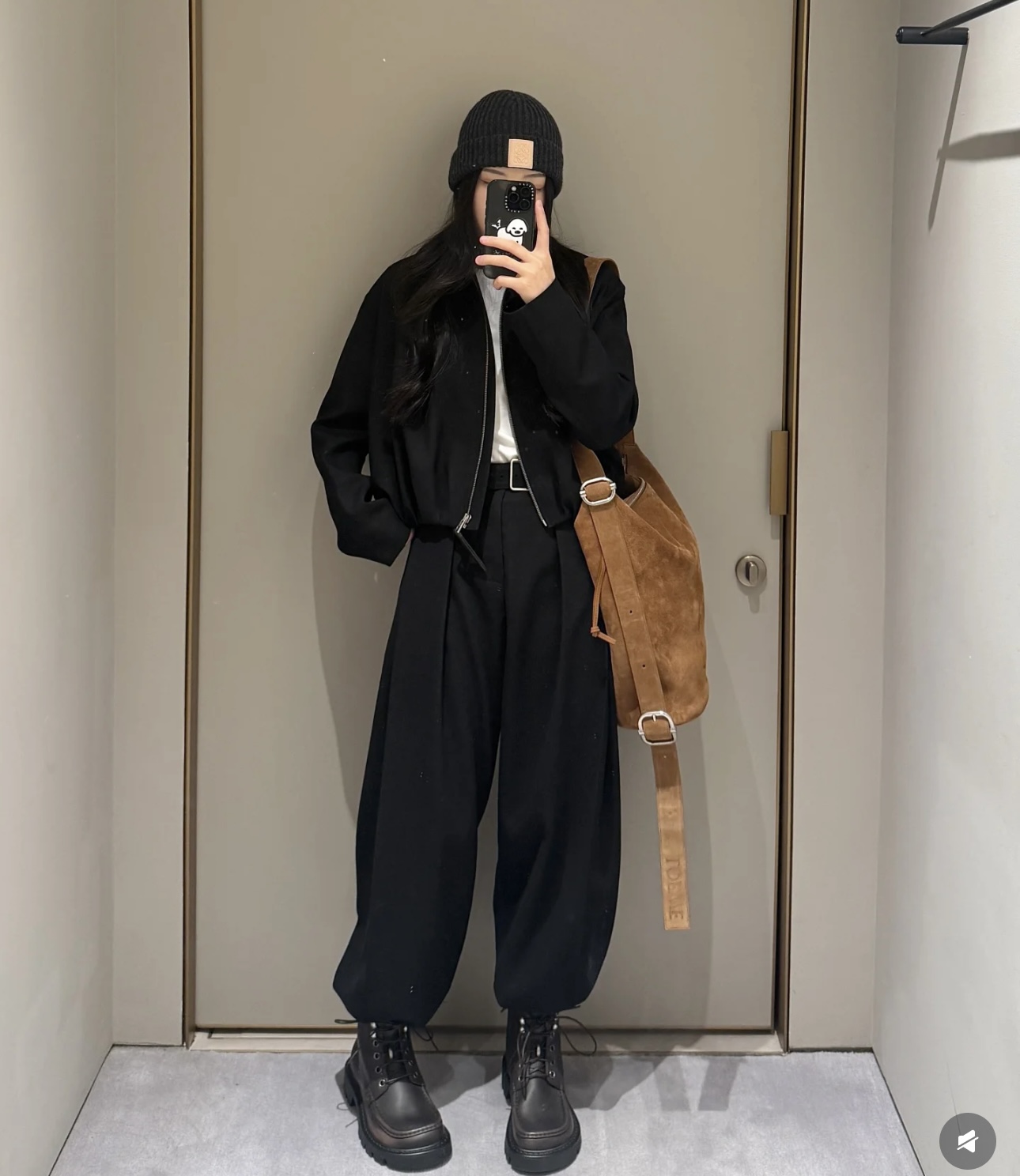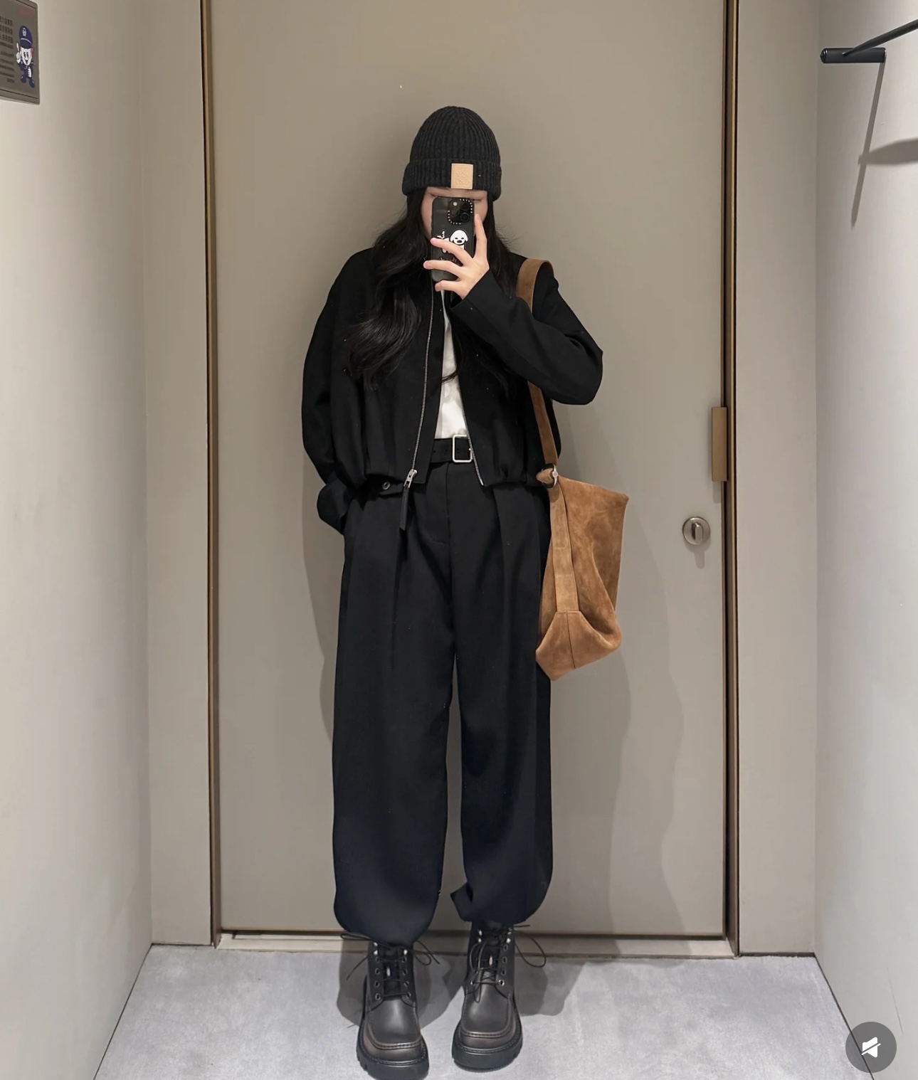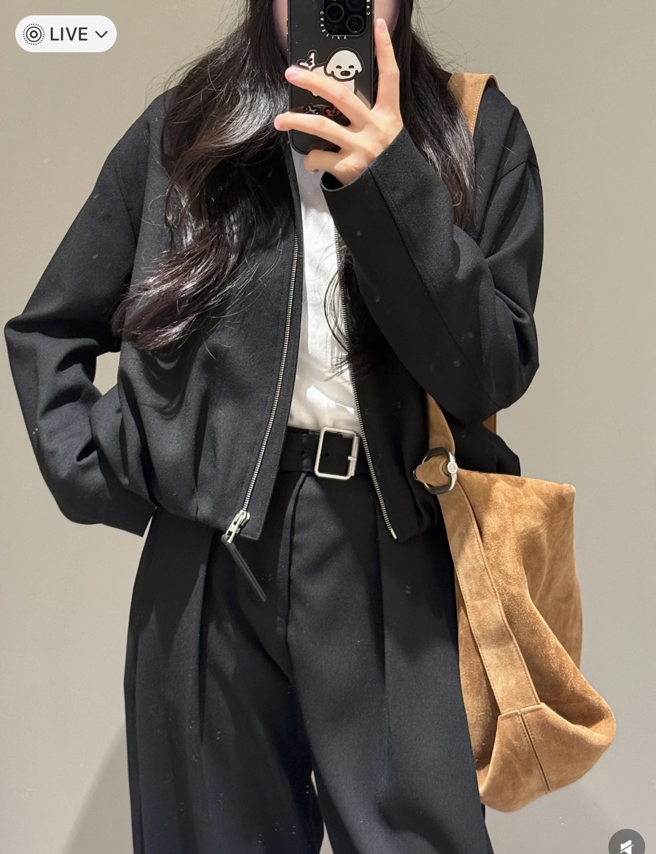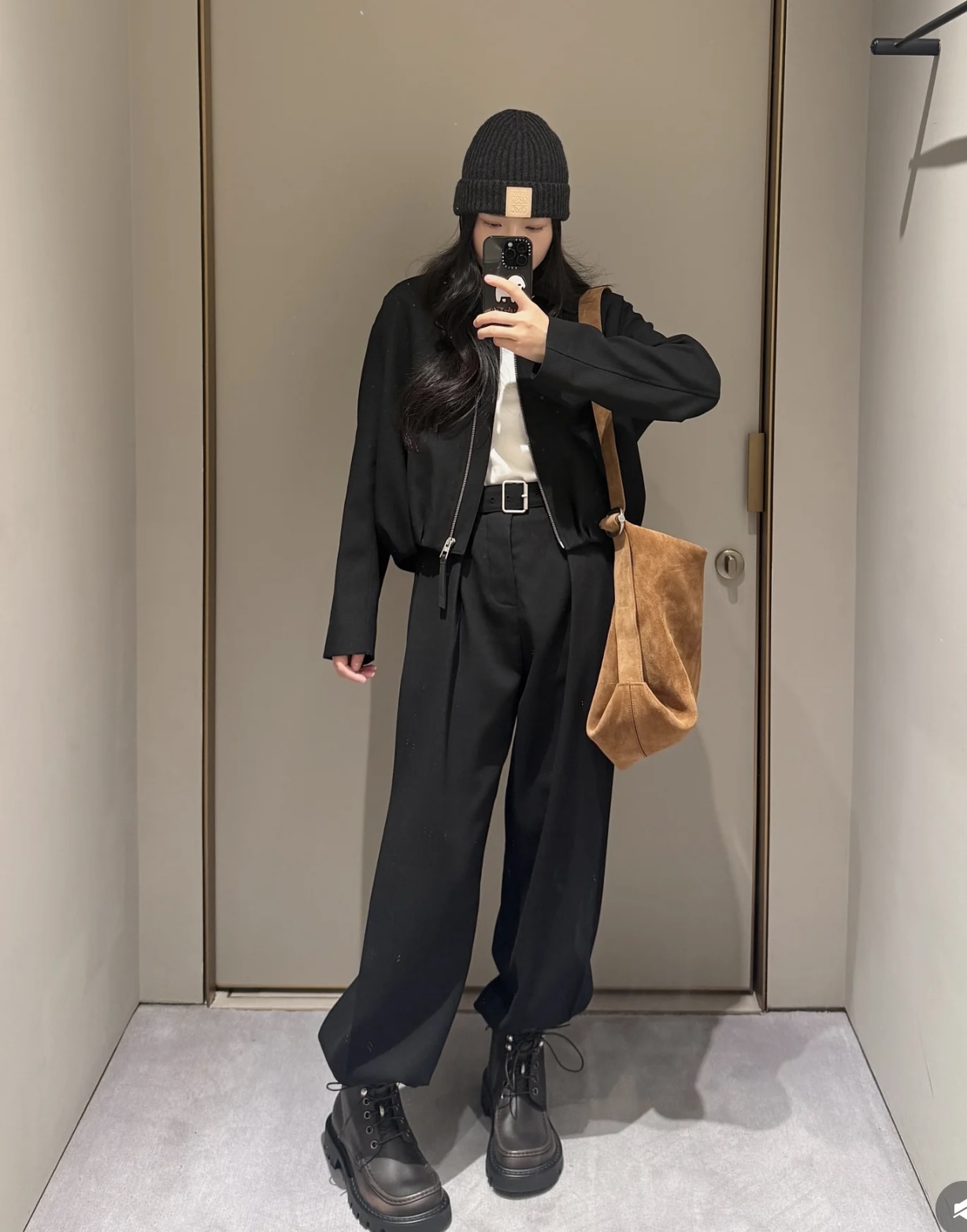 핏: 세련된 와이드 롱 실루엣 (여유로운 '송치감'과 힙한 분위기 동시 연출)